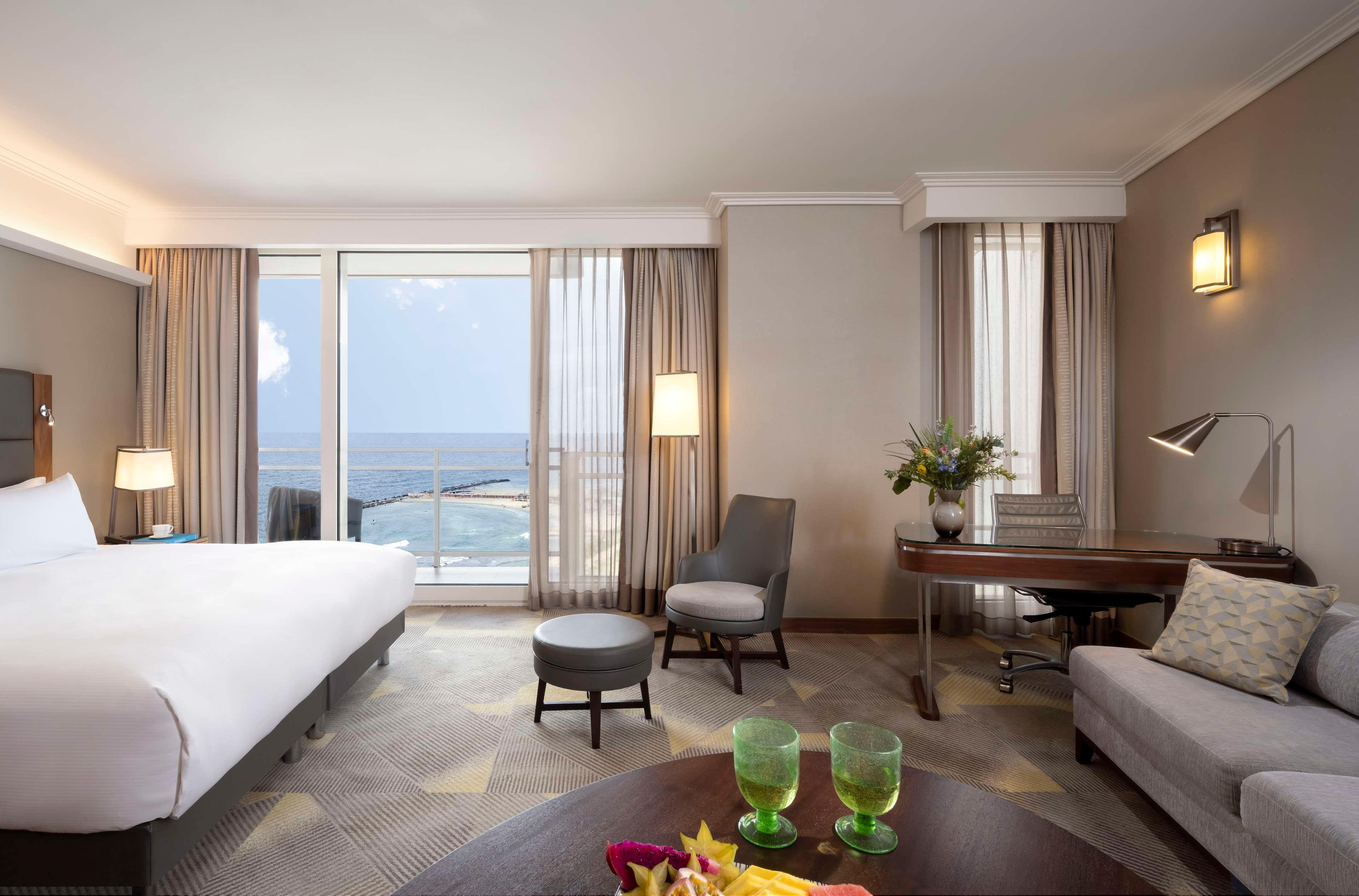 Relax at the full-service spa, where you can enjoy massages, body treatments, and facials. You're sure to appreciate the recreational amenities, including a health club, an outdoor pool, and a sauna. Additional amenities at this hotel include complimentary wireless internet access, concierge services, and babysitting (surcharge). Grab a bite at Cafe Med, one of the hotel's 5 restaurants, or stay in and take advantage of the 24-hour room service. Snacks are also available at the coffee shop/cafe. Unwind at the end of the day with a drink at the bar/lounge or the poolside bar. A complimentary buffet breakfast is served daily from 7:00 AM to 10:00 AM. Featured amenities include a business center, express check-out, and complimentary newspapers in the lobby. Event facilities at this hotel consist of a conference center and meeting rooms. Self parking (subject to charges) is available onsite. Make yourself at home in one of the 393 guestrooms featuring minibars and LCD televisions. Rooms have private balconies. Complimentary wireless internet access keeps you connected, and satellite programming is available for your entertainment. Private bathrooms with separate bathtubs and showers feature deep soaking bathtubs and designer toiletries. Distances are displayed to the nearest 0. 1 mile and kilometer. Independence Park - 0. 3 km / 0. 2 mi- Ben Yehuda Street - 0. 3 km / 0. 2 mi- Hilton Beach - 0. 4 km / 0. 2 mi- Gordon Swimming Pool - 0. 4 km / 0. 2 mi- Tel Aviv Marina - 0. 4 km / 0. 3 mi- Gordon Beach - 0. 5 km / 0. 3 mi- Banana Beach - 0. 5 km / 0. 3 mi- Nordau Beach - 0. 5 km / 0. 3 mi- Ben Gurion House - 0. 6 km / 0. 4 mi- Metzitzim Beach - 0. 8 km / 0. 5 mi- Gordon Gallery - 0. 8 km / 0. 5 mi- Frishman Beach - 0. 8 km / 0. 5 mi- Old Tel Aviv Port - 1. 2 km / 0. 7 mi- Bograshov Beach - 1. 2 km / 0. 7 mi- Tel Aviv City Hall - 1. 5 km / 0. 9 mi. The nearest major airport is Ben Gurion Airport (TLV) - 27. 7 km / 17.