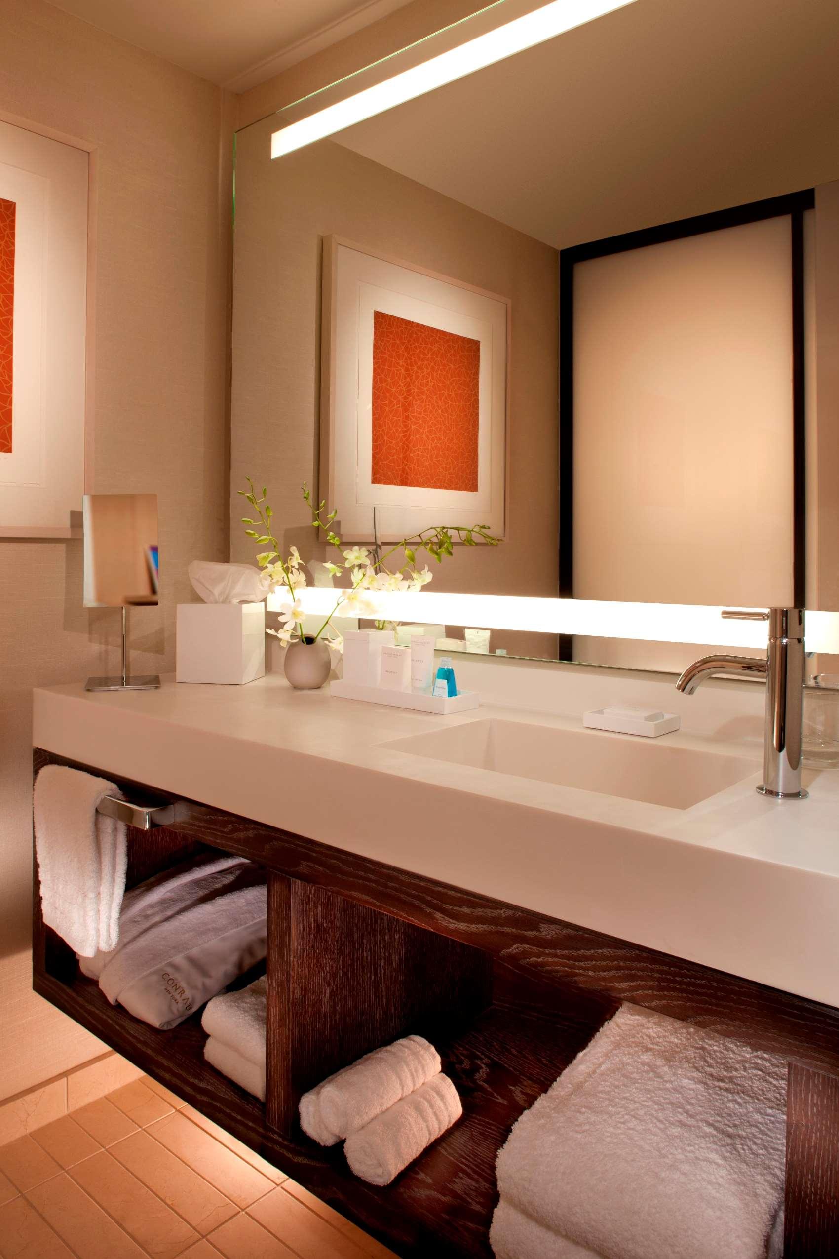 The following services and amenities are available, but with reduced service: Fitness Center. The following services and amenities are currently not available: Business Center, Breakfast, On-site Restaurant(s), Room Service, Valet Parking. Located in Downtown Manhattan – a true urban oasis – Conrad New York Downtown is just minutes from the city's most historic neighborhoods, including Tribeca, Greenwich Village, SoHo and Wall Street. The property is also walking distance to a list of acclaimed attractions such as the World Trade Center and Oculus, Statue of Liberty, Staten Island Ferry, Brookfield Place and more. Conrad New York Downtown is a 463 all-suite luxury hotel alongside the Hudson River. An urban escape for leisure and business guests alike, the hotel features ATRIO Wine Bar & Restaurant and the renowned Loopy Doopy Rooftop Bar (open spring and summer), as well as the largest hotel event space in Downtown Manhattan. The hotel is a bold leader in sustainable luxury offering an impressive series of green initiatives (a selection listed below).