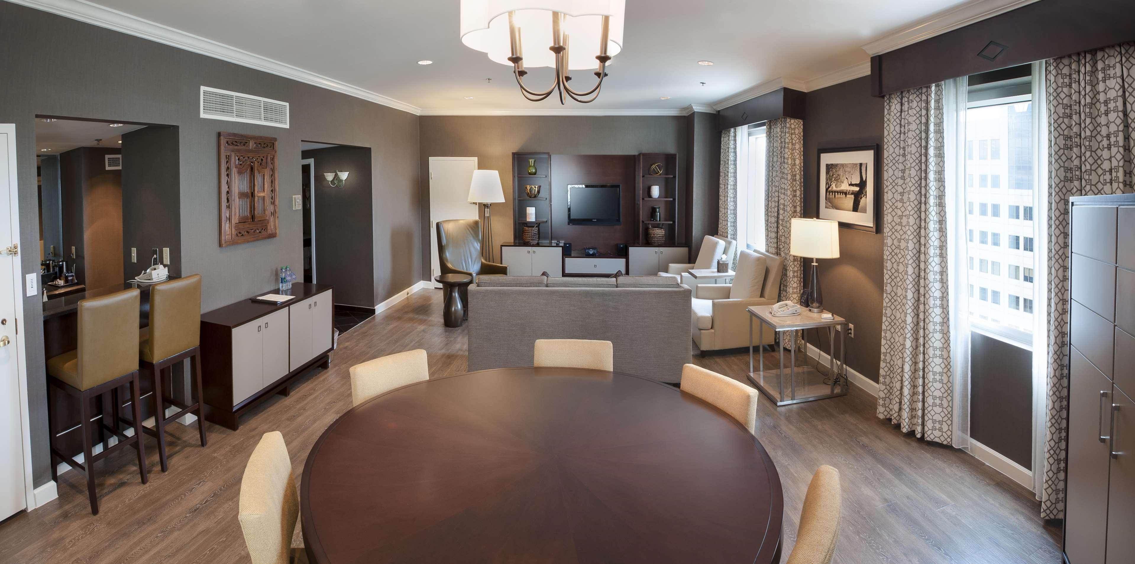 The following services and amenities are available, but with **reduced service**: Executive Lounge, Fitness Center, Breakfast, On-site Restaurant(s), Pool, Room Service. The following services and amenities are currently **not available**: Valet Parking. The Hilton Harrisburg hotel is in the thriving heart of historic downtown Harrisburg, Pennsylvania just three blocks from the State Capitol Complex and many other wonderful Hershey Attractions. Connected via an enclosed walkway to Whitaker Center for Science and the Arts and Strawberry Square retail and office complex, the hotel offers the area's best accommodations, shopping and entertainment all under one roof. Our hotel is the most convenient yet elegant places to stay while visiting the capital region and is just a short drive from Historic Gettysburg, the Pennsylvania Dutch Region and famed outlet shopping in Lancaster County. The hotel offers exquisite Hotel Dining, elegant Wedding Receptions, and professional Meeting & Convention Facilities. Each of our hotel guests is invited to enjoy a range of in-room amenities and services, appointed for your utmost comfort. Each of our 326 guest rooms and 15 guest suites include: The Hilton Serenity Bed Collection, Refrigerator and Coffee Maker, CD clock radio with alarm, Spacious desk and work area, High Definition Flat-Panel TV with new release movie rental, cable and premium channels, Complimentary wireless high-speed Internet access, Phones with data ports and voicemail, Hairdryer, iron and ironing board, Hilton HHonors members earn both points and miles for every qualifying stay through the award-winning Hilton HHonors Program. For hotel guests desiring the utmost in comfort and convenience, we offer Executive Level Accommodations.