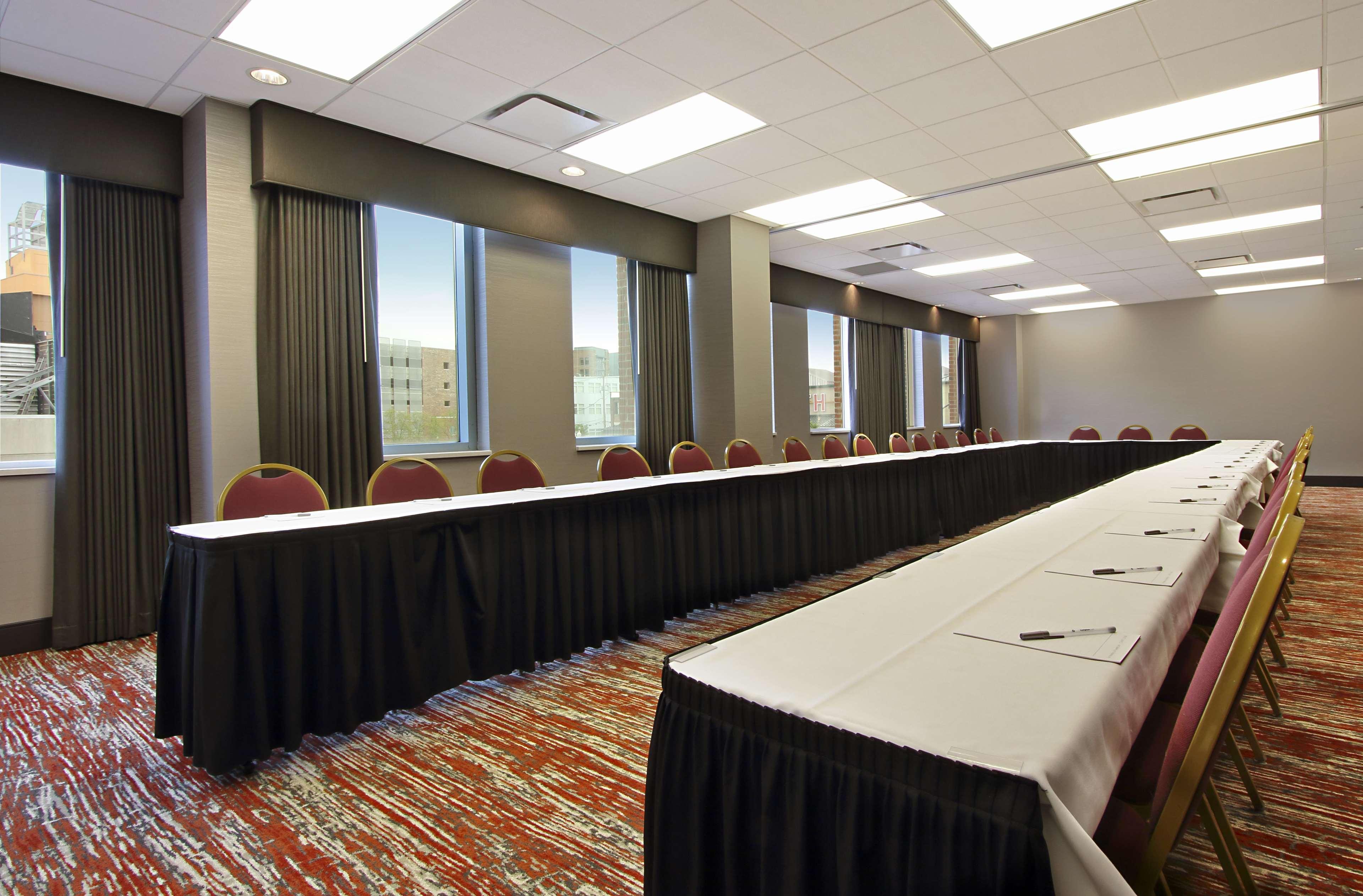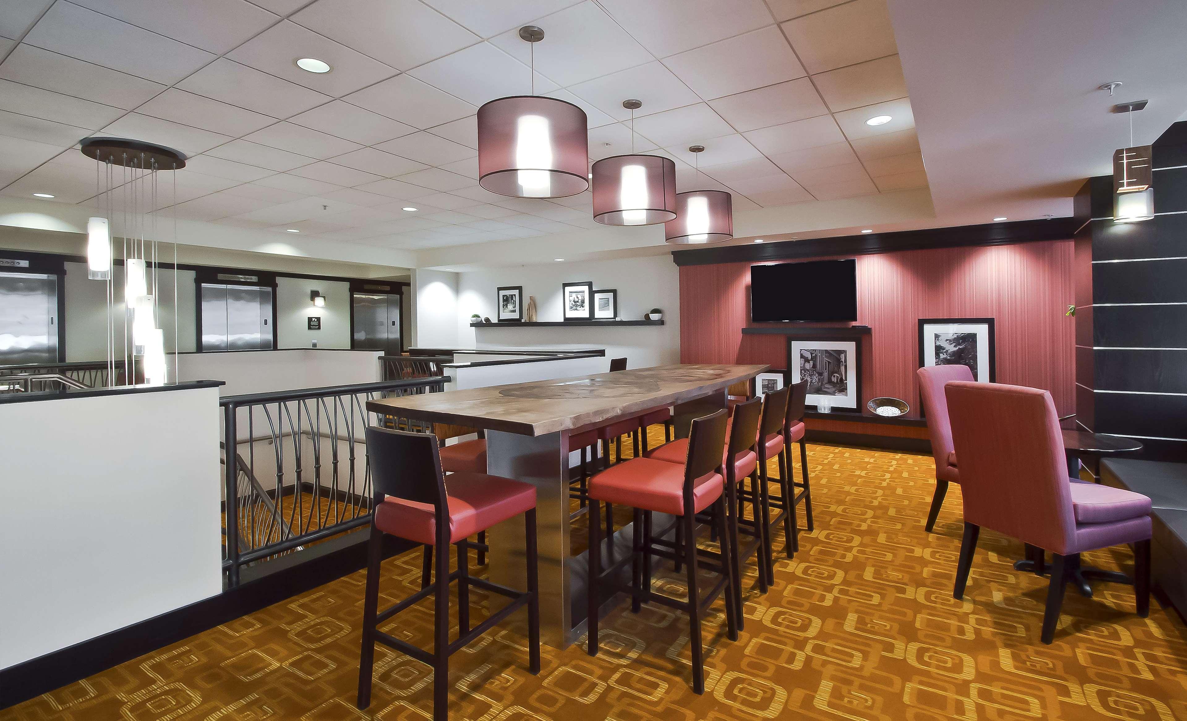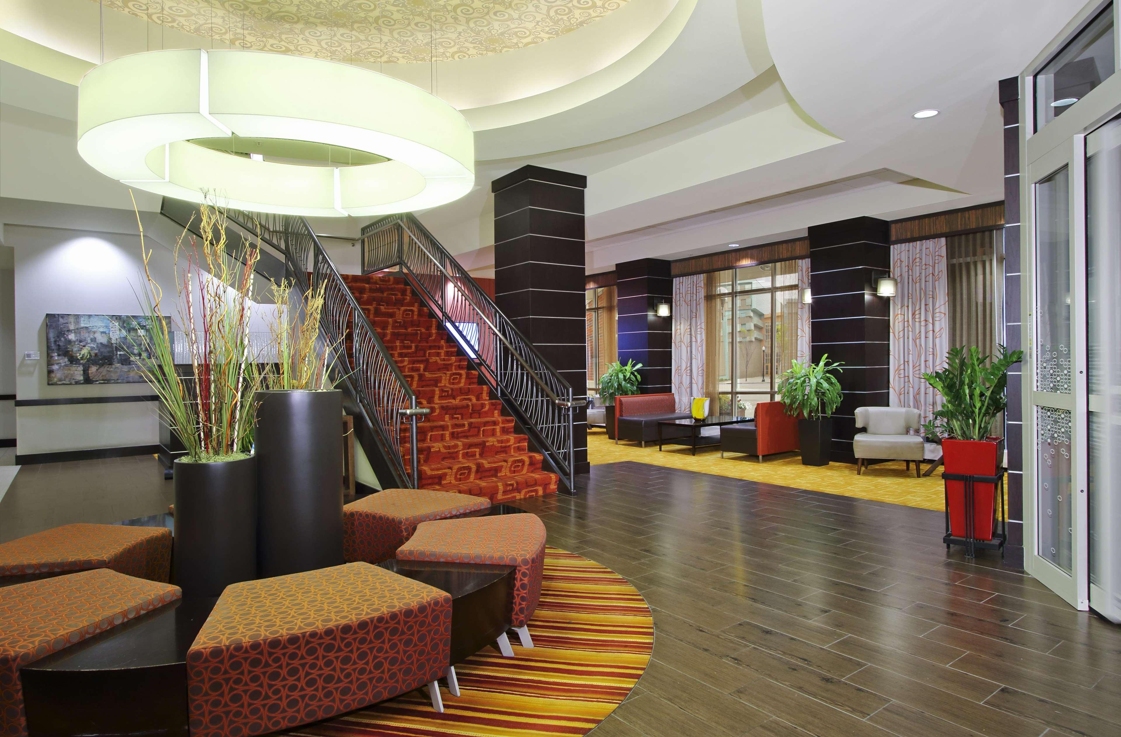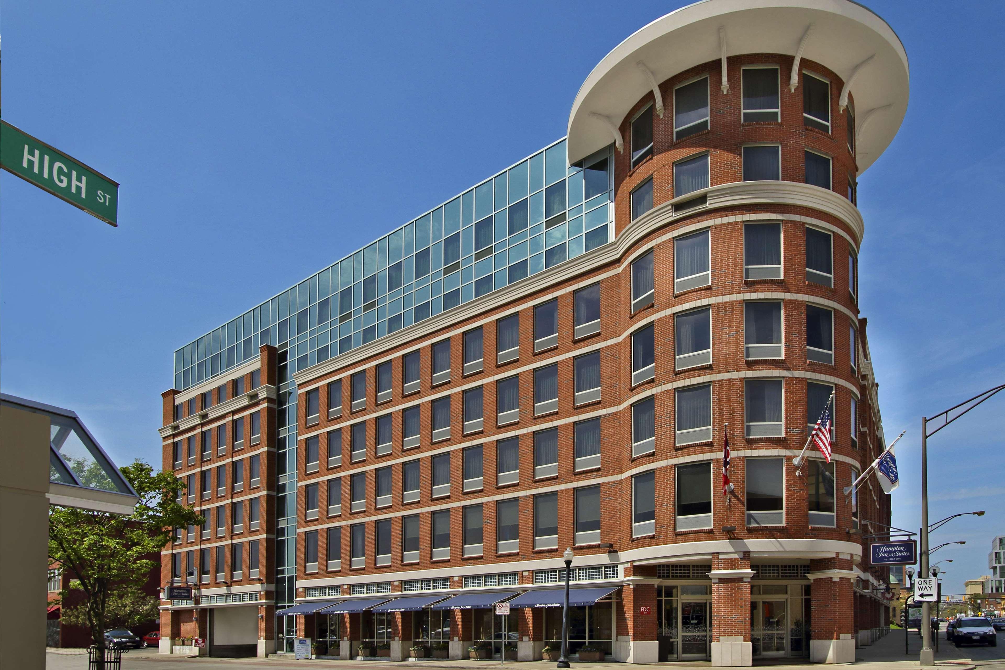 The Hampton Inn and Suites Columbus Downtown hotel is located one mile south of The Ohio State University in the vibrant Arena District. Directly across from the Columbus Convention Center and adjacent to the Short North Arts District, The Arena District Office and Restaurant Complexes, Nationwide Arena, the "new" Clippers Stadium, and the Arena Grand Theatre. Our hotel guests can walk to restaurants, enjoy the night life of Columbus, Ohio, stroll through art galleries and escape to Columbus' hottest districts. One of Columbus' hottest new restaurants onsite, Deepwood features classic American and New England cuisine, open for lunch Tuesday thru Friday and dinner every night. The Hampton Inn and Suites Downtown Columbus hotel is convenient to Federal, State Government Offices and Courthouses as well as walking distance to major corporation offices such as Nationwide Insurance, American Electric Power, KPMG, Nisource, among others in the downtown Columbus, Ohio area. The Hampton Inn and Suites Columbus Downtown hotel is close to Ohio State University, Ohio State University Hospital and Sports Facilities, James Cancer Center, Capital University, Franklin University and Ohio State house. Enjoy all that downtown Columbus, Ohio has to offer with exciting entertainment venues, sporting events and restaurants all within blocks of the Hampton Inn and Suites Downtown Columbus hotel. Walk to the Short North Arts District, Nationwide Arena, and stroll along the Riverfront. The Hampton Inn and Suites hotel in downtown Columbus, Ohio offers 179 guest rooms and suites with complimentary high-speed internet access wired and wireless, indoor pool, PreCor Fitness Center. Whether traveling to Ohio for business or leisure, Hampton Inn and Suites hotel guests enjoy amenities which include complimentary breakfast, in-room coffee maker and hair dryer, voicemail, and 42” Flat Panel HDTV with full cable and HD Channels.