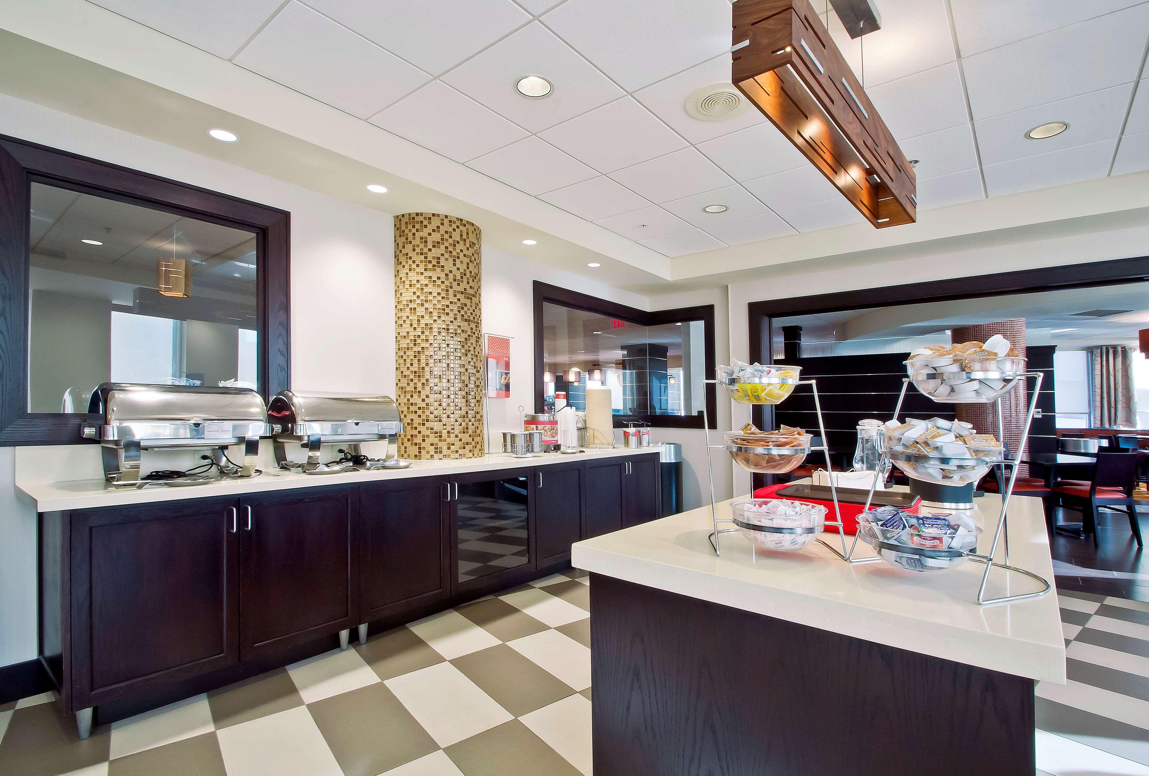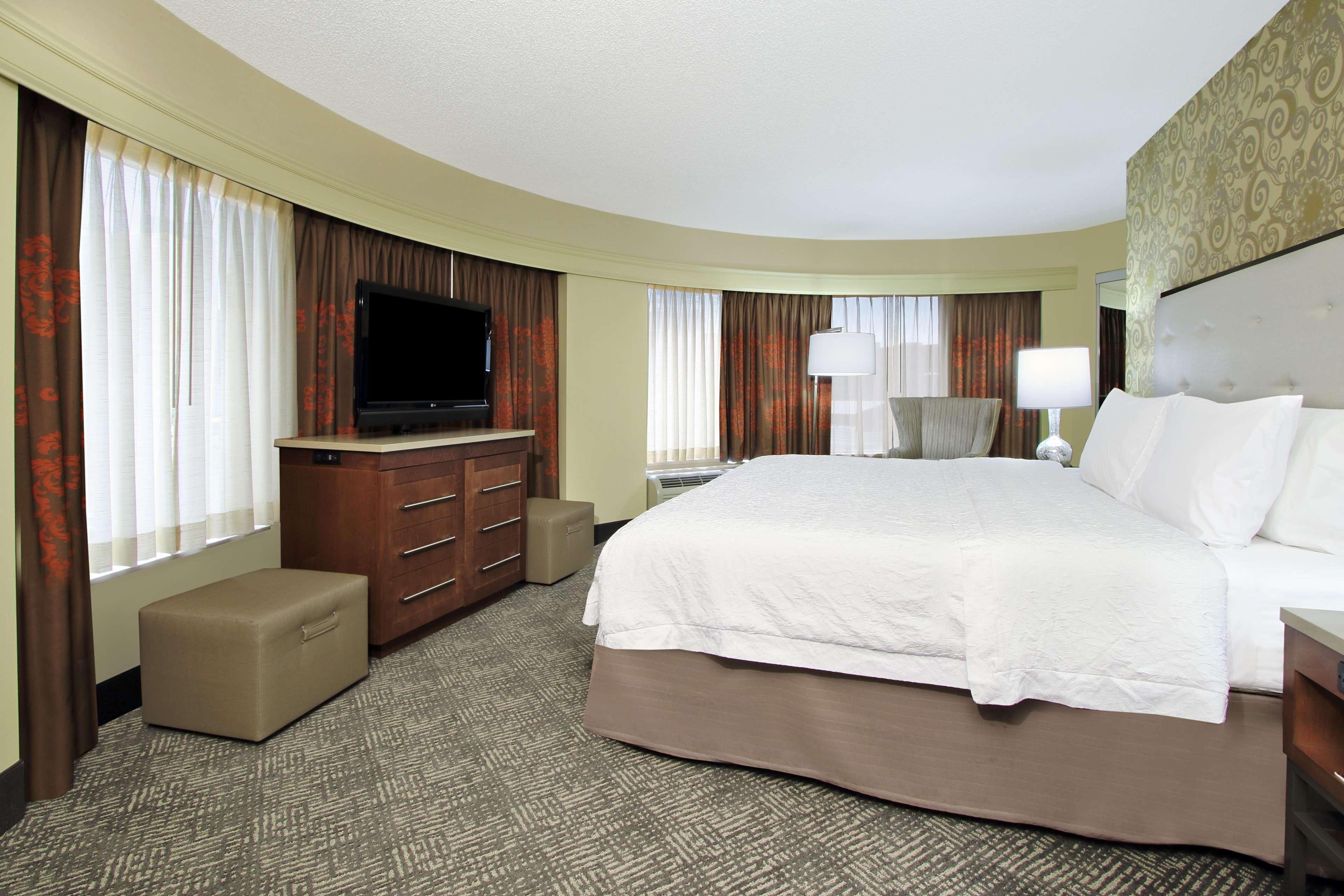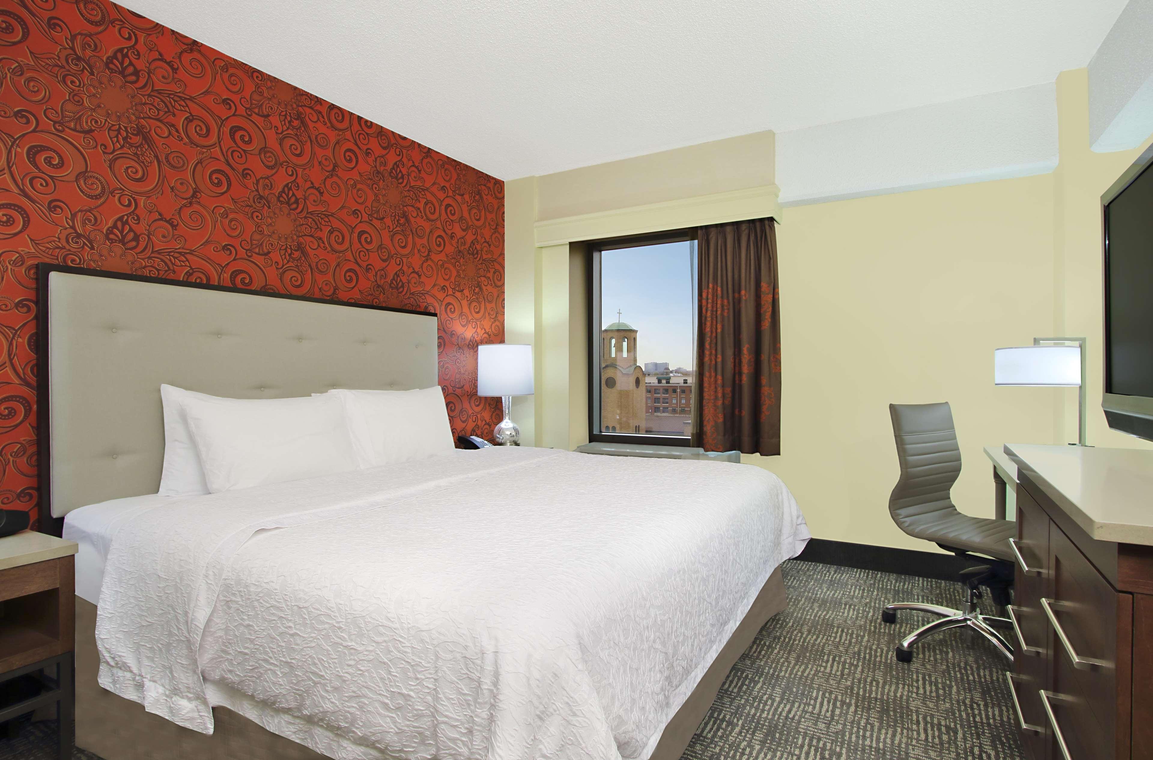The Hampton Inn and Suites Columbus Downtown hotel is located one mile south of The Ohio State University in the vibrant Arena District. Directly across from the Columbus Convention Center and adjacent to the Short North Arts District, The Arena District Office and Restaurant Complexes, Nationwide Arena, the "new" Clippers Stadium, and the Arena Grand Theatre. Our hotel guests can walk to restaurants, enjoy the night life of Columbus, Ohio, stroll through art galleries and escape to Columbus' hottest districts. One of Columbus' hottest new restaurants onsite, Deepwood features classic American and New England cuisine, open for lunch Tuesday thru Friday and dinner every night. The Hampton Inn and Suites Downtown Columbus hotel is convenient to Federal, State Government Offices and Courthouses as well as walking distance to major corporation offices such as Nationwide Insurance, American Electric Power, KPMG, Nisource, among others in the downtown Columbus, Ohio area. The Hampton Inn and Suites Columbus Downtown hotel is close to Ohio State University, Ohio State University Hospital and Sports Facilities, James Cancer Center, Capital University, Franklin University and Ohio State house. Enjoy all that downtown Columbus, Ohio has to offer with exciting entertainment venues, sporting events and restaurants all within blocks of the Hampton Inn and Suites Downtown Columbus hotel. Walk to the Short North Arts District, Nationwide Arena, and stroll along the Riverfront. The Hampton Inn and Suites hotel in downtown Columbus, Ohio offers 179 guest rooms and suites with complimentary high-speed internet access wired and wireless, indoor pool, PreCor Fitness Center. Whether traveling to Ohio for business or leisure, Hampton Inn and Suites hotel guests enjoy amenities which include complimentary breakfast, in-room coffee maker and hair dryer, voicemail, and 42” Flat Panel HDTV with full cable and HD Channels.