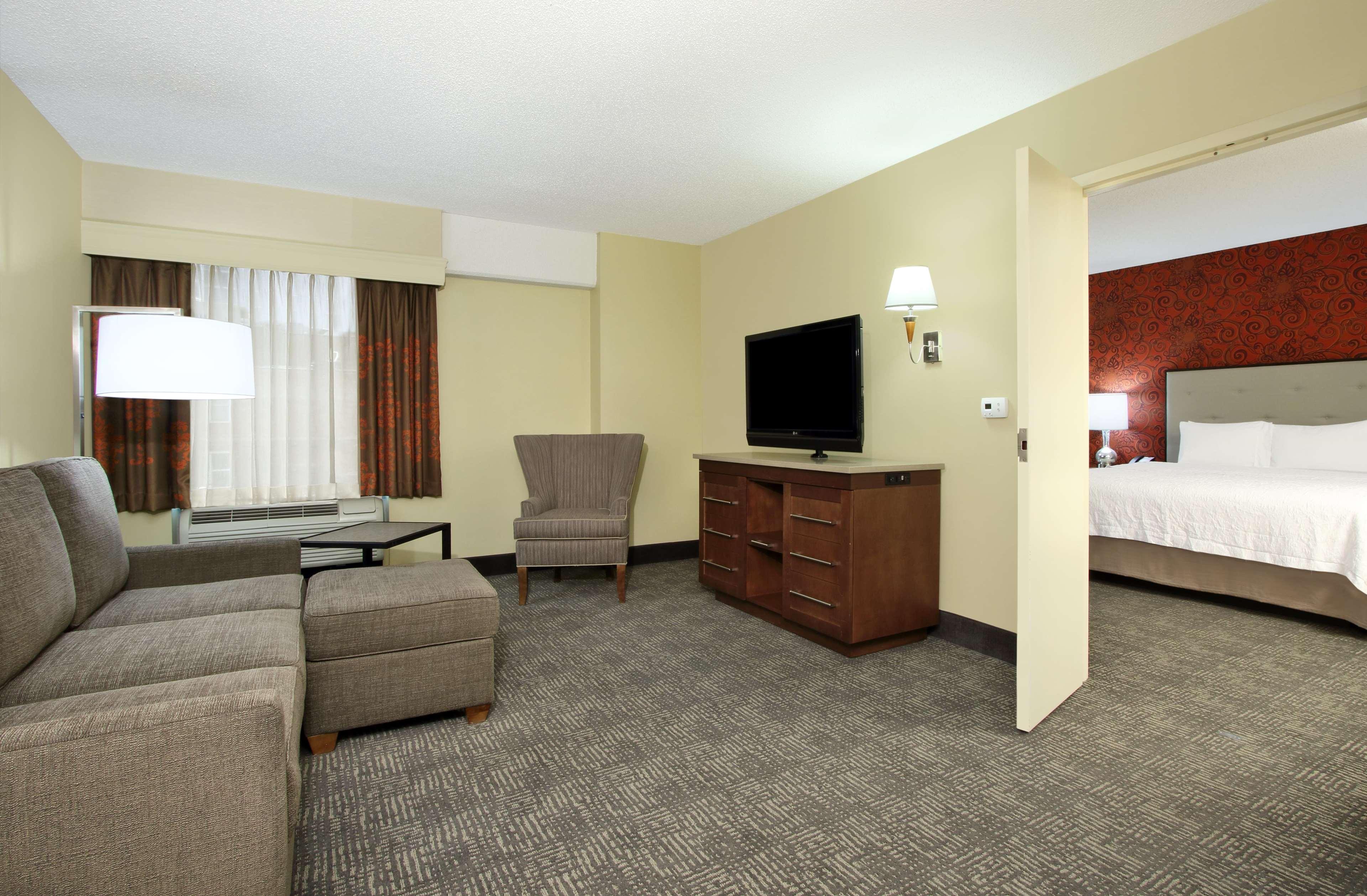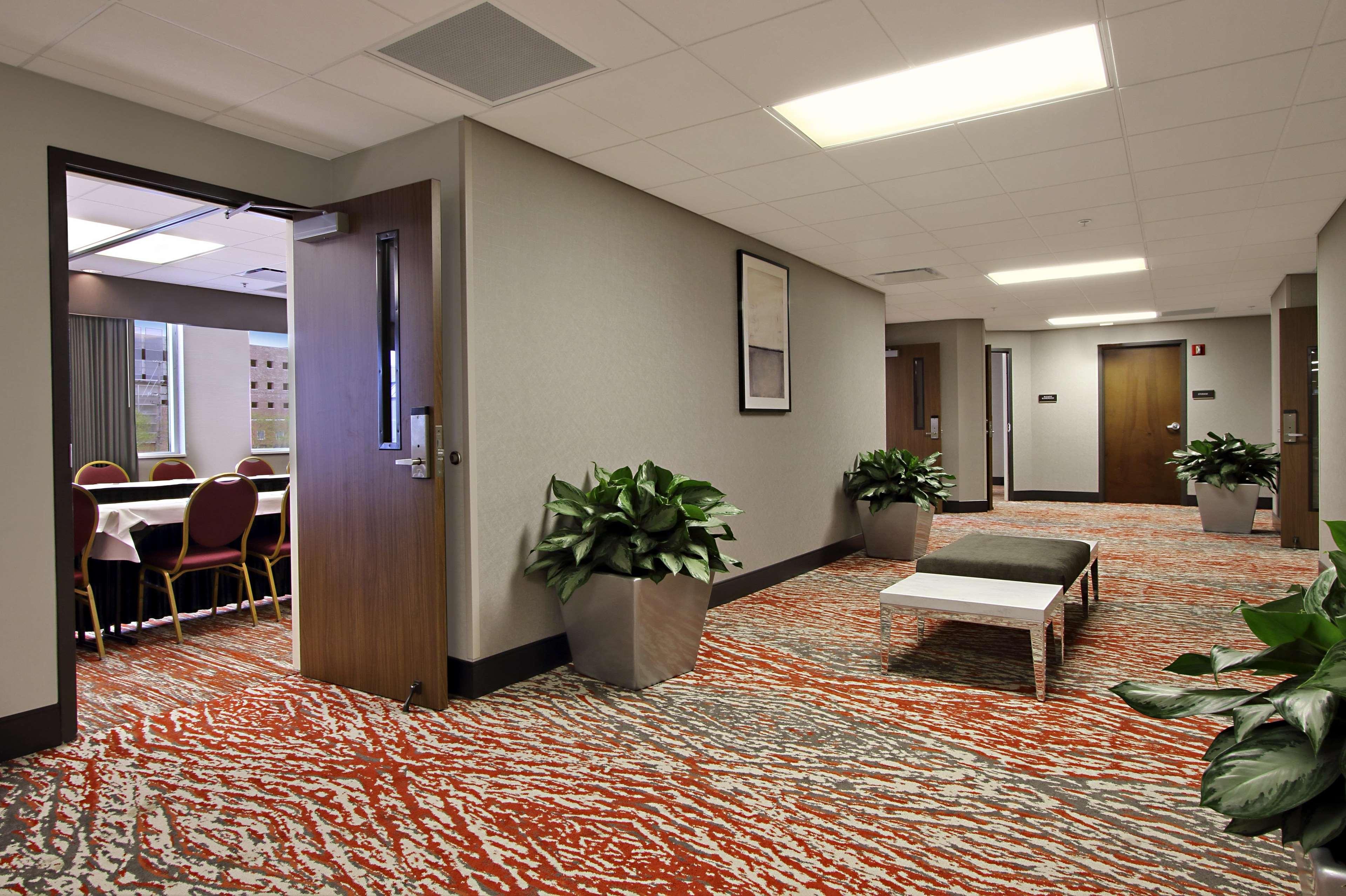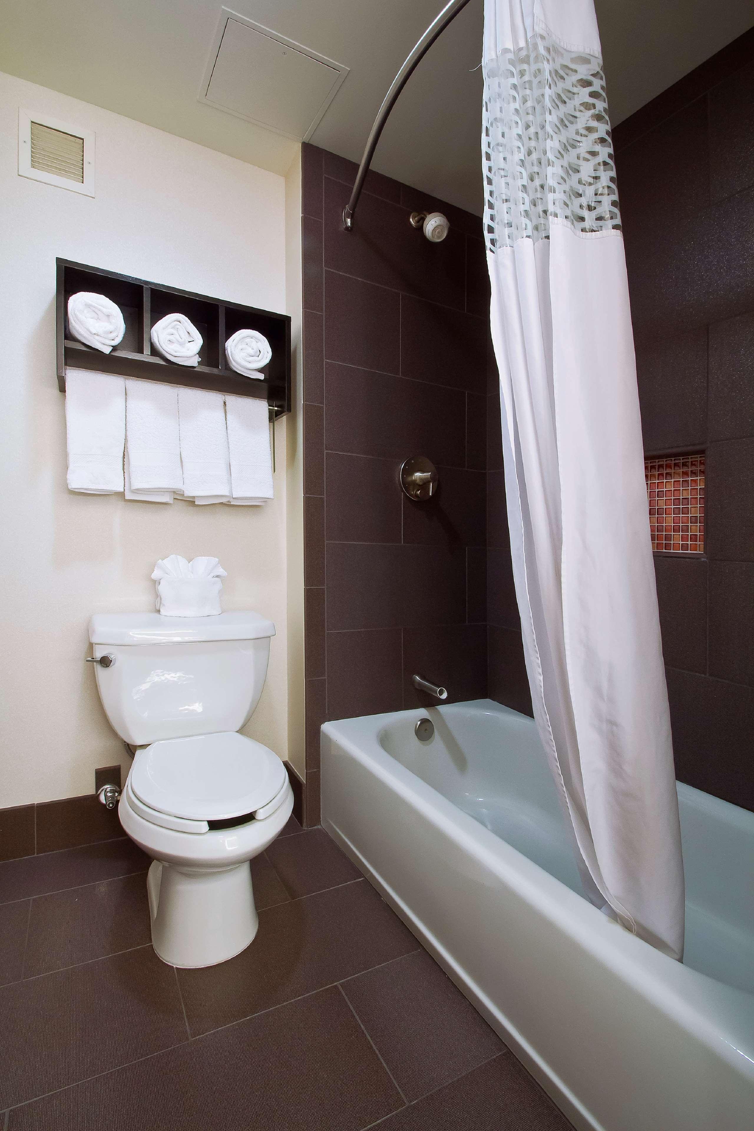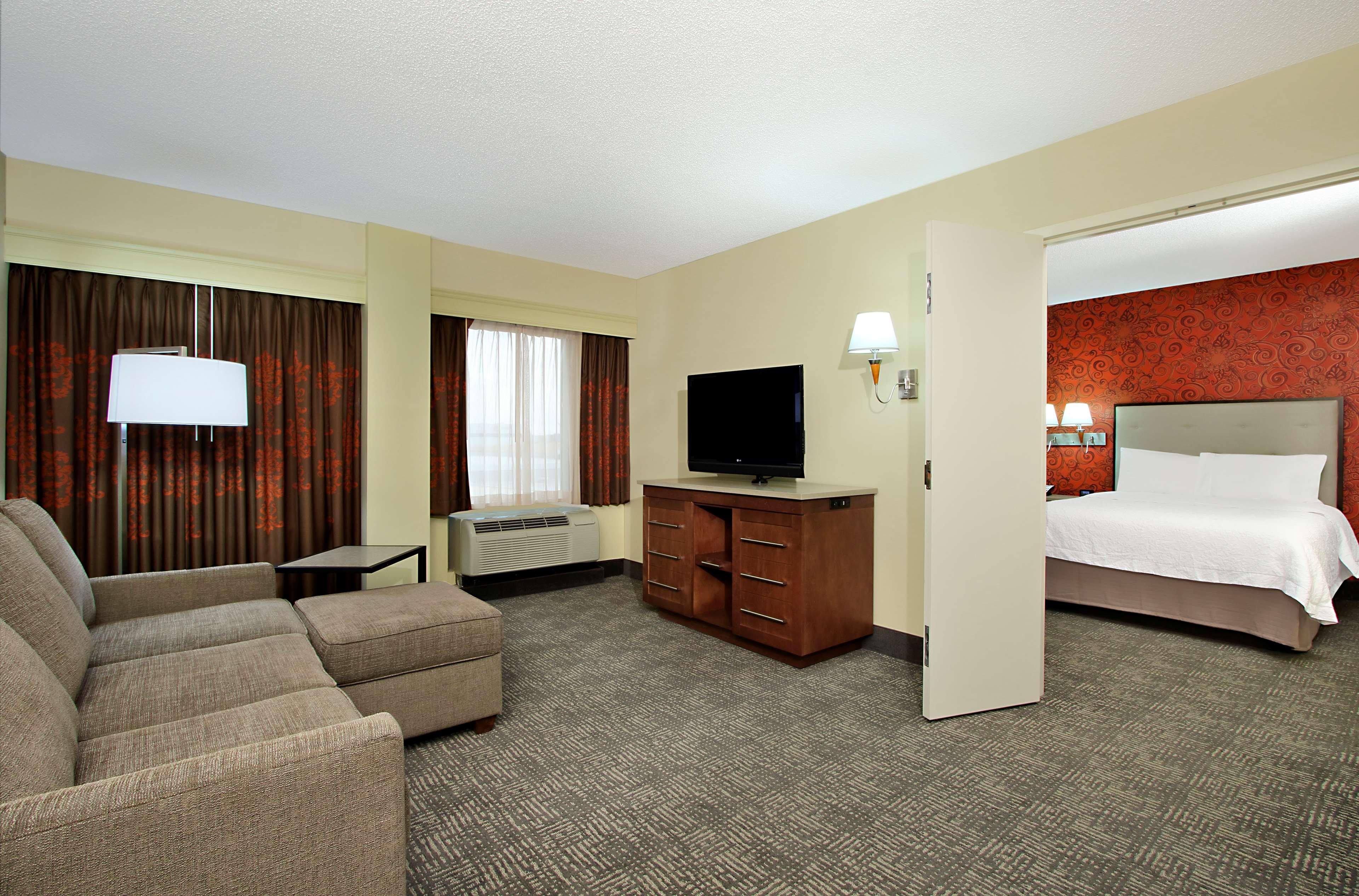 The Hampton Inn and Suites Columbus Downtown hotel is located one mile south of The Ohio State University in the vibrant Arena District. Directly across from the Columbus Convention Center and adjacent to the Short North Arts District, The Arena District Office and Restaurant Complexes, Nationwide Arena, the "new" Clippers Stadium, and the Arena Grand Theatre. Our hotel guests can walk to restaurants, enjoy the night life of Columbus, Ohio, stroll through art galleries and escape to Columbus' hottest districts. One of Columbus' hottest new restaurants onsite, Deepwood features classic American and New England cuisine, open for lunch Tuesday thru Friday and dinner every night. The Hampton Inn and Suites Downtown Columbus hotel is convenient to Federal, State Government Offices and Courthouses as well as walking distance to major corporation offices such as Nationwide Insurance, American Electric Power, KPMG, Nisource, among others in the downtown Columbus, Ohio area. The Hampton Inn and Suites Columbus Downtown hotel is close to Ohio State University, Ohio State University Hospital and Sports Facilities, James Cancer Center, Capital University, Franklin University and Ohio State house. Enjoy all that downtown Columbus, Ohio has to offer with exciting entertainment venues, sporting events and restaurants all within blocks of the Hampton Inn and Suites Downtown Columbus hotel. Walk to the Short North Arts District, Nationwide Arena, and stroll along the Riverfront. The Hampton Inn and Suites hotel in downtown Columbus, Ohio offers 179 guest rooms and suites with complimentary high-speed internet access wired and wireless, indoor pool, PreCor Fitness Center. Whether traveling to Ohio for business or leisure, Hampton Inn and Suites hotel guests enjoy amenities which include complimentary breakfast, in-room coffee maker and hair dryer, voicemail, and 42” Flat Panel HDTV with full cable and HD Channels.