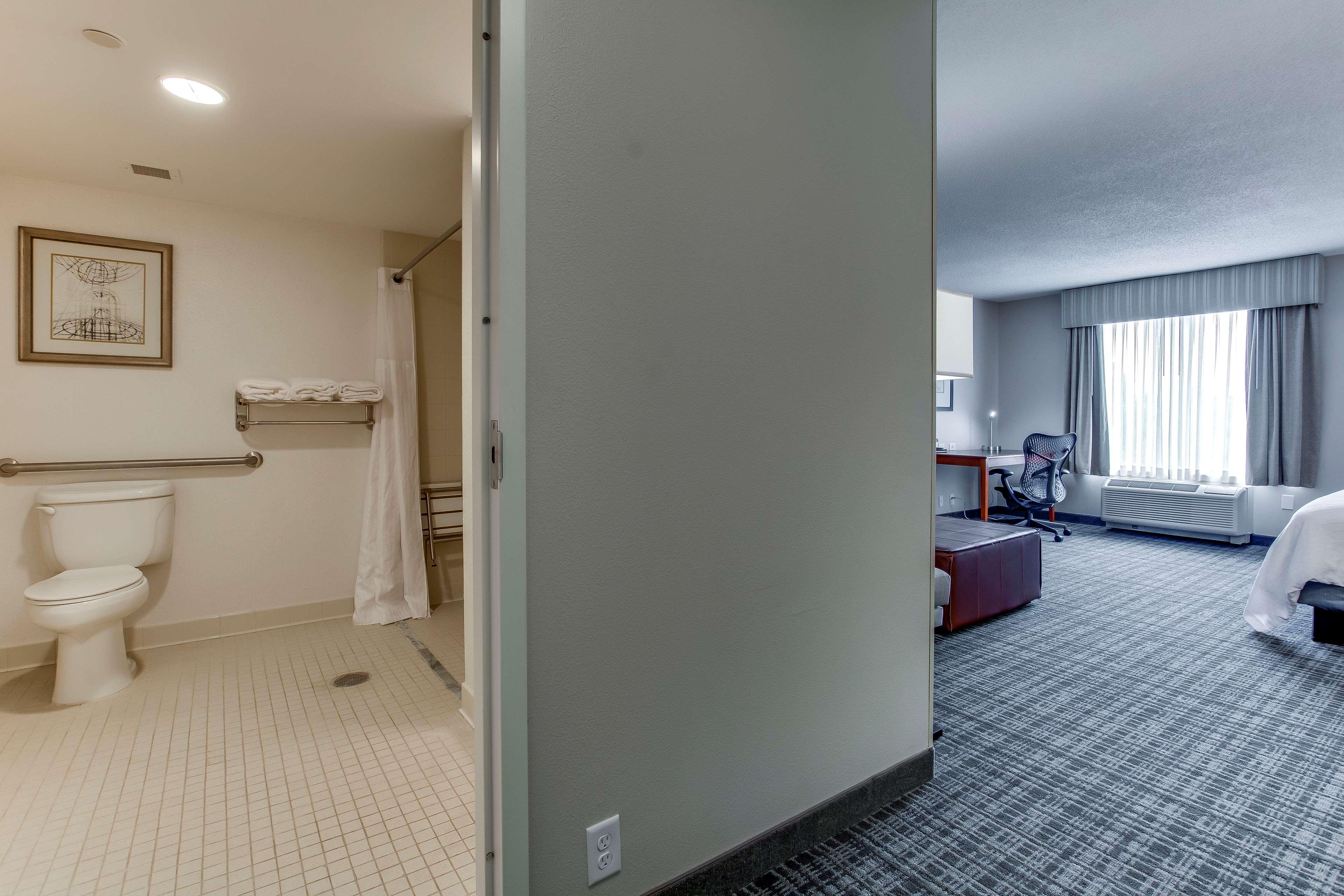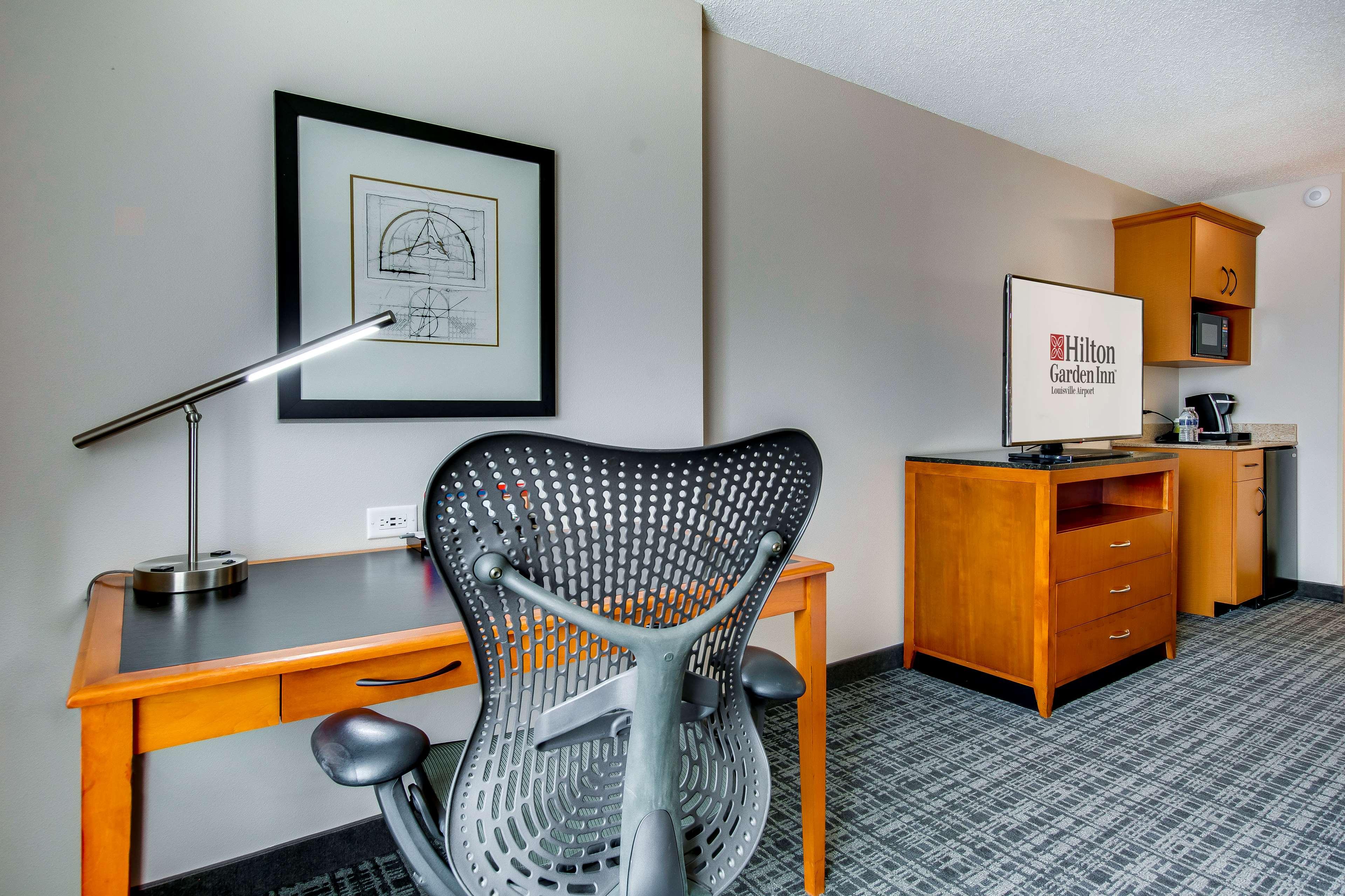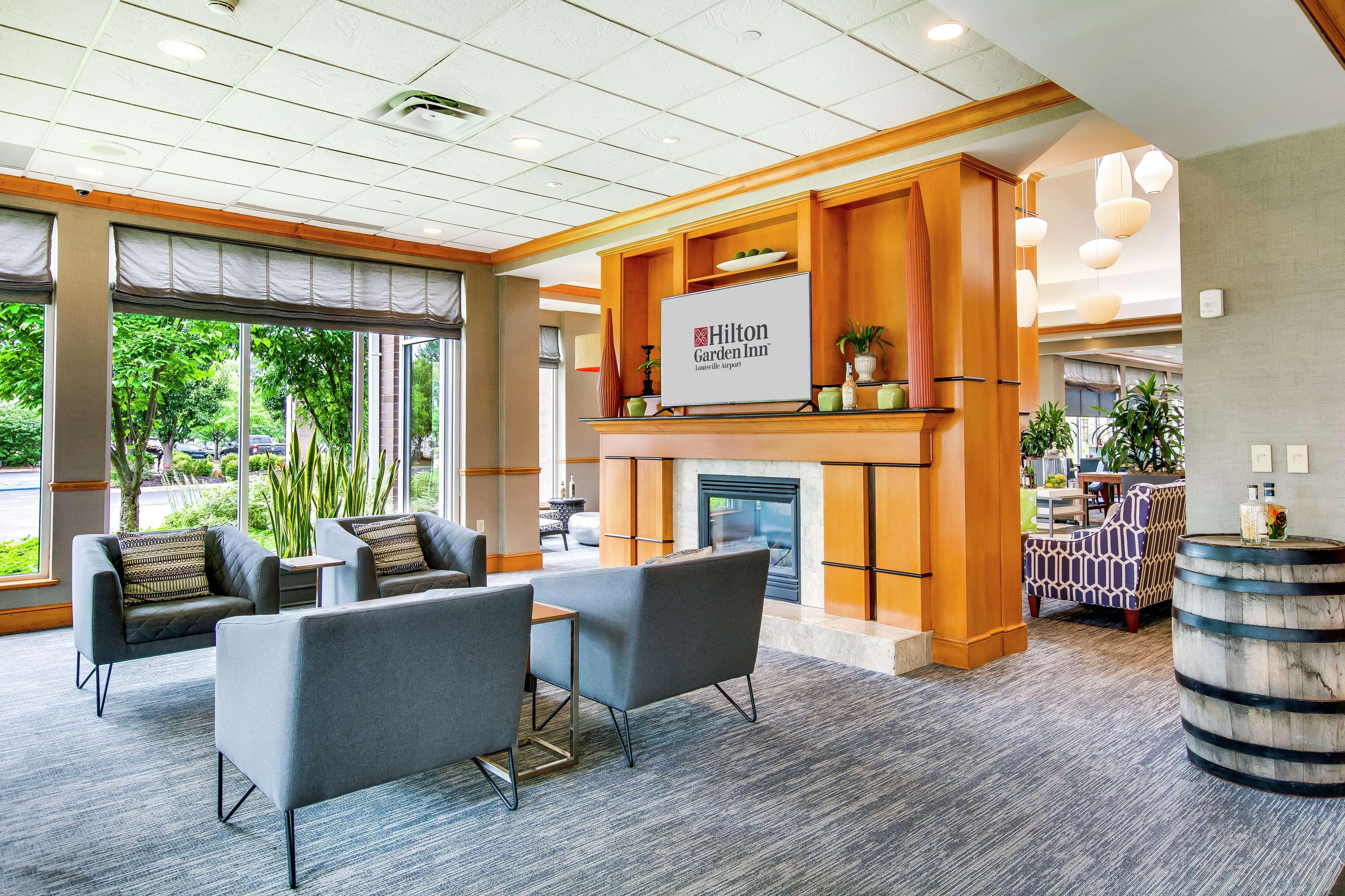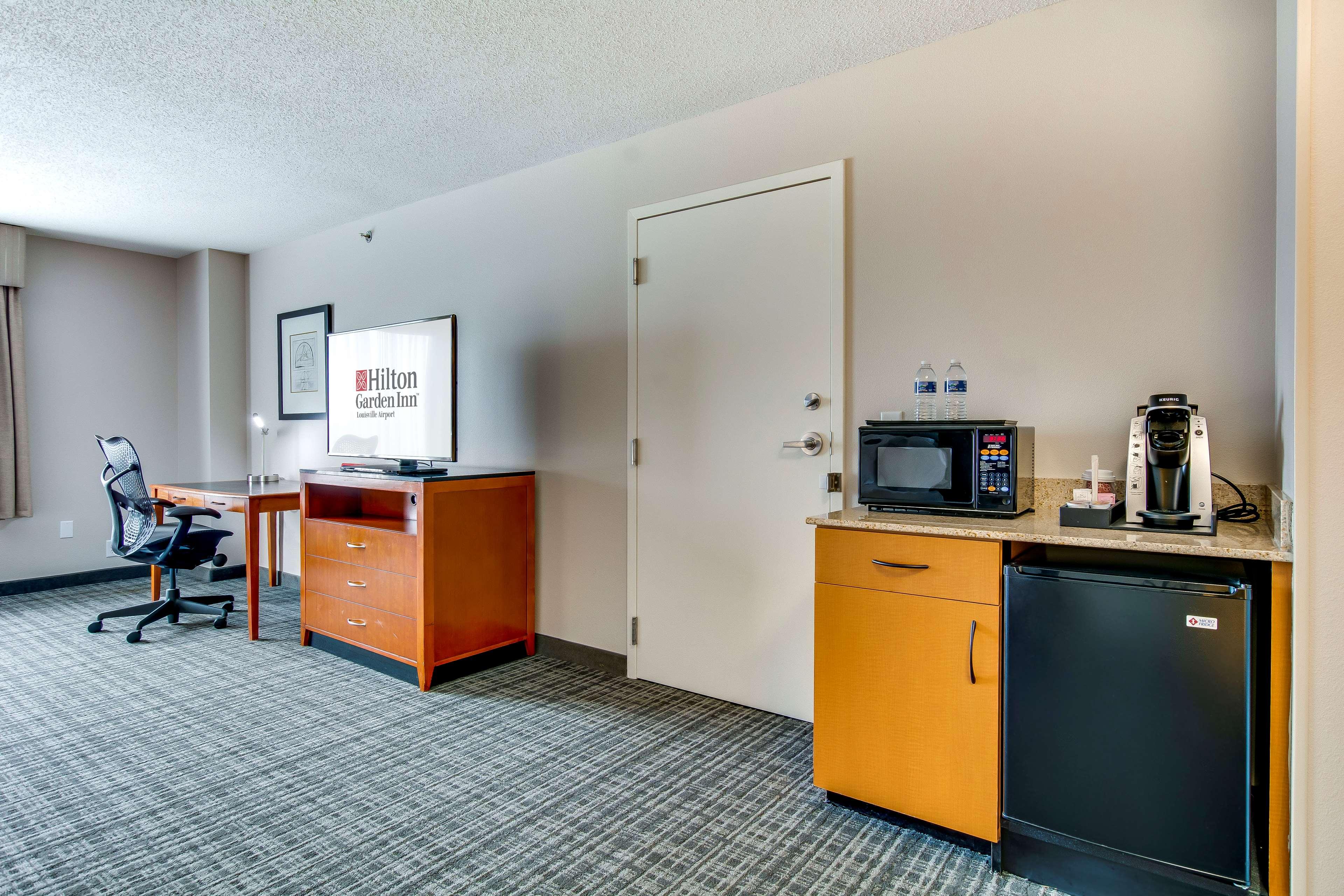 The following services and amenities are available, but with reduced service: Fitness Center, Breakfast, On-site Restaurant(s).The following services and amenities are currently not available: Pool, Room Service.Welcome to the Hilton Garden Inn Louisville Airport. We're the preferred choice among full service, airport corridor hotels for business, leisure and convention guests. Our Louisville, Kentucky hotel is centrally located off I-65, 1 mile from I-264 and just 1.5 miles to Louisville International Airport. Local attractions are easily accessible from our convenient location. We're adjacent to Kentucky Exhibition Center/at Gate 4. Kentucky Kingdom, historic Churchill Downs, Papa John's Cardinal Stadium, Jim Patterson Stadium and Kentucky Derby Museum are all less than one mile away. Visit the University of Louisville campus, just 1.5 miles away or experience downtown Louisville, only 8 miles from our hotel. The Hilton Garden Inn Louisville Airport hotel offers 208 comfortably appointed guest rooms. Options include standard kings, standard doubles, executive kings, double suites and king suites. Each of our rooms and suites feature complimentary WiFi and hospitality center with microwave, refrigerator and Kuerig coffeemaker. Work at the spacious desk area and enjoy special touches including an iron with ironing board, hair dryer and in-room safe. Our 100% smoke-free hotel also features the Garden Grill restaurant serving daily breakfast, dinner and evening room service. Unwind and visit our hotel lounge open daily 5pm-10pm. Pick up snacks and sundries at the 24-hour Pavilion Pantry convenience mart. Business guests will enjoy our complimentary 24-hour business center and complimentary WiFi throughout the hotel. Host a meeting in 7,500 sq. ft. of flexible space with full-service catering.