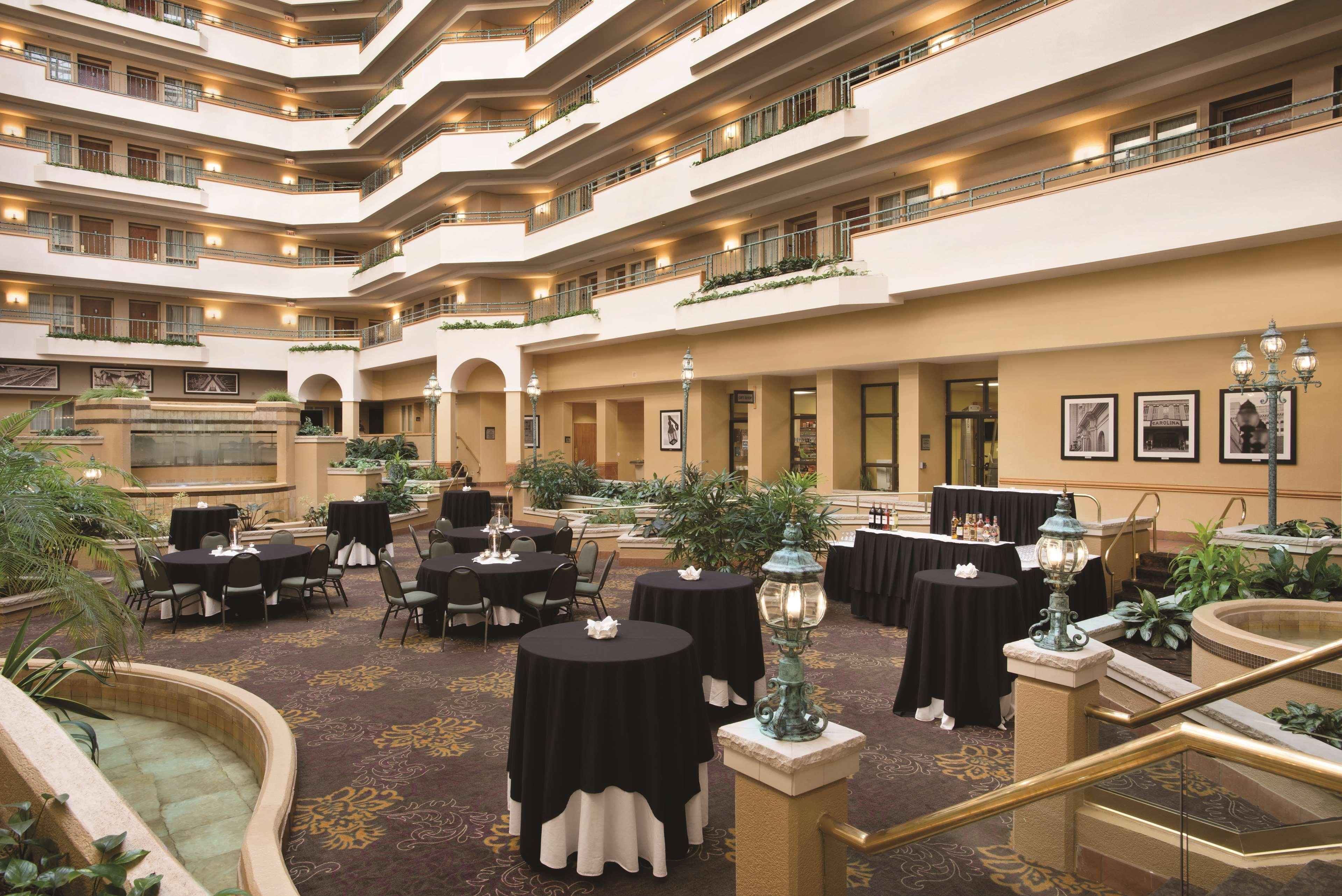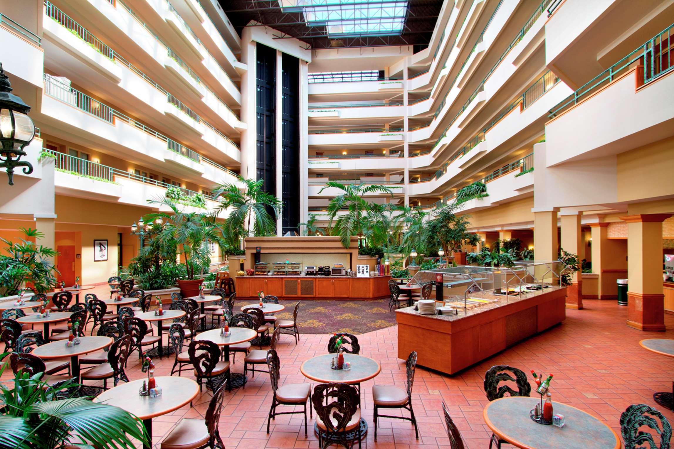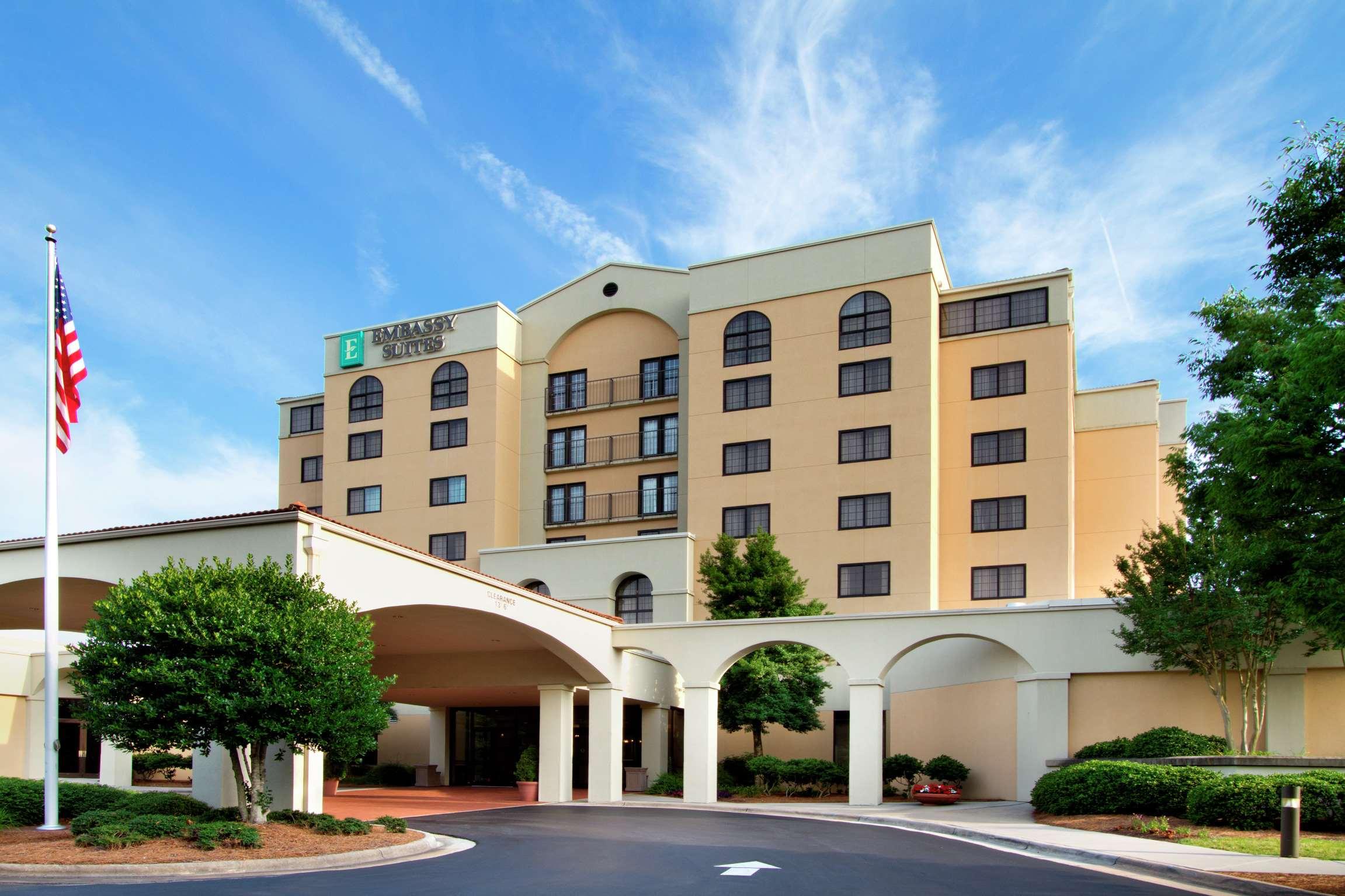 The following services and amenities are available, but with reduced service: Airport Shuttle, Breakfast, Pool.The following services and amenities are currently not available: Complimentary Evening Social, Fitness Center, On-site Restaurant(s), Room Service.The recently-renovated Embassy Suites Greensboro hotel is located two miles from the Piedmont Triad International Airport close to Downtown Greensboro, the Greensboro Coliseum Complex, the Koury Convention Center, Guilford College, the Four Seasons Town Centre Shopping Mall and the Oak Hallow Shopping Mall. This upscale full-service all-suite hotel is just minutes from Wet 'n Wild Emerald Point Water Park, the campus of the University of North Carolina at Greensboro, the Guilford Courthouse Battlefield, the campus of North Carolina A&T State University, High Point University, Furnitureland South, Joel Coliseum, the campus of Wake Forest University, Old Salem NC, Elon University and the communities of Winston - Salem and High Point. Guests of the Embassy Suites Greensboro hotel stay in spacious two-room suites and receive a complimentary cooked-to-order breakfast and evening reception.The hotel provides complimentary shuttle service to and from the airport.