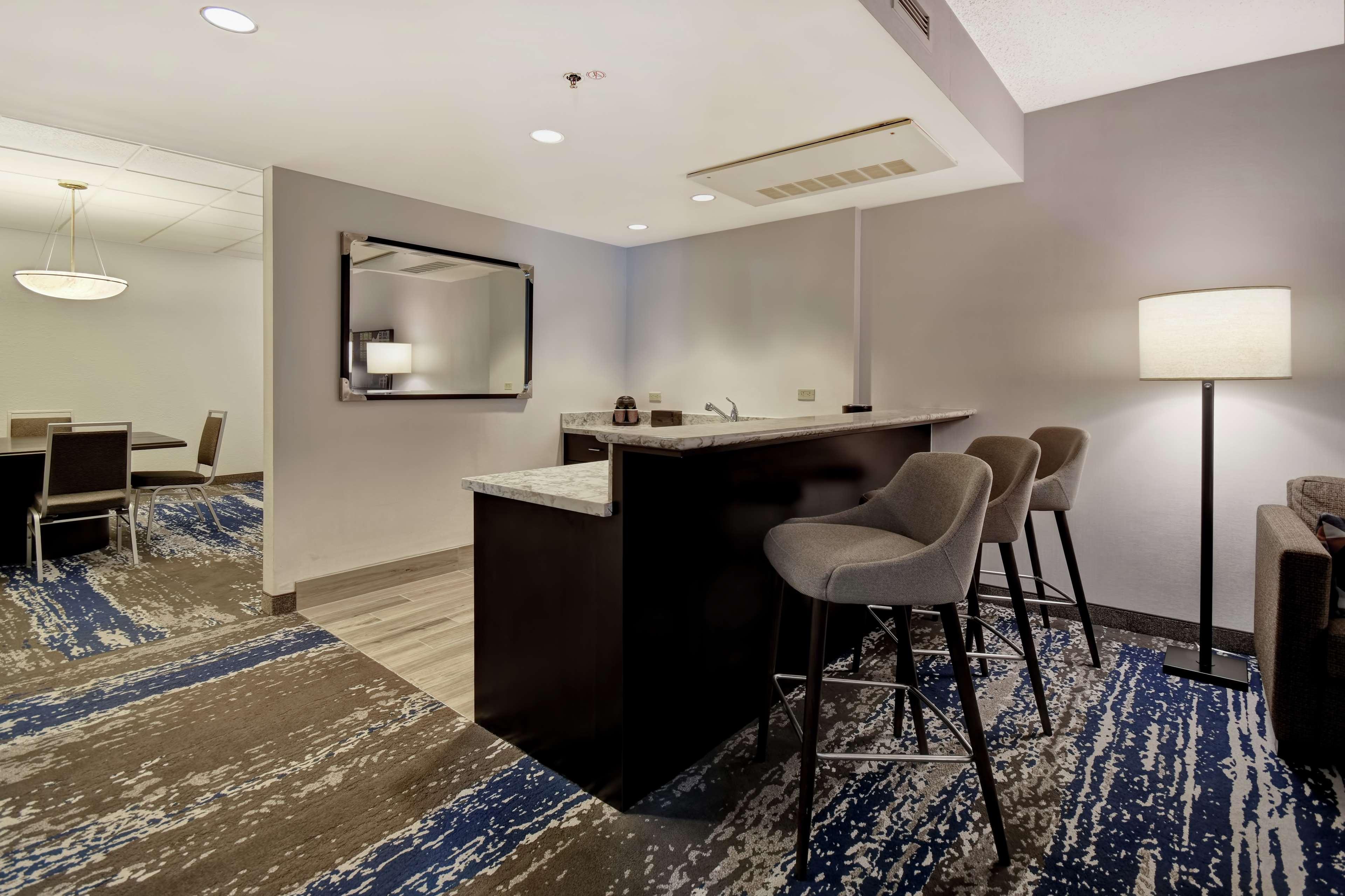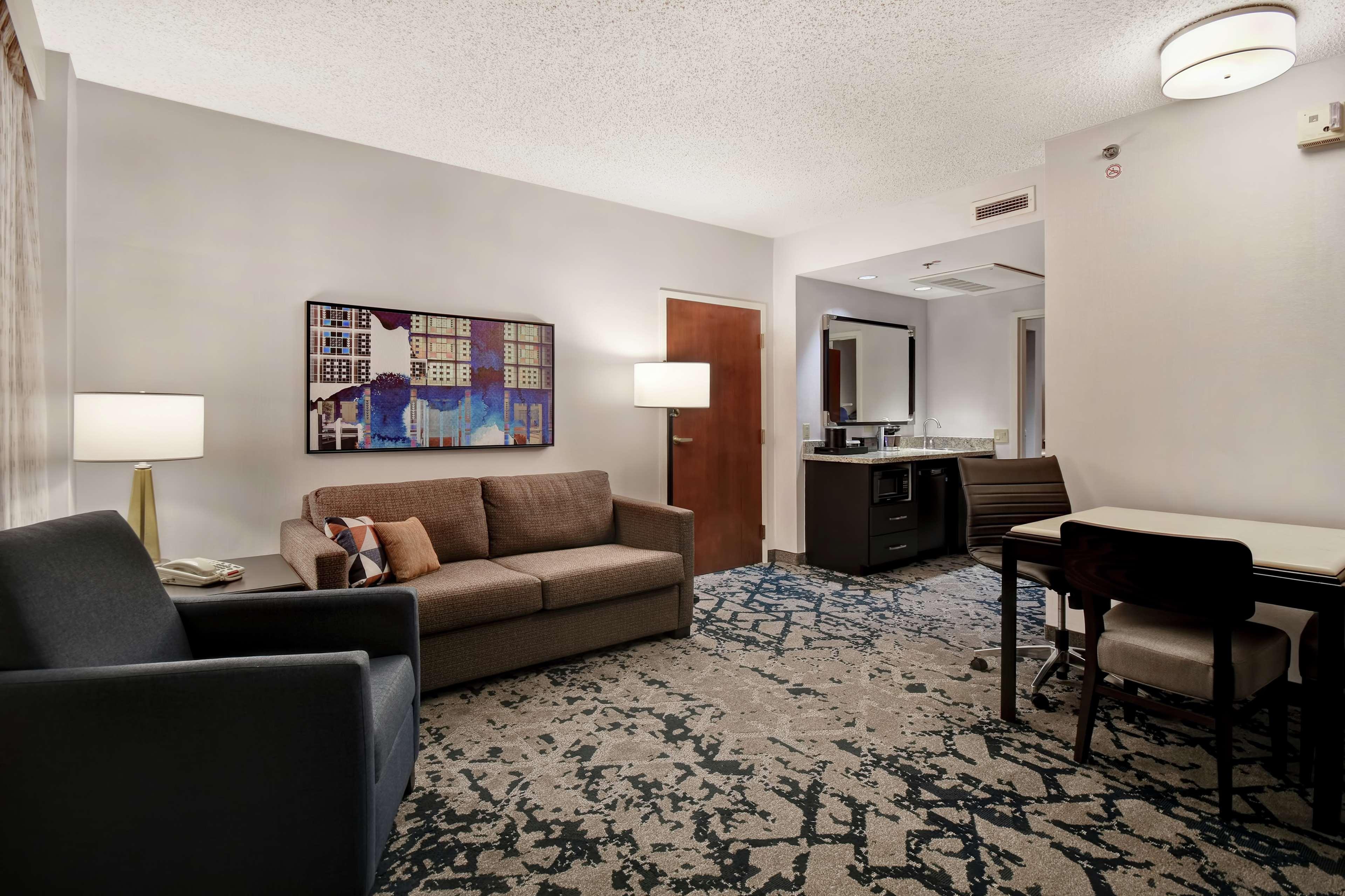 The following services and amenities are available, but with **reduced service**: Complimentary Evening Social, Breakfast, On-site Restaurant(s), Pool.The following services and amenities are currently **not available**: Airport Shuttle, Room Service, Valet Parking.Centrally located in downtown Charleston WV, Embassy Suites by Hilton is just minutes from Yeager International Airport and Interstates 64 & 77. Fully renovated in 2019, accommodations include two-room suites with separate living and bedrooms, WiFi access, complimentary Evening Reception with beverages and light snacks, and our lavish breakfast buffet with Cooked to Order station is included with every stay. Embassy Suites is steps away from Charleston Convention Center & Coliseum, Town Center Mall, Clay Center, specialty shops at Capitol Market, Appalachian Power Park, theater and many dining options. The State Capitol district and other must-see areas are just a couple of miles away, making Embassy Suites a wonderfully convenient and comfortable location from which to explore Charleston and the surrounding areas. With over 13,000 square feet of event space, we are the location of choice in Charleston when traveling for events, business or pleasure – expect more at Embassy Suites by Hilton Charleston WV!