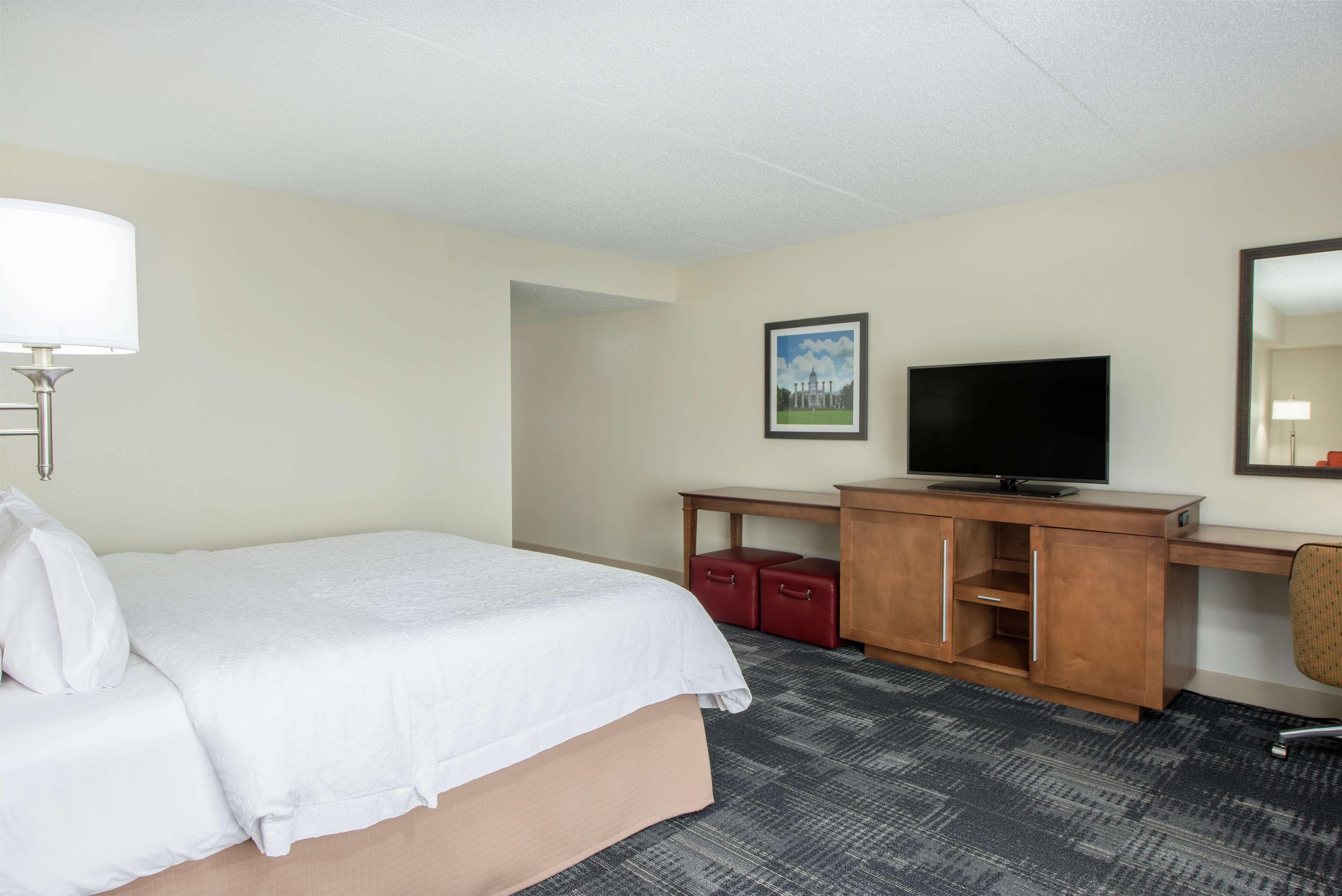 The Hampton Inn Columbia hotel has received the Hampton Inn's Circle of Excellence Award. Our hotel is currently ranked #15 out of all Hampton Inns nationwide!/nThe Hampton Inn I-70 Columbia hotel is conveniently located at Exit 128A, off Missouri Interstate 70 at the intersection of Highway 63, and is central to everything Columbia has to offer. The University of Missouri, downtown Columbia, Columbia Regional Airport, and Columbia Regional Hospital are all just minutes from the hotel. Other area attractions near our Columbia I-70 Hampton Inn include the Boone County Fairgrounds, Columbia Mall, Finger Lakes State Park, art galleries, museums and nature and fitness trails. Restaurants within walking distance of this Missouri hotel include Cracker Barrel, Golden Corral, Burger King, KFC, Pizza Hut, Taco Bell, China Garden, Ski Hi Bar & Grill and McDonald's. /nThe Columbia, Missouri Hampton Inn on I-70 features 121 amenity-filled hotel rooms that include a coffeemaker, refrigerator, hair dryer, iron and ironing board, as well as complimentary high-speed Internet access and a 27-inch cable TV with HBO and Encore premium movie channels. Hotel guests can request rooms with a whirlpool, a king bed or two double beds, as well as connecting rooms and cribs. /nSure to please the busy executive or leisure traveler to Missouri, Hampton Inn Columbia I-70 hotel guests will enjoy complimentary On the House hot breakfast buffet served daily, an exercise room located on the lobby level, an indoor pool and whirlpool and an outdoor sun deck. Be sure to enjoy our complimentary, freshly baked cookies each evening, and coffee and tea in the hotel lobby 24 hours a day.