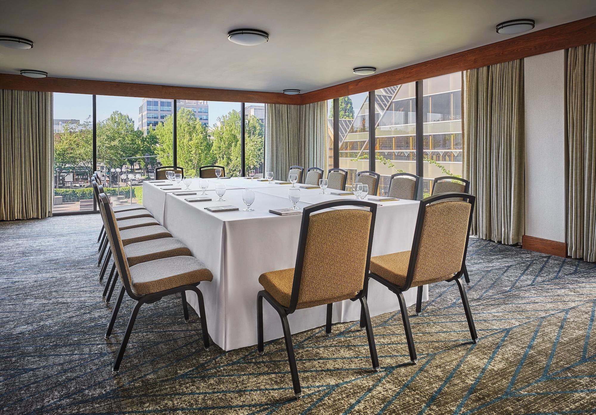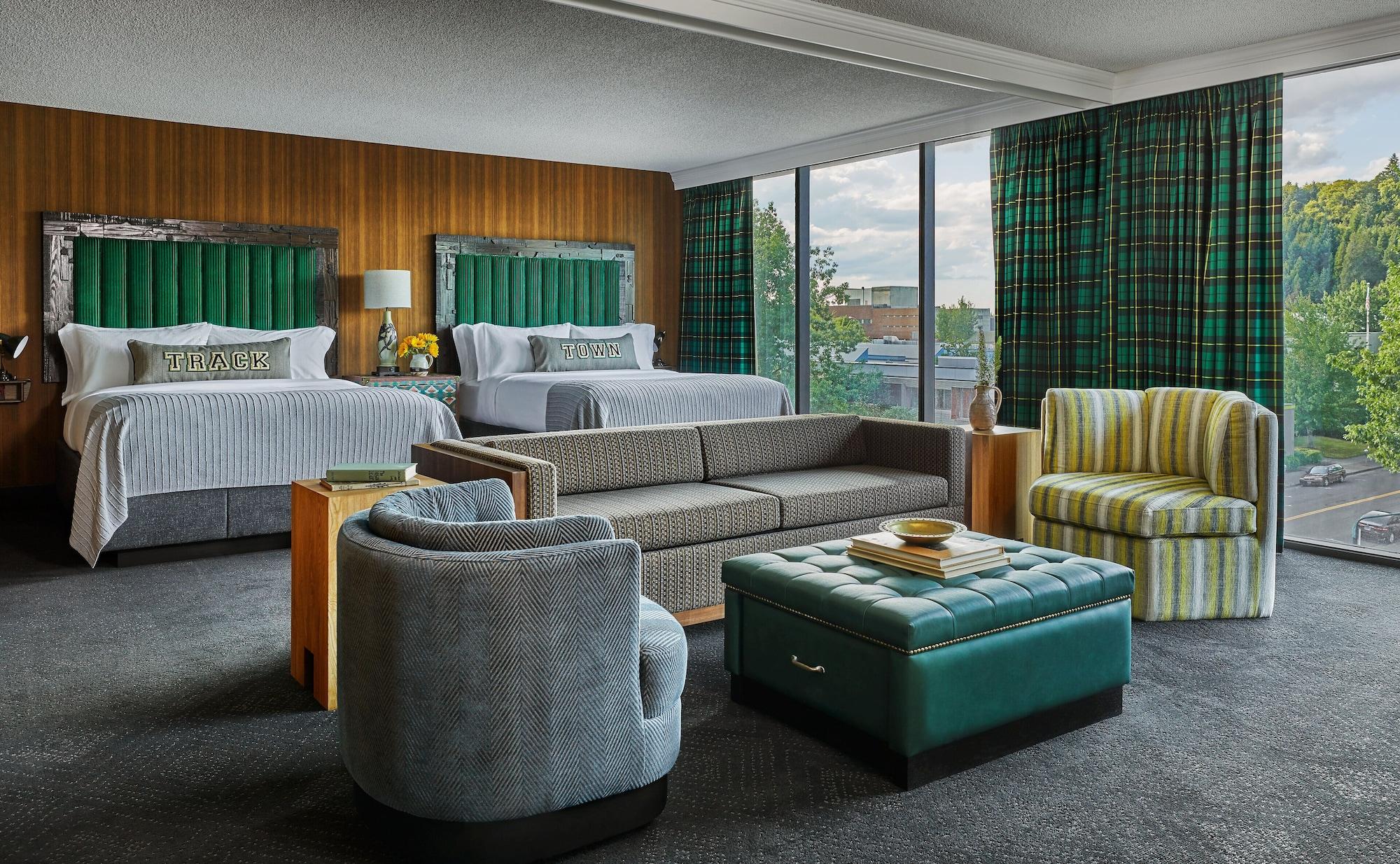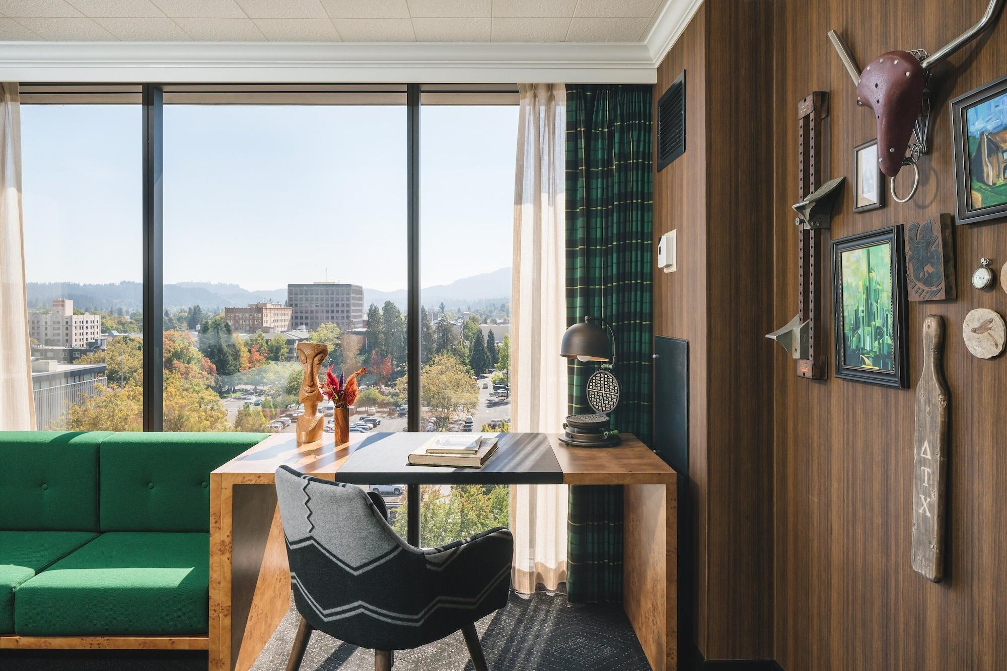 This sophisticated hotel is ideally located at the heart of downtown Eugene, in Oregon. The hotel is located just a short distance away from Interstate 5, and enjoys close proximity to Springfield. This wonderful hotel is surrounded by opportunities for exploration and discovery. The hotel is located close to a number of attractions, including the Hult Centre for Performing Arts, Lane Events Centre and Fairgrounds and the Matthew Knight Arena. A number of businesses are also situated nearby. This wonderful hotel affords guests close proximity to a wealth of shopping, dining and entertainment venues. This upscale hotel invites guests into a world of refined elegance and style. The guest rooms are beautifully designed for relaxation and comfort. The hotel offers a wide range of facilities and services, meeting the needs of every type of traveller.