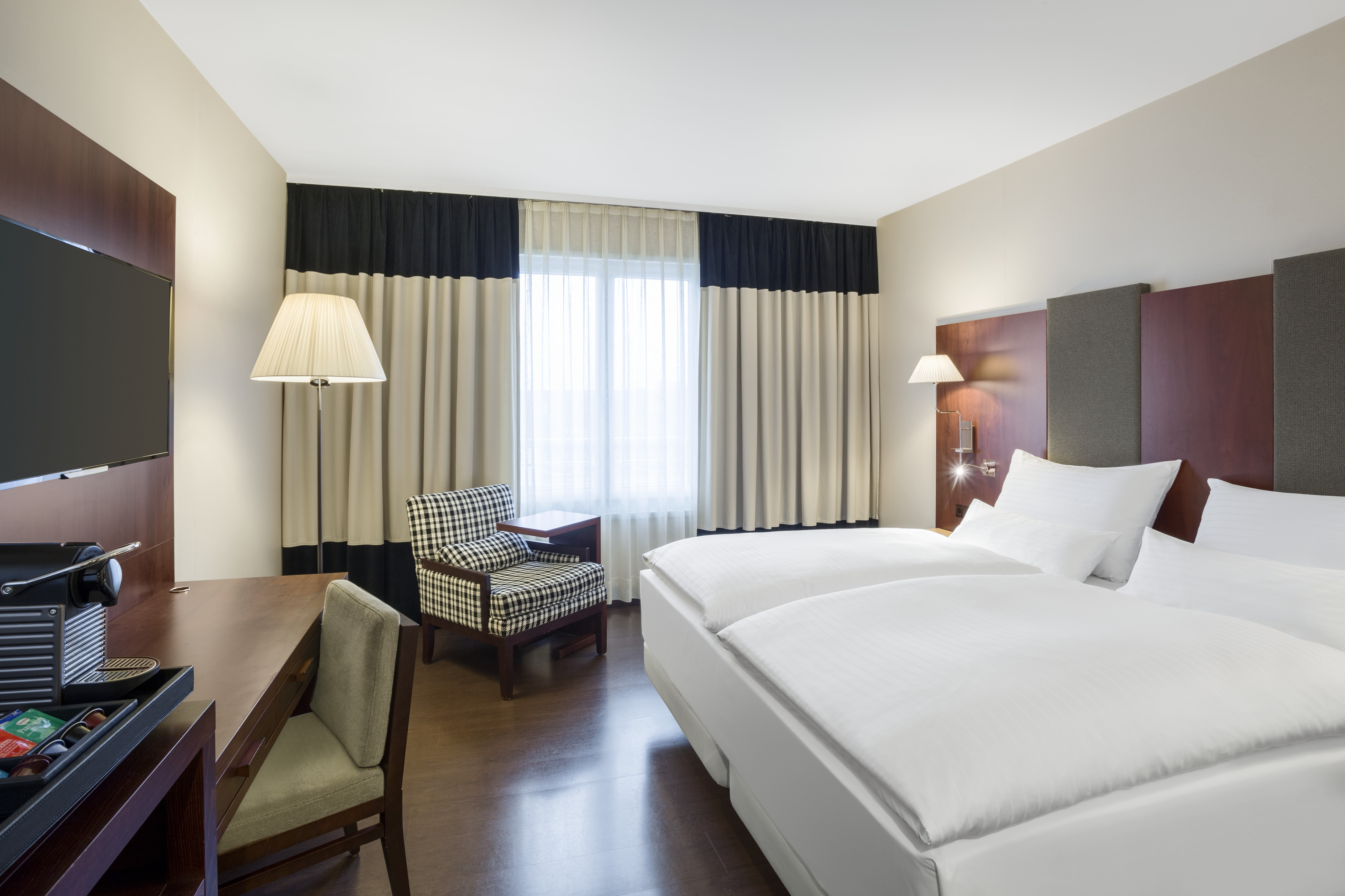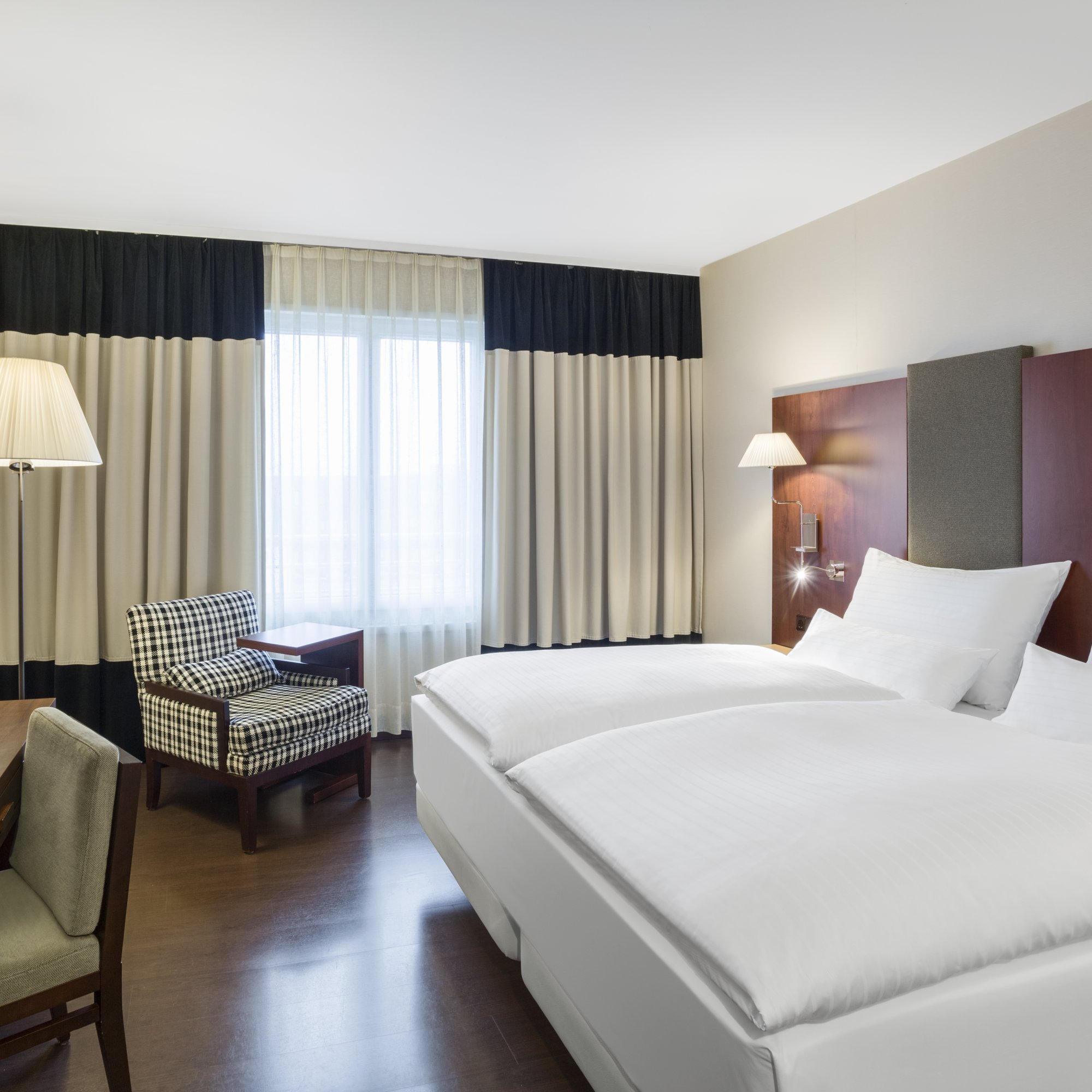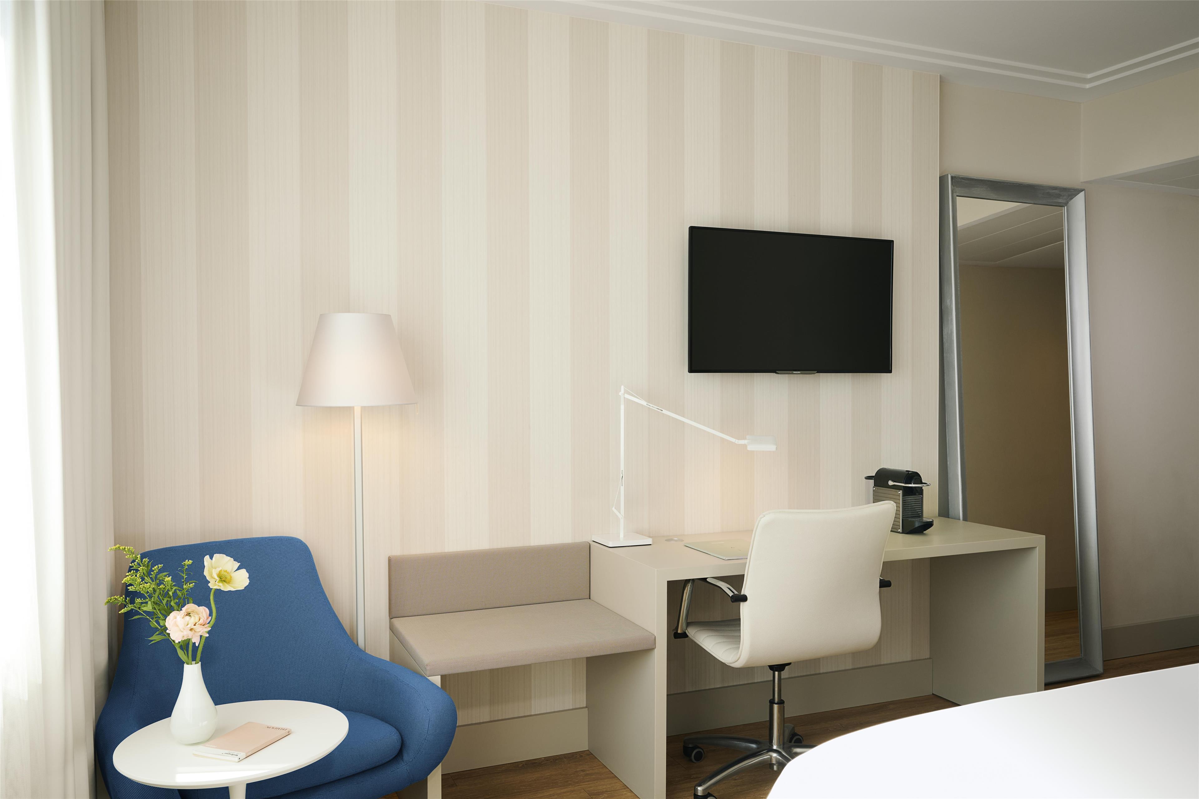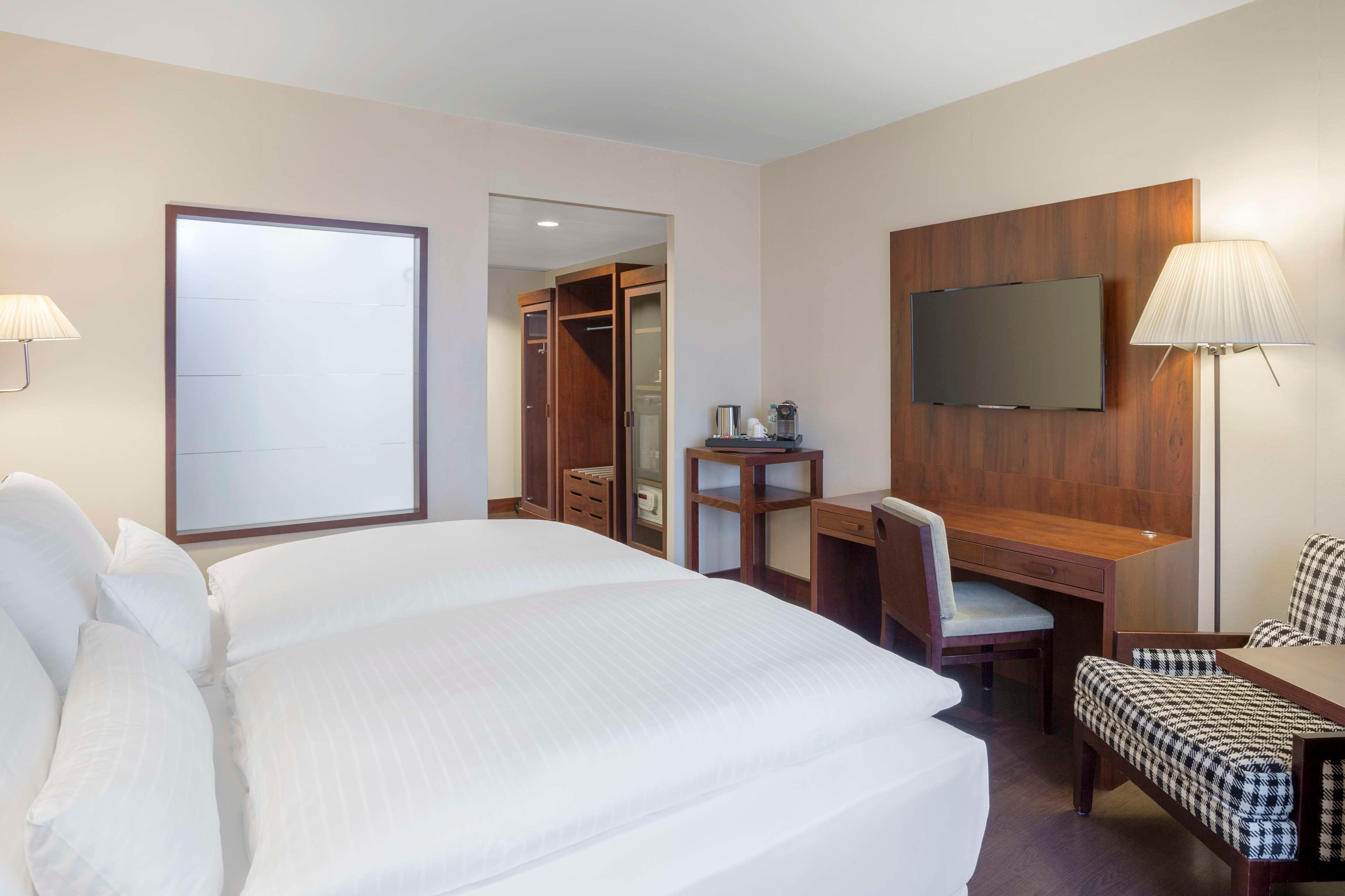 The NH Vienna Airport Conference Center hotel, previously known as NH Wien Airport, is favorably located across from the arrivals hall of Vienna International Airport. As such, there are numerable transportation options close by, including a train station and bus and CAT stations. The Flugenhafen Wien is within walking distance and the hotel is approximately 16 minutes from the Historic Center of Vienna. Nearby shopping at Shopping City Süd and Naschmarkt are easily accessible via local transport. Our 499 soundproofed guest rooms have free Wi-Fi, satellite TV, and a minibar. Our larger upgraded rooms have additional features including connecting rooms, bathrobes, and Nespresso machines. Each morning guests are treated to a breakfast buffet and made-to-order hot dishes are available upon request. The in-hotel Restaurant Mundo offers national and international cuisine for lunch or dinner, including the traditional Wiener Schnitzel. An additional buffet restaurant offers more extensive self-serve dishes. On the ground floor, guests can grab a quick cocktail or unwind a while at The Bar which offers light meals along with a large variety of beverages. Our 21 meeting rooms vary in size, and can hold up to 500 people.
