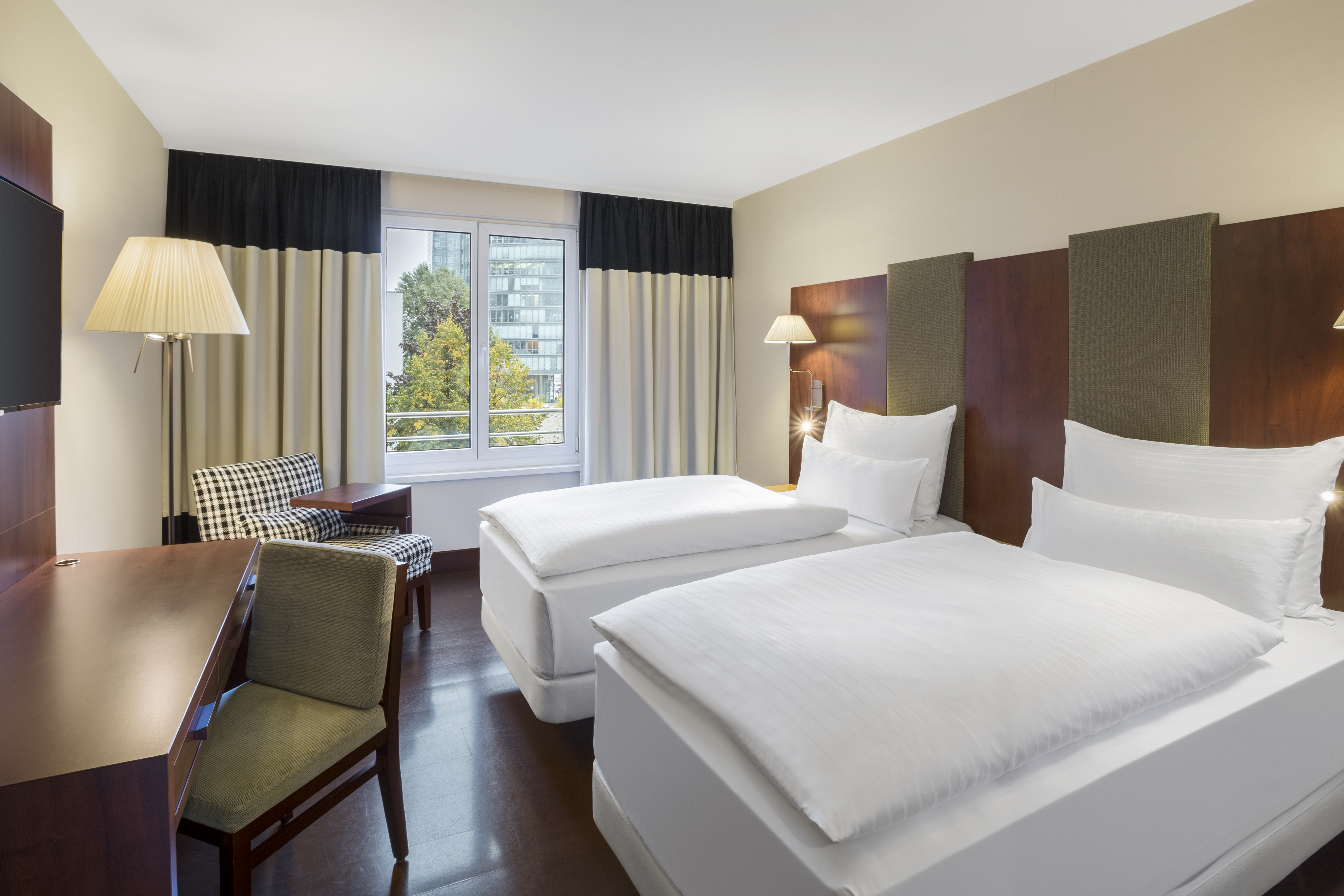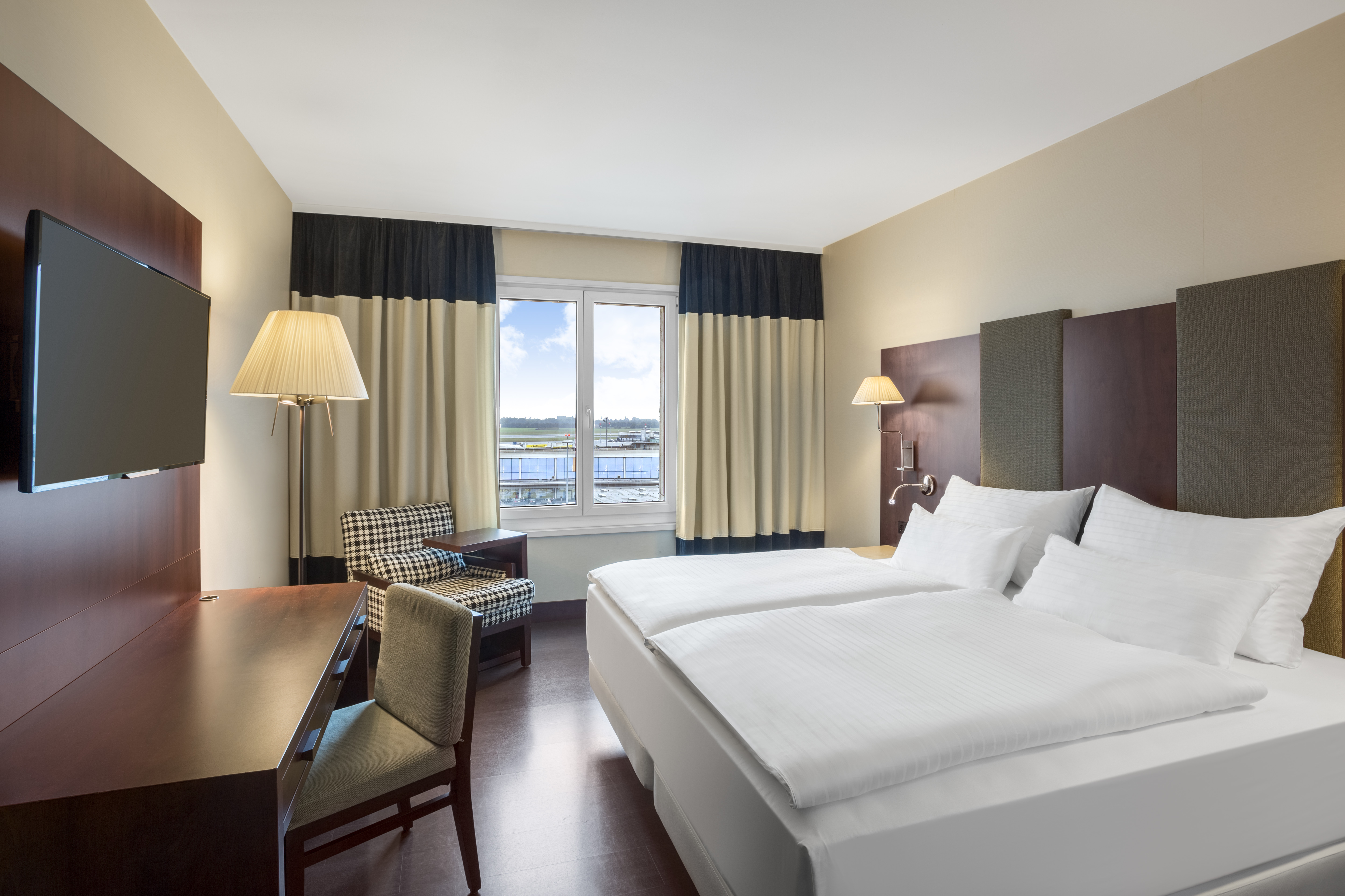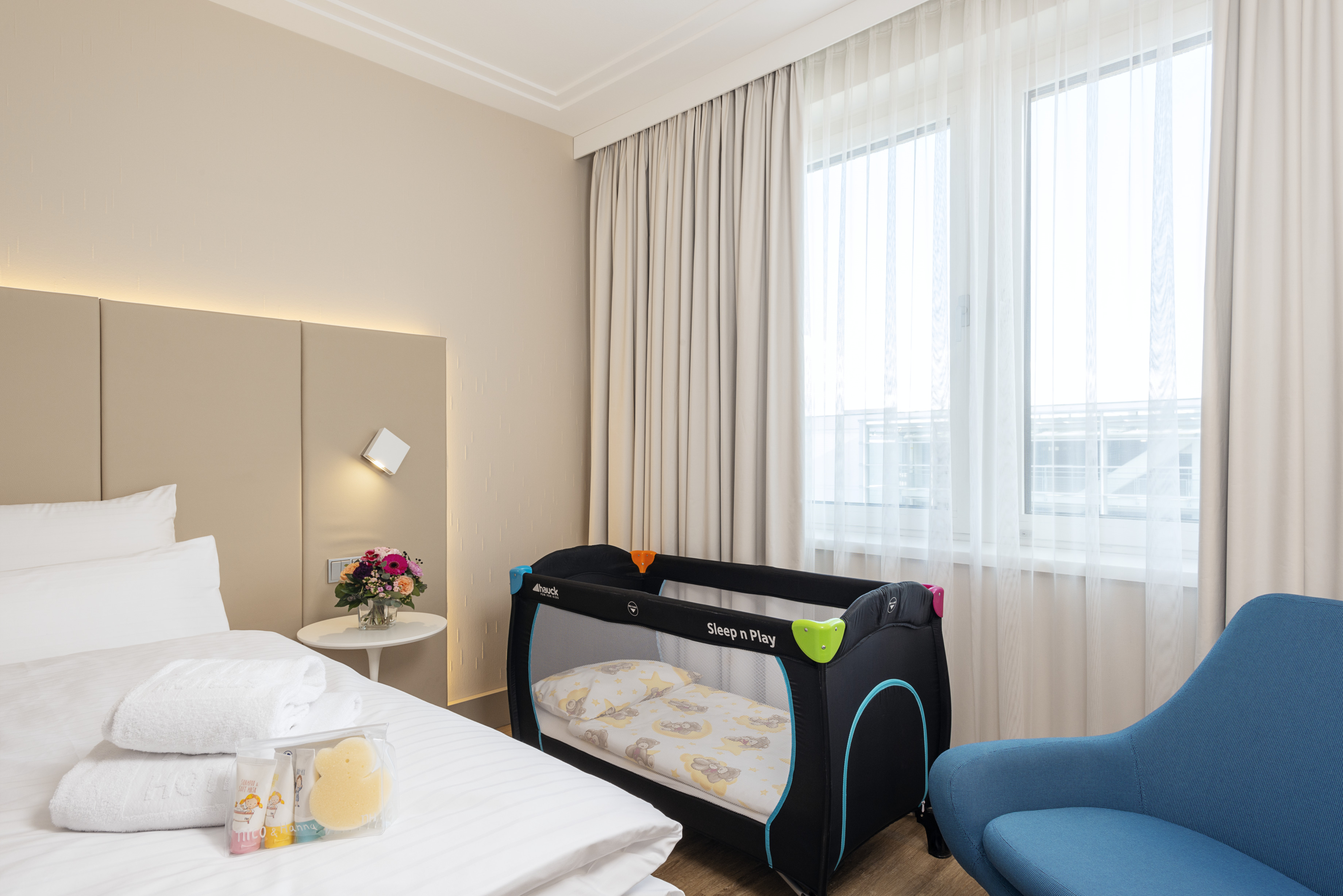 The NH Vienna Airport Conference Center hotel, previously known as NH Wien Airport, is favorably located across from the arrivals hall of Vienna International Airport. As such, there are numerable transportation options close by, including a train station and bus and CAT stations. The Flugenhafen Wien is within walking distance and the hotel is approximately 16 minutes from the Historic Center of Vienna. Nearby shopping at Shopping City Süd and Naschmarkt are easily accessible via local transport. Our 499 soundproofed guest rooms have free Wi-Fi, satellite TV, and a minibar. Our larger upgraded rooms have additional features including connecting rooms, bathrobes, and Nespresso machines. Each morning guests are treated to a breakfast buffet and made-to-order hot dishes are available upon request. The in-hotel Restaurant Mundo offers national and international cuisine for lunch or dinner, including the traditional Wiener Schnitzel. An additional buffet restaurant offers more extensive self-serve dishes. On the ground floor, guests can grab a quick cocktail or unwind a while at The Bar which offers light meals along with a large variety of beverages. Our 21 meeting rooms vary in size, and can hold up to 500 people.