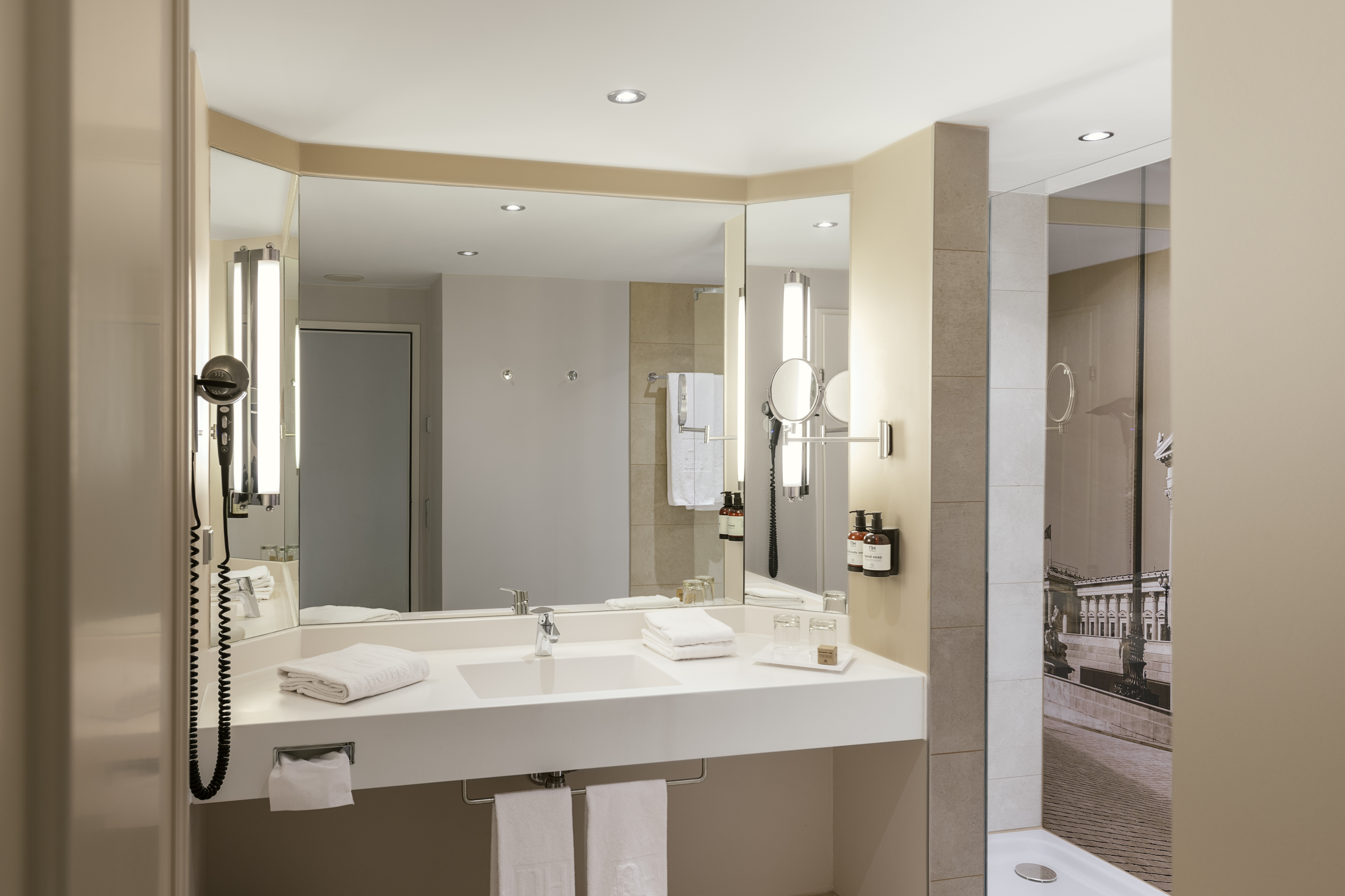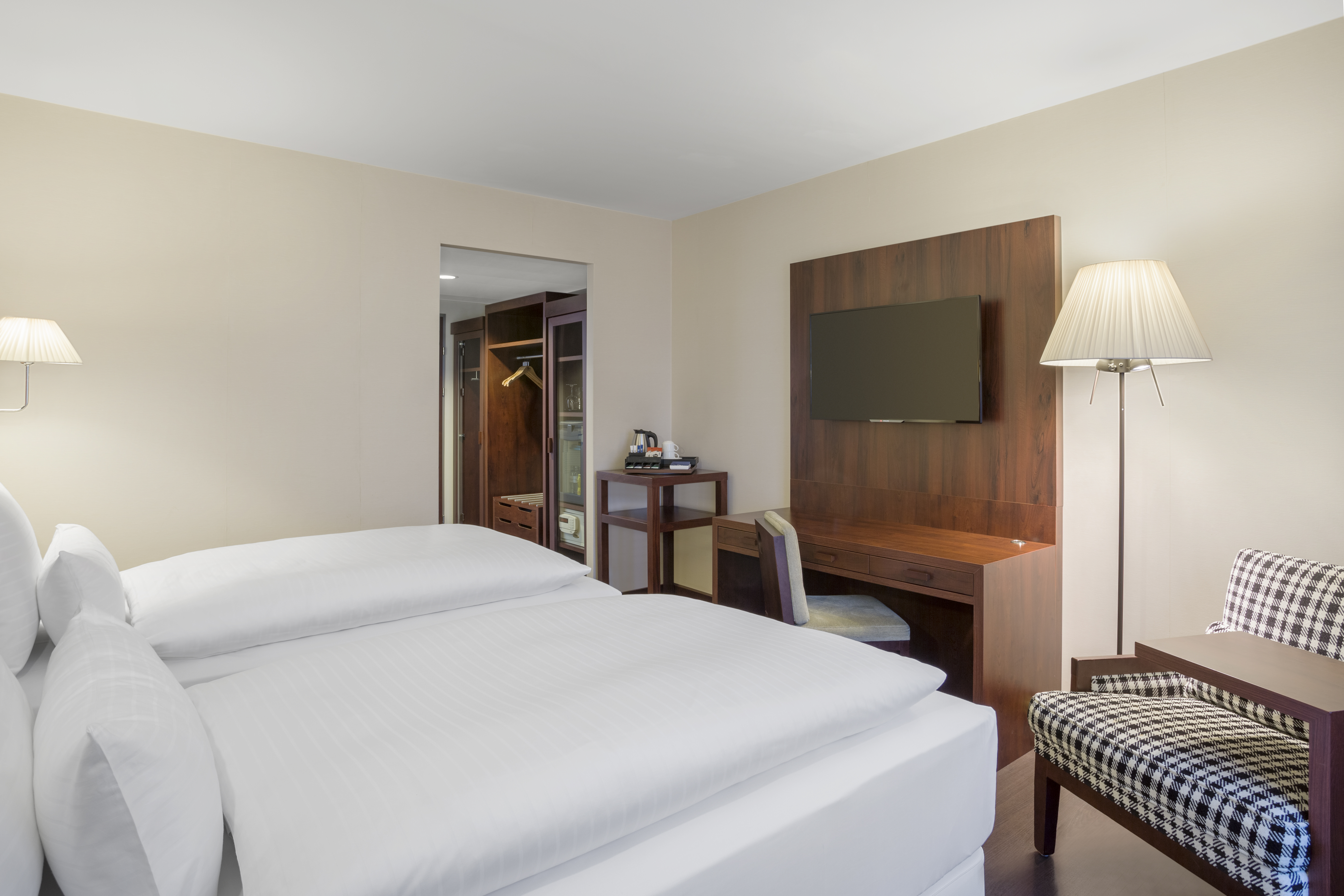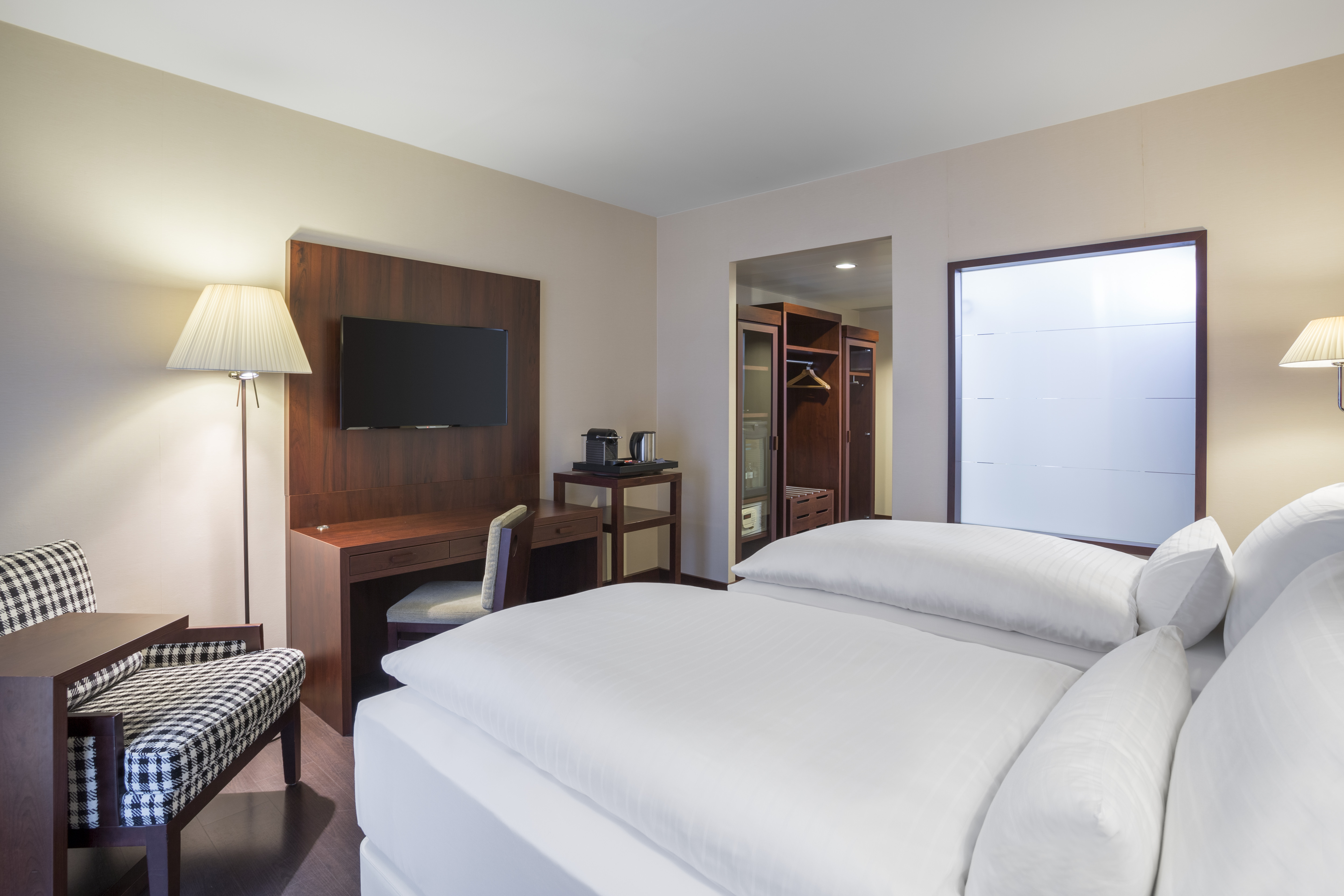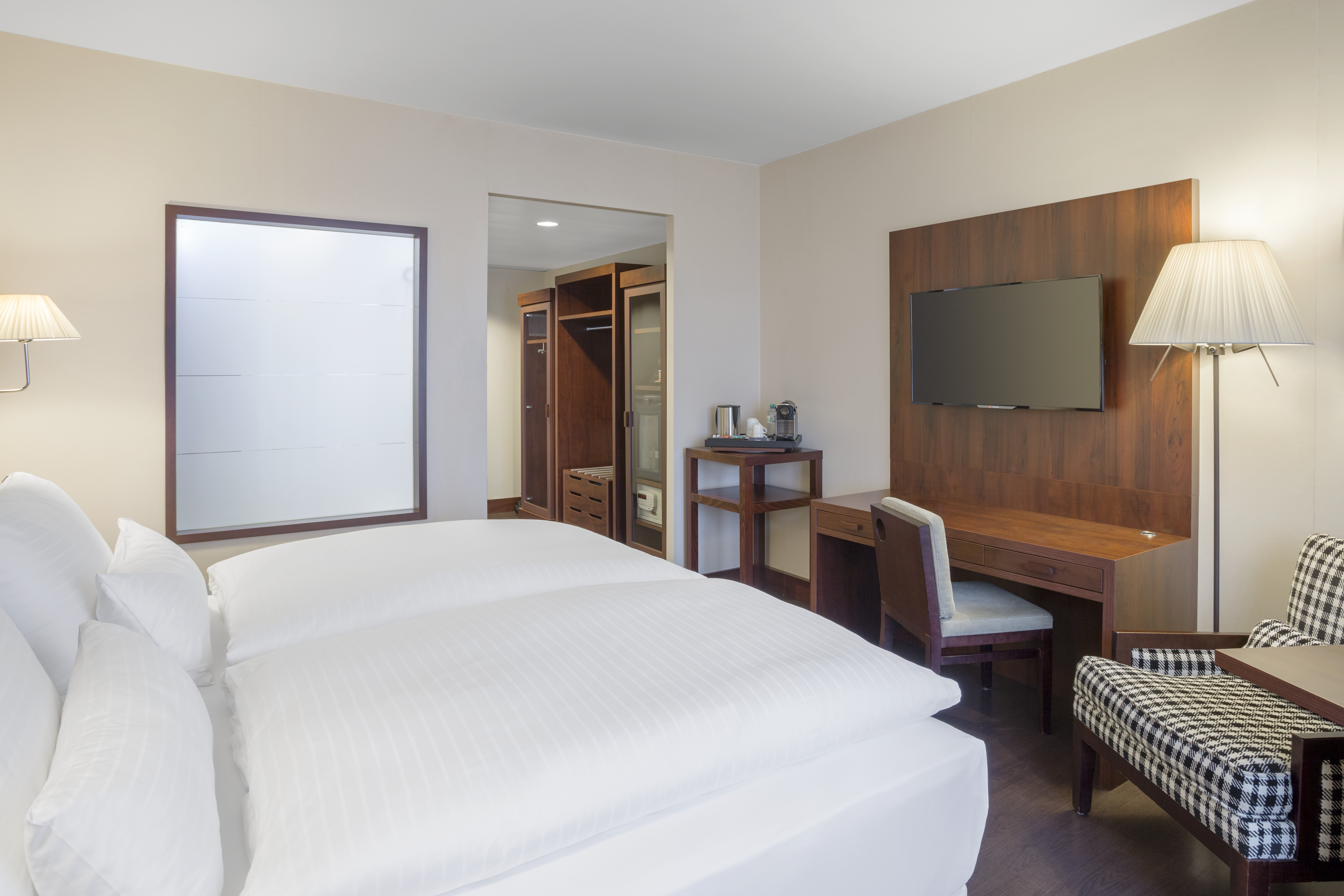 The NH Vienna Airport Conference Center hotel, previously known as NH Wien Airport, is favorably located across from the arrivals hall of Vienna International Airport. As such, there are numerable transportation options close by, including a train station and bus and CAT stations. The Flugenhafen Wien is within walking distance and the hotel is approximately 16 minutes from the Historic Center of Vienna. Nearby shopping at Shopping City Süd and Naschmarkt are easily accessible via local transport. Our 499 soundproofed guest rooms have free Wi-Fi, satellite TV, and a minibar. Our larger upgraded rooms have additional features including connecting rooms, bathrobes, and Nespresso machines. Each morning guests are treated to a breakfast buffet and made-to-order hot dishes are available upon request. The in-hotel Restaurant Mundo offers national and international cuisine for lunch or dinner, including the traditional Wiener Schnitzel. An additional buffet restaurant offers more extensive self-serve dishes. On the ground floor, guests can grab a quick cocktail or unwind a while at The Bar which offers light meals along with a large variety of beverages. Our 21 meeting rooms vary in size, and can hold up to 500 people.