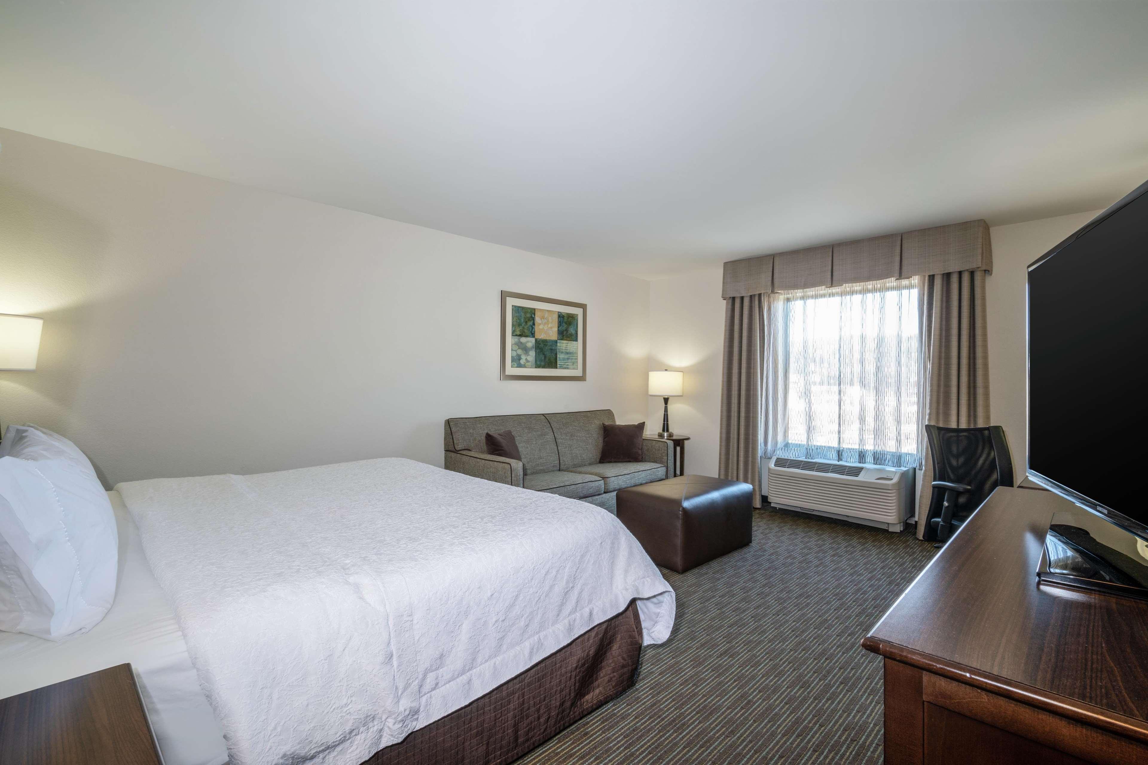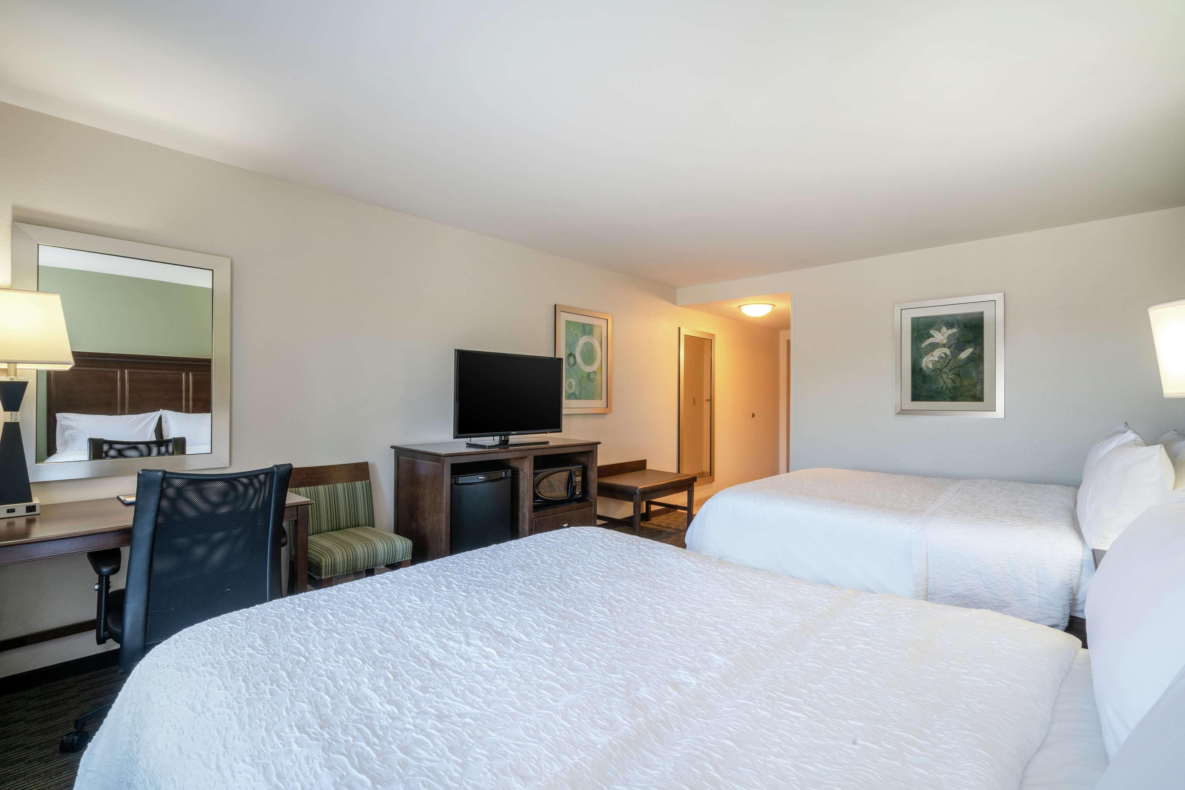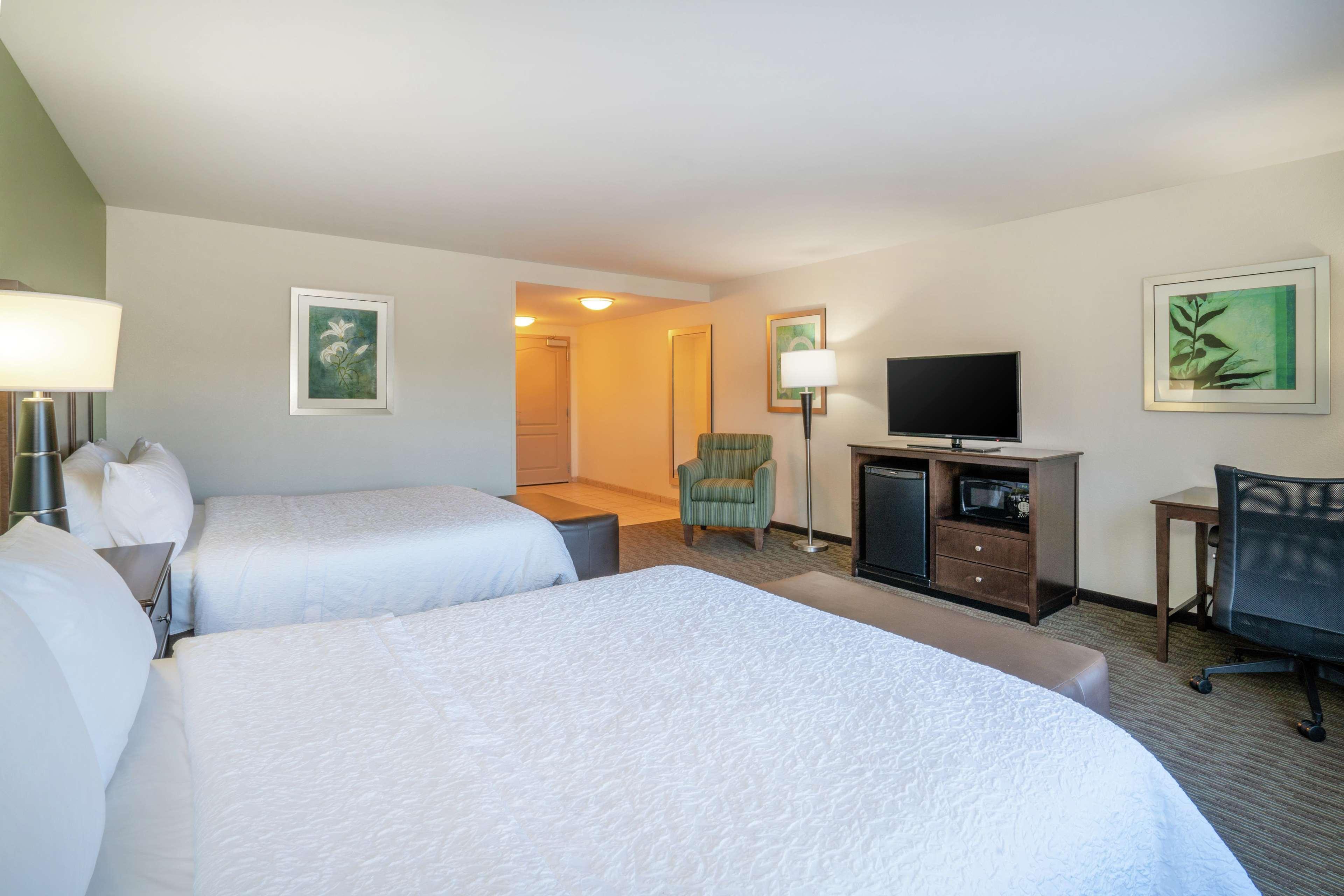 Set in downtown Huntington - home of Marshall University and the Thundering Herd - the friendly and modern Hampton Inn Huntington University Area hotel boasts a convenient location just off I-64 and is close to the university's campus, popular scenic areas and parks and the local restaurants, shops and businesses of downtown Huntington. Feel at home in your cozy and comfortable guest room where you can stay connected with free WiFi at the spacious work desk, heat up a snack in your in-room microwave or watch a movie on the LCD TV as you relax on the clean and fresh Hampton bed. Start your day right with Hampton's free hot breakfast, offering tempting waffles and oatmeal, or if you're in a rush, just grab a Hampton On the Run Breakfast Bag, available free, Monday through Friday. Host an event for up to 40 people in our flexible conference room and stay connected with the free business center, offering a range of useful services and amenities. Enjoy an invigorating morning workout in the free Jumpstart fitness center or relax with a swim in the sparkling indoor pool. There's always a friendly face and free tea and coffee available in the welcoming lobby, should you need some advice on what to see and do while you're in town. Friendly service, clean rooms, comfortable surroundings, every time. If you're not satisfied, we don't expect you to pay. That's our commitment and your guarantee. That's 100% Hampton.