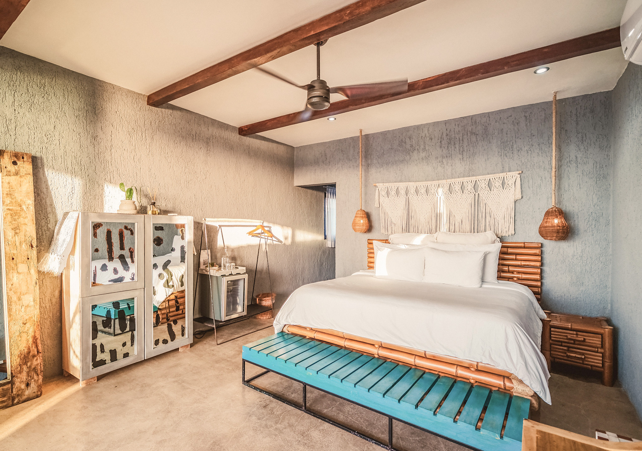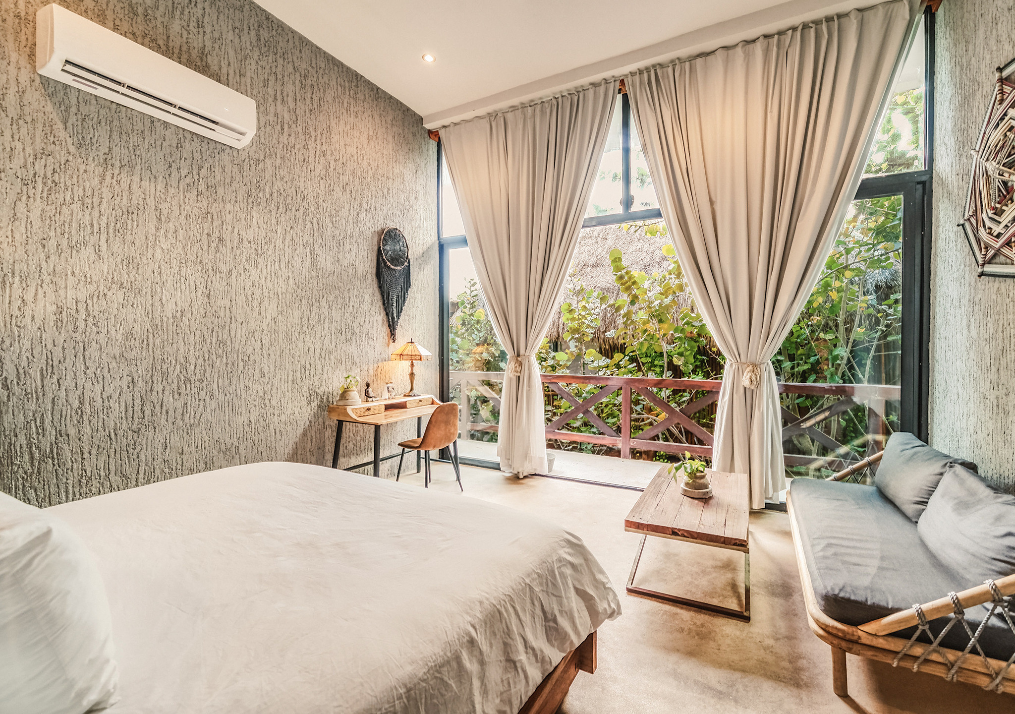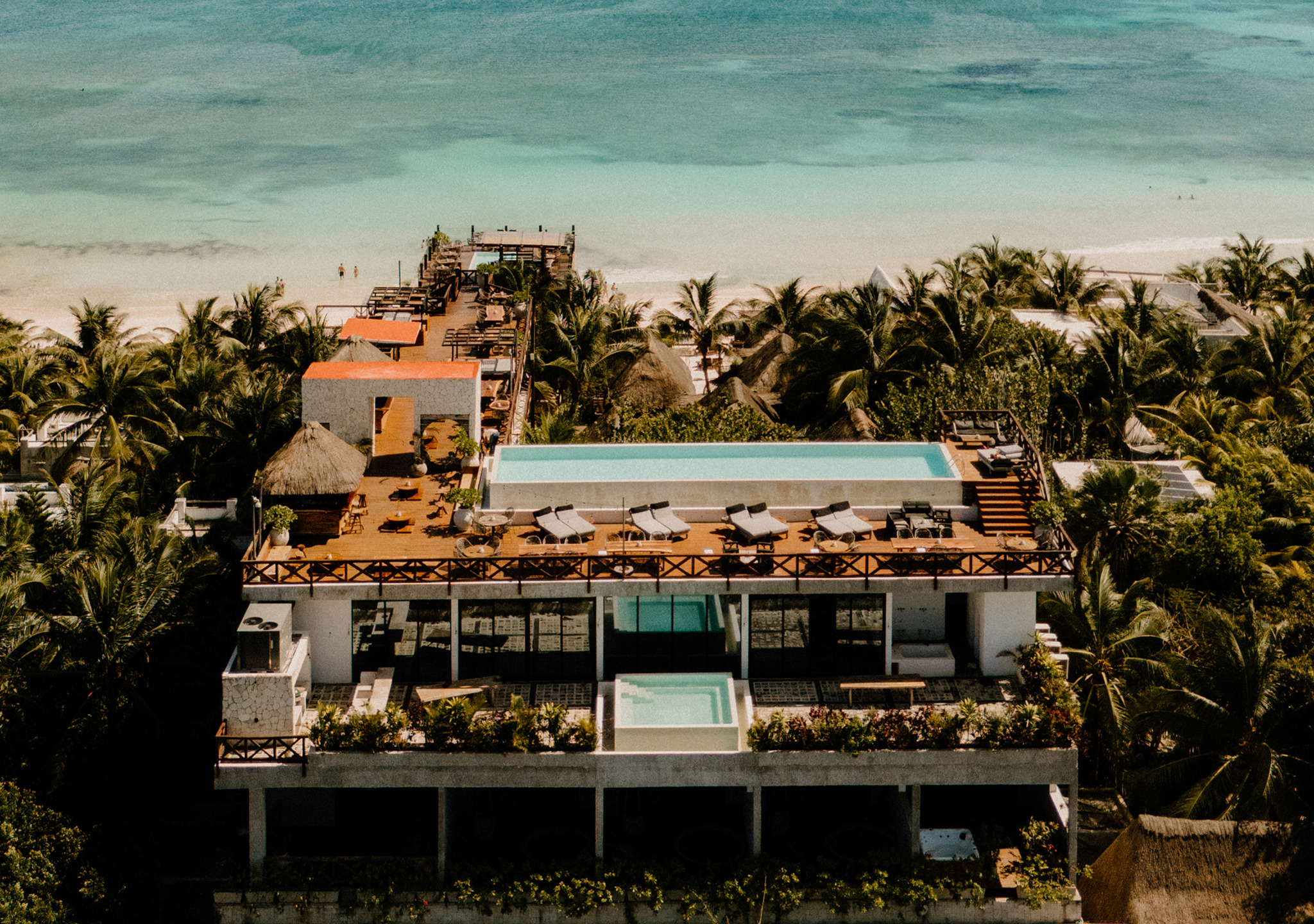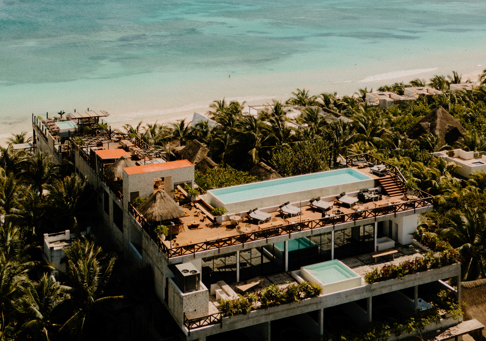 Hotelito Azul is an eco-chic boutique hotel, located in the best area on the beach of Tulum; where luxury and caribbean coincide, the vibrations are perfectly fused with 5-star comfort, with higher quality design finishes, rooms with incredible views, high-speed Wi-Fi, morning coffee at the door of the room and Complimentary breakfast in the delicious restaurant Ojo De Agua. IMPORTANT: A service fee of 7.5% from the total amount will be collected at check in time.