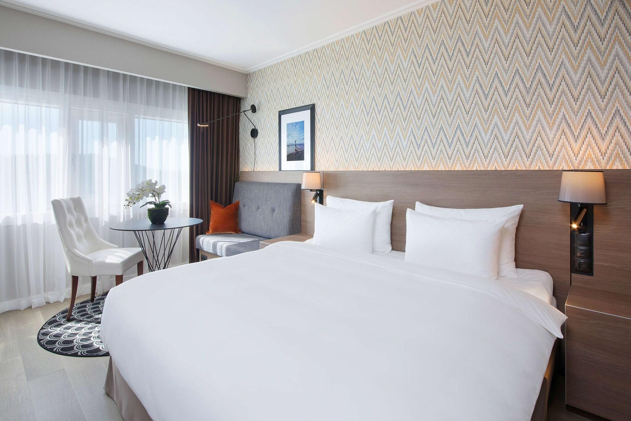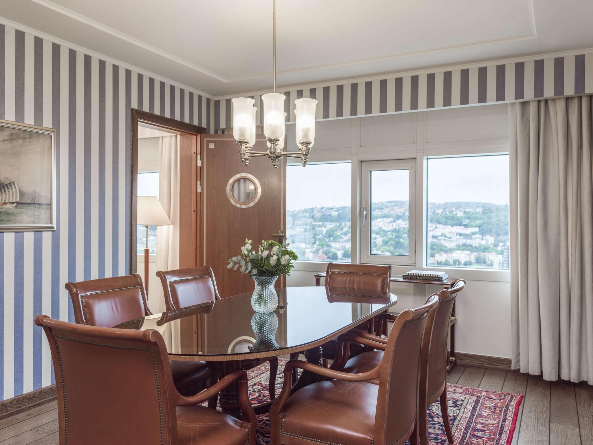 The Radisson Blu Plaza Hotel, Oslo, offers a prime central location just a minute's walk from Oslo Spektrum and ten minutes from the Oslo Opera House. This hotel provides 678 guestrooms with minibars, flat-screen televisions, and complimentary Wi-Fi. Private bathrooms include shower/tub combinations, complimentary toiletries, and hair dryers. Enjoy convenient amenities such as concierge services, bike parking, and on-site dining at The Top Restaurant. Unwind at one of the two bars/lounges or start your day with a cooked-to-order breakfast (fee applies). The hotel also boasts extensive meeting and conference facilities, totaling 19, 375 square feet. Self-parking is available (subject to charges).