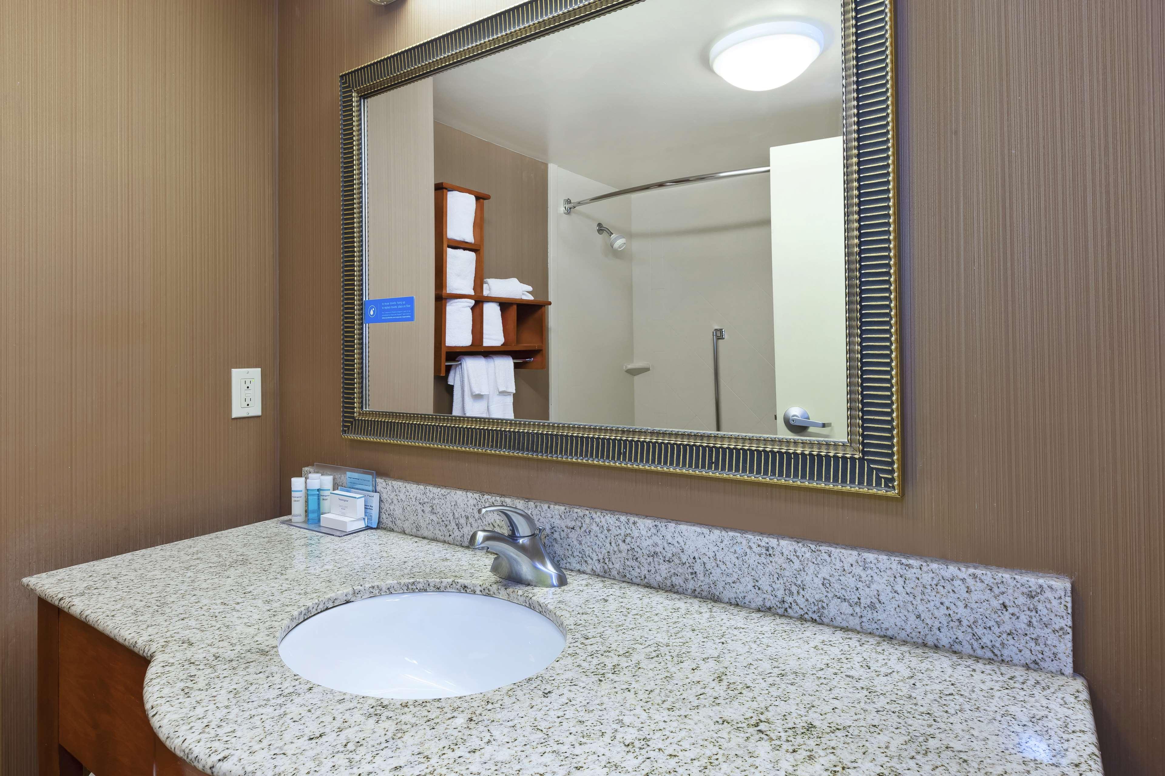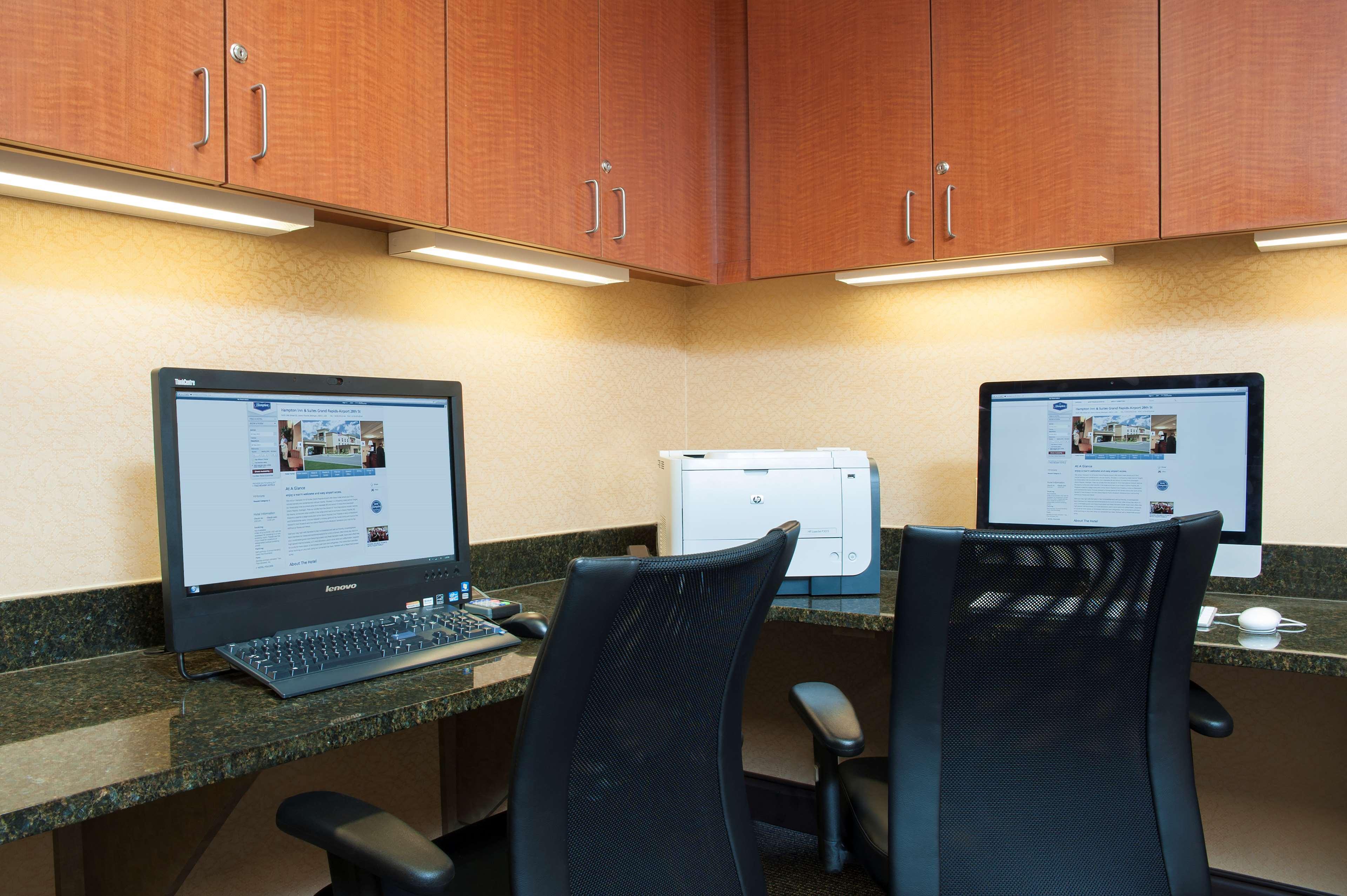 The following services and amenities are available, but with **reduced service**: Business Center, Breakfast.The following services and amenities are currently **not available**: Airport Shuttle, Fitness Center, Pool, Spa.The Hampton Inn and Suites Grand Rapids - Airport 28th St hotel is located just a short distance from the Gerald R. Ford International Airport and many of the attractions that Grand Rapids, Michigan has to offer. This all new facility offers a tranquil lakeside setting while being just steps away from mouth watering restaurants and amazing shopping. Also located nearby are some of west Michigan's largest companies. Here at the Hampton Inn and Suites Grand Rapids - Airport 28th St we offer our complimentary On the House hot breakfast, indoor pool and whirlpool, fitness room and business center, as well as complimentary high-speed wireless Internet access throughout the hotel. Whether traveling on business or with family, we have a suite sure to please. On your next visit to the Grand Rapids, MI area, treat yourself to all the amenities you can expect from the Hampton Inn and Suites Grand Rapids - Airport 28th Street hotel. We love having you here at the Hampton Inn and Suites Grand Rapids - Airport 28th Street hotel.