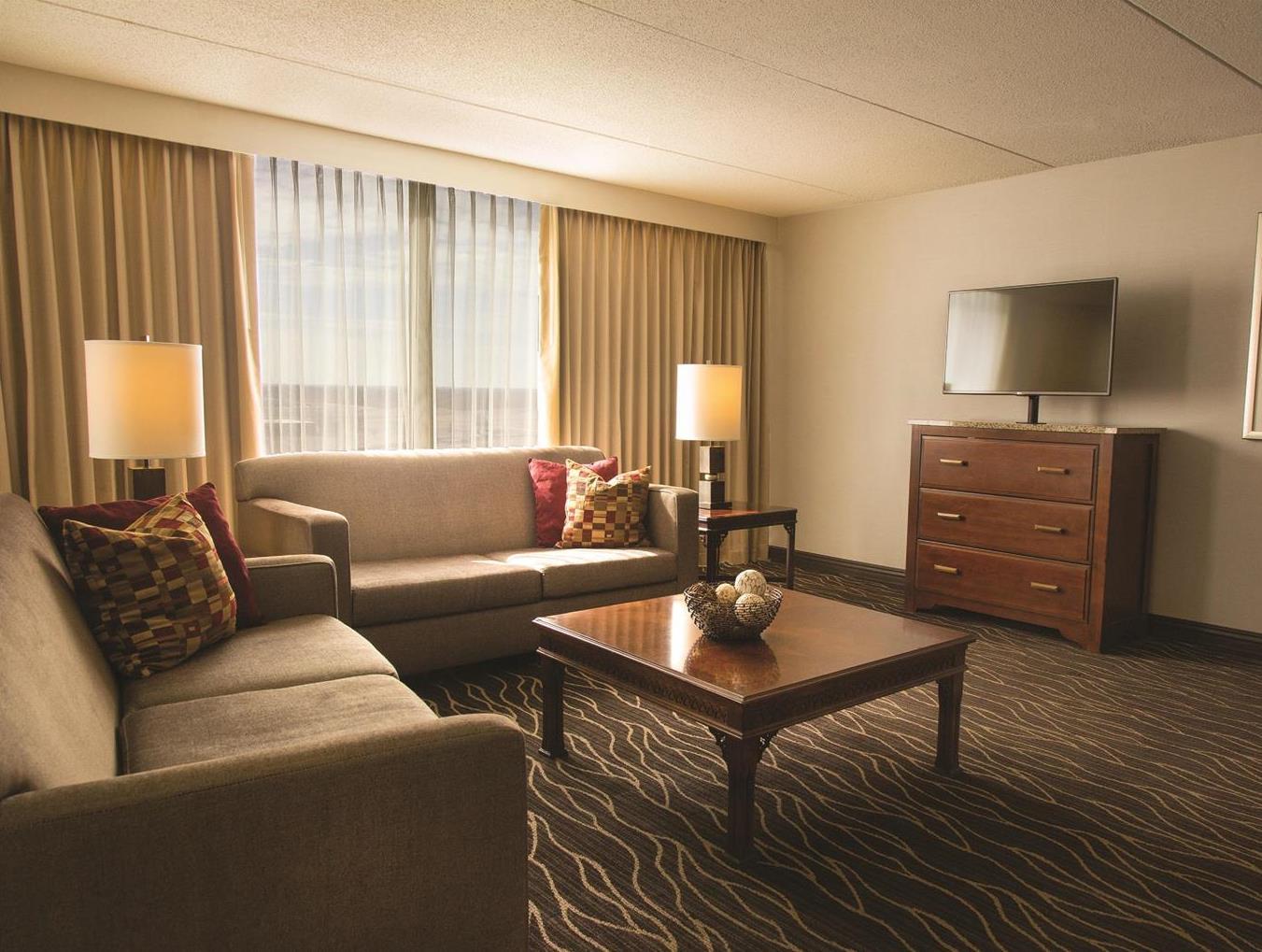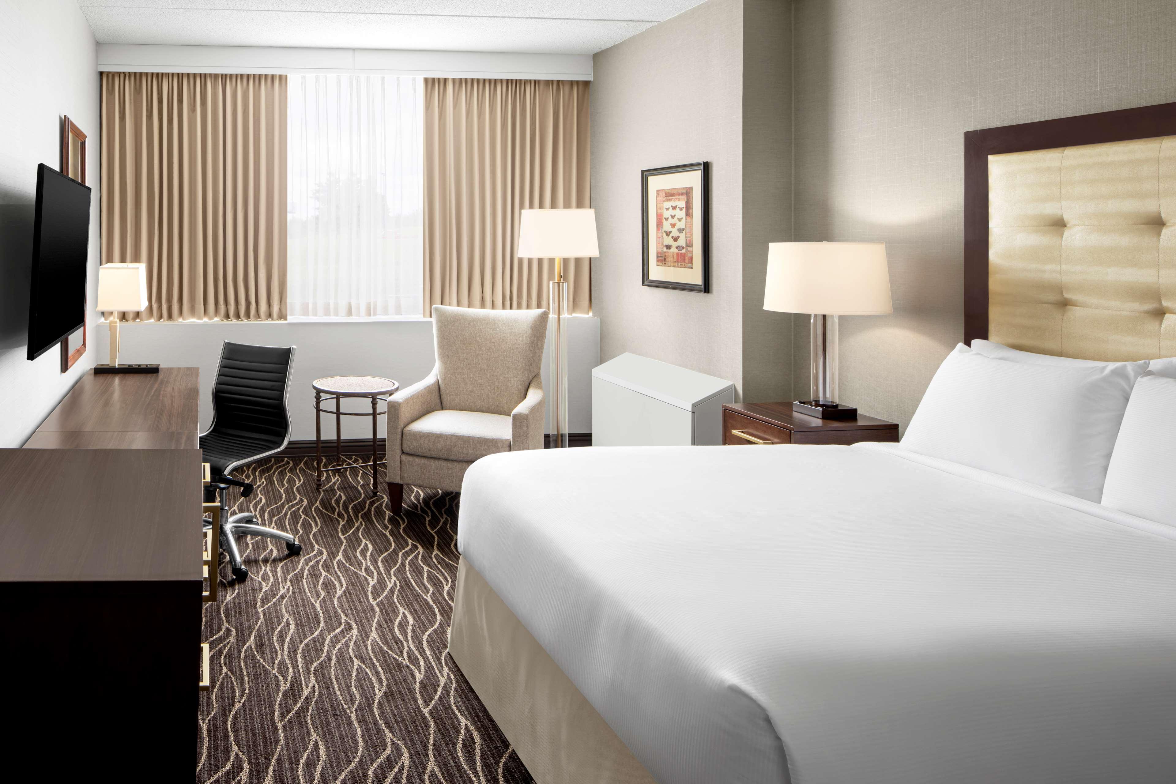 The following services and amenities are available, but with reduced service: Concierge, Fitness Center, Breakfast, On-site Restaurant(s).The following services and amenities are currently not available: Room Service.The Hilton Kansas City Airport hotel is located less than three miles south of Kansas City International Airport (MCI), and less than 15 miles from downtown Kansas City, Missouri. The hotel offers a perfect retreat for the hectic business person or weekend getaway. The Hilton Kansas City Airport hotel offers up-to-the-minute amenities including wireless high-speed Internet access, in-room safes and flat screen televisions along with genuine Kansas City, Missouri charm and hospitality. Our proximity to Missouri Interstates 29, 35 and 435 provides convenient access to the entire Kansas City metro area. Plan the most successful meeting or social event in our flexible and spacious meeting rooms. Features Include: High-speed Internet access, Professional sales and catering team, 20 meeting rooms encompassing over 21,000 square feet of flexible meeting space all on one level - the most hotel meeting space in the Kansas City Airport area, Award-winning barbecue, famous Kansas City steaks, and other regional favorites served in our Cafe Weatherby restaurant, Complimentary 24-hour airport shuttle service, Complimentary parking that can accommodate oversized vehicles and buses, 24-hour limited room service, Complimentary wireless high-speed Internet available in the public areas, Lobby Bar with large flat panel television, 24-hour self-service business center, Fully equipped 1,500 square foot fitness center offering a full range of cardio equipment, Indoor heated swimming pool with the option to swim under a wall to an outdoor pool, Two outdoor tennis courts and a basketball court.