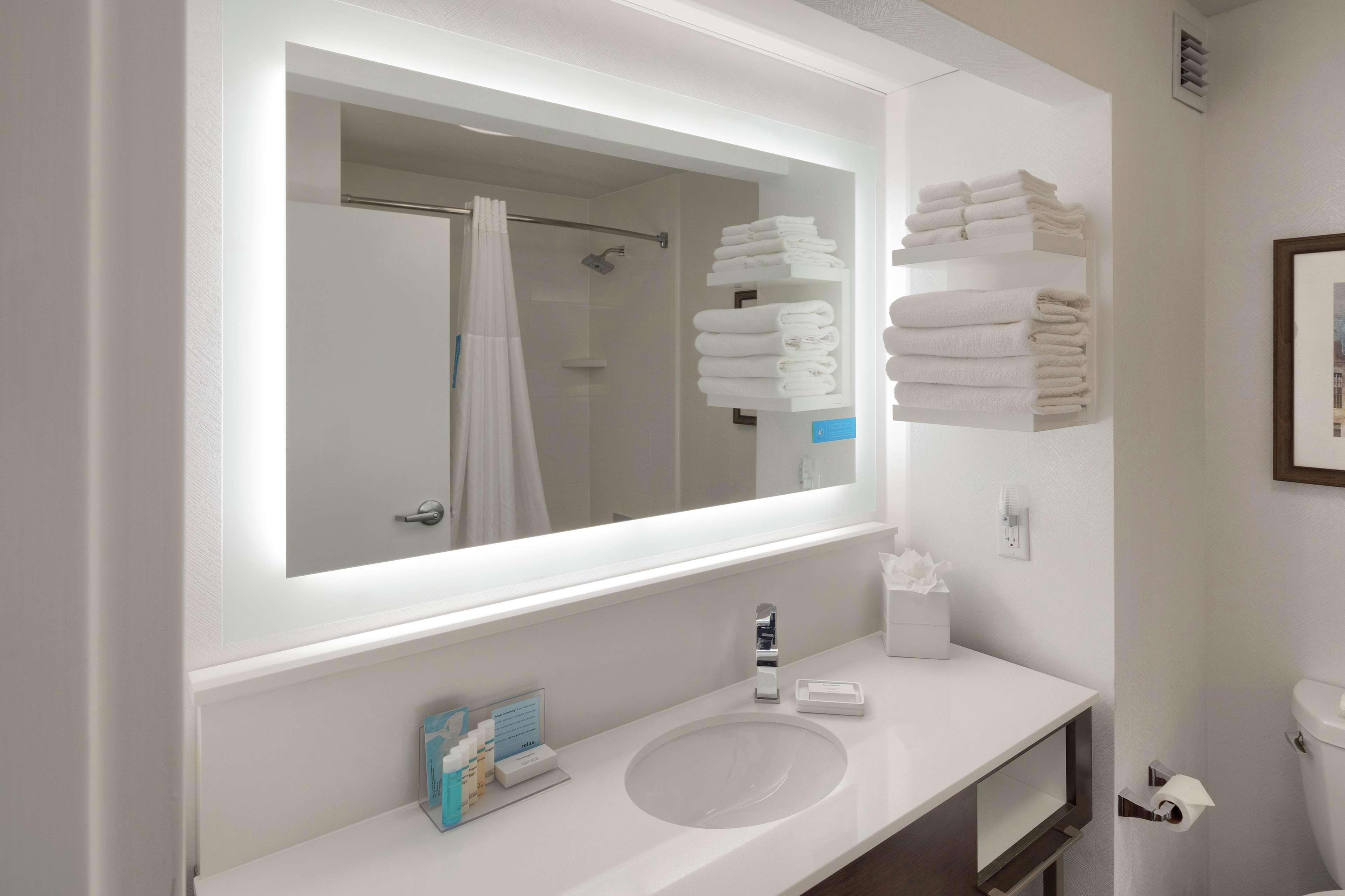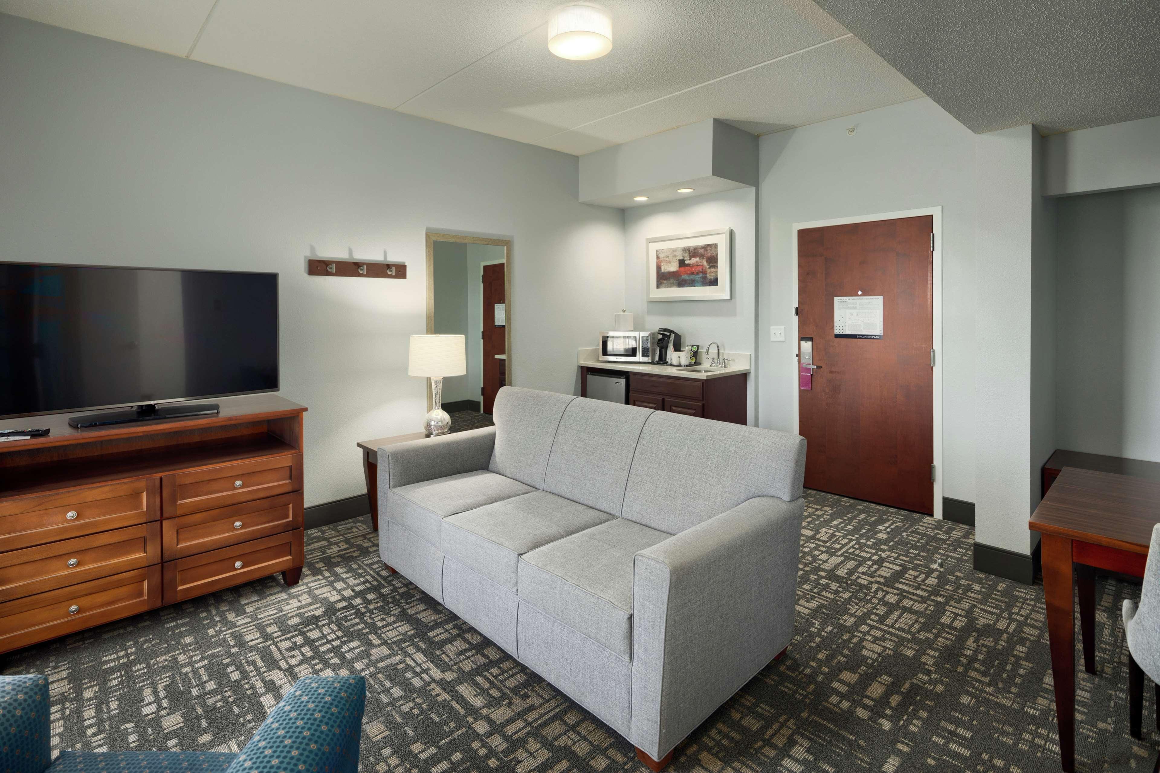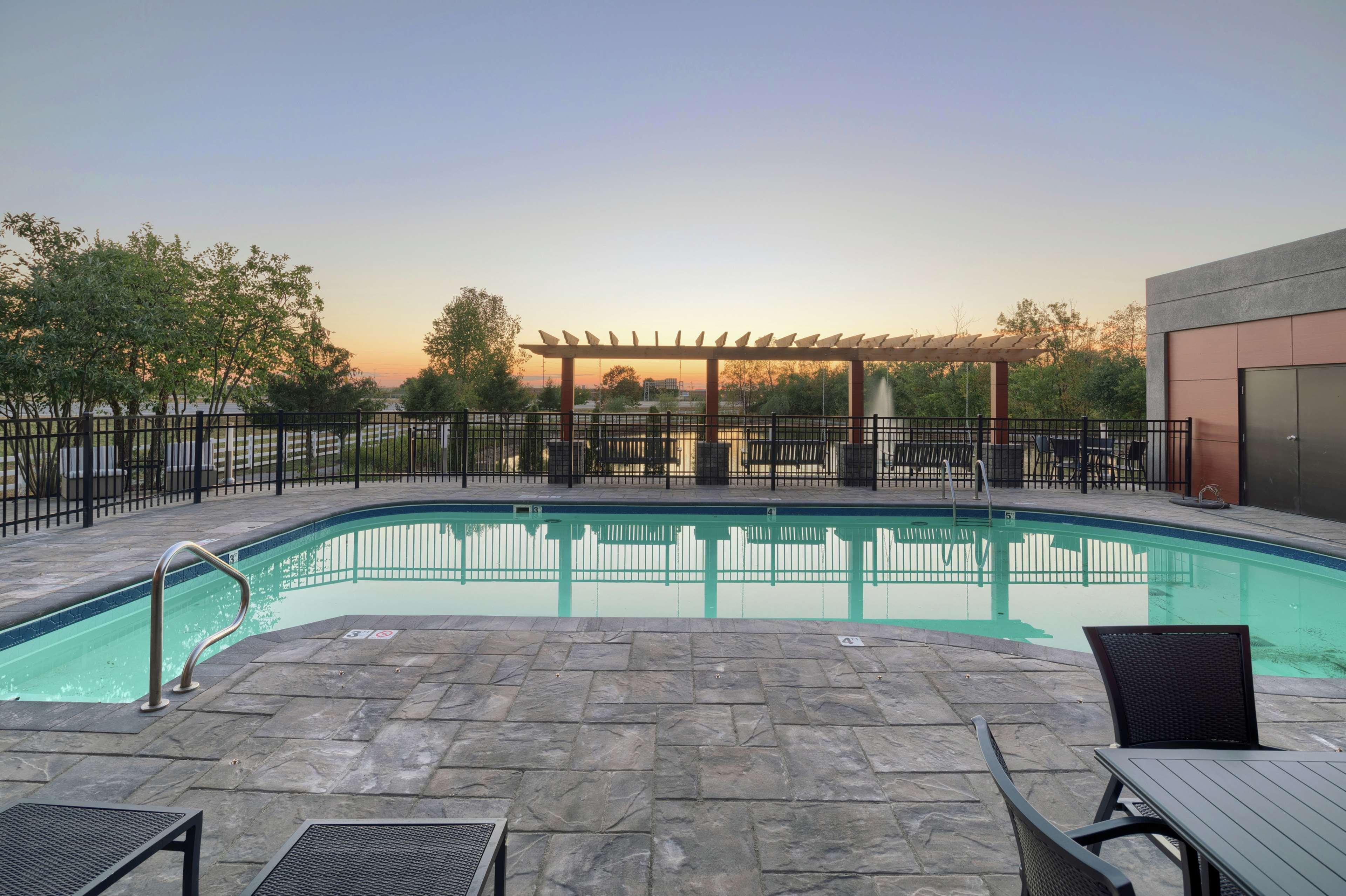 The Hampton Inn Louisville-Northeast hotel is located off Kentucky Interstate 265 (Exit 32) at Westport Rd. The hotel design features a traditional Georgian style and opens to a well-lit interior corridor. A variety of restaurants, shopping, and movie theatres are located within one mile of our hotel, in Louisville, Kentucky. Amenities of the Hampton Inn Louisville-Northeast hotel include our complimentary hot breakfast, running track, outdoor pool, exercise room, business center, fishing pond, and wireless internet access, available in the lobby. Each room of our hotel features a hair dryer, night light, coffeemaker, iron, ironing board, full length mirror, two-line phone with a data port, high-speed internet access, clock radio, electronic locks and 27'' remote-controlled cable TV with HBO. Connecting rooms, cribs, and refrigerators, laundry/valet services, a guest laundromat, meeting/banquet facilities and audio visual equipment are also available. We love having you here in Kentucky at the Hampton Inn Louisville-Northeast!