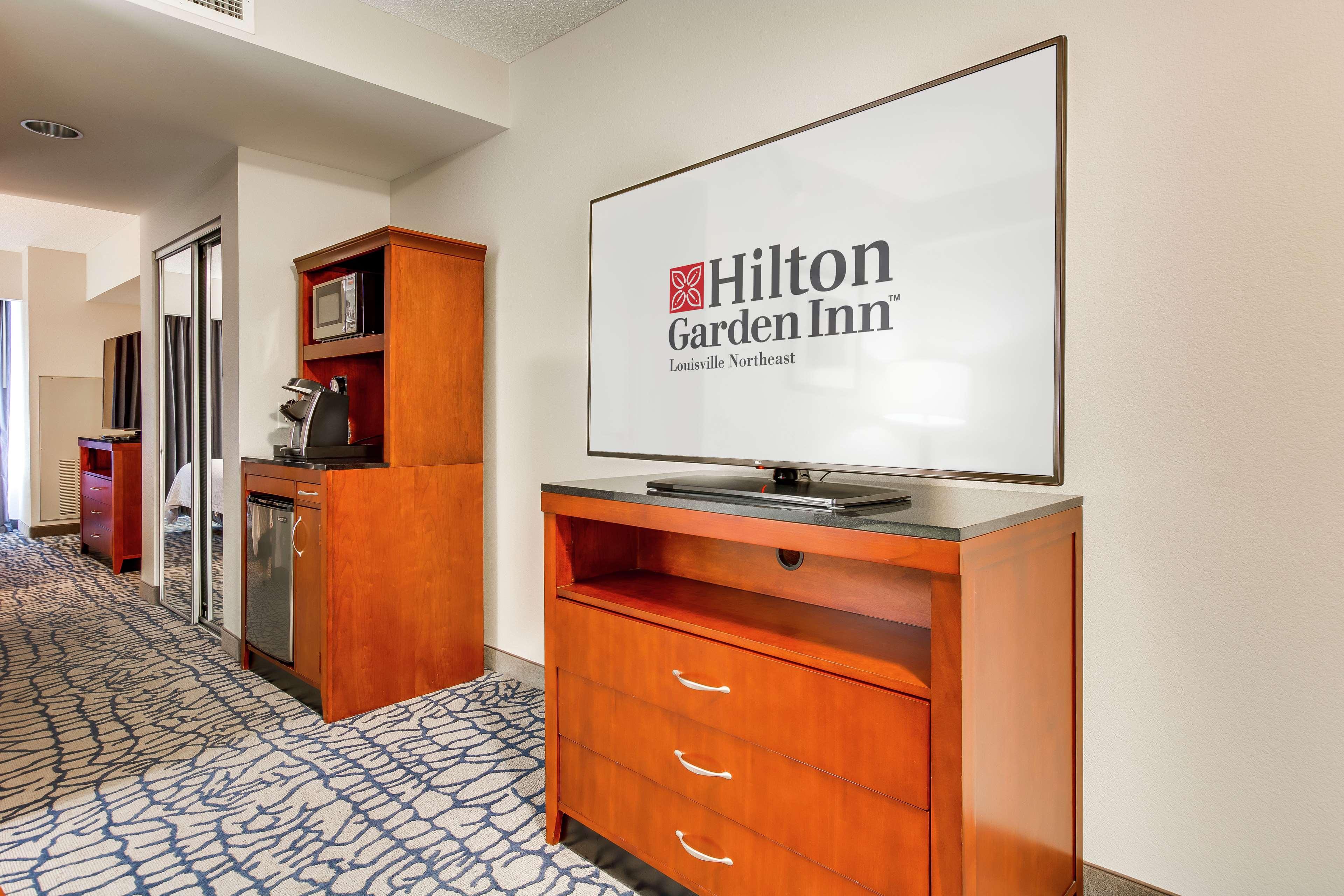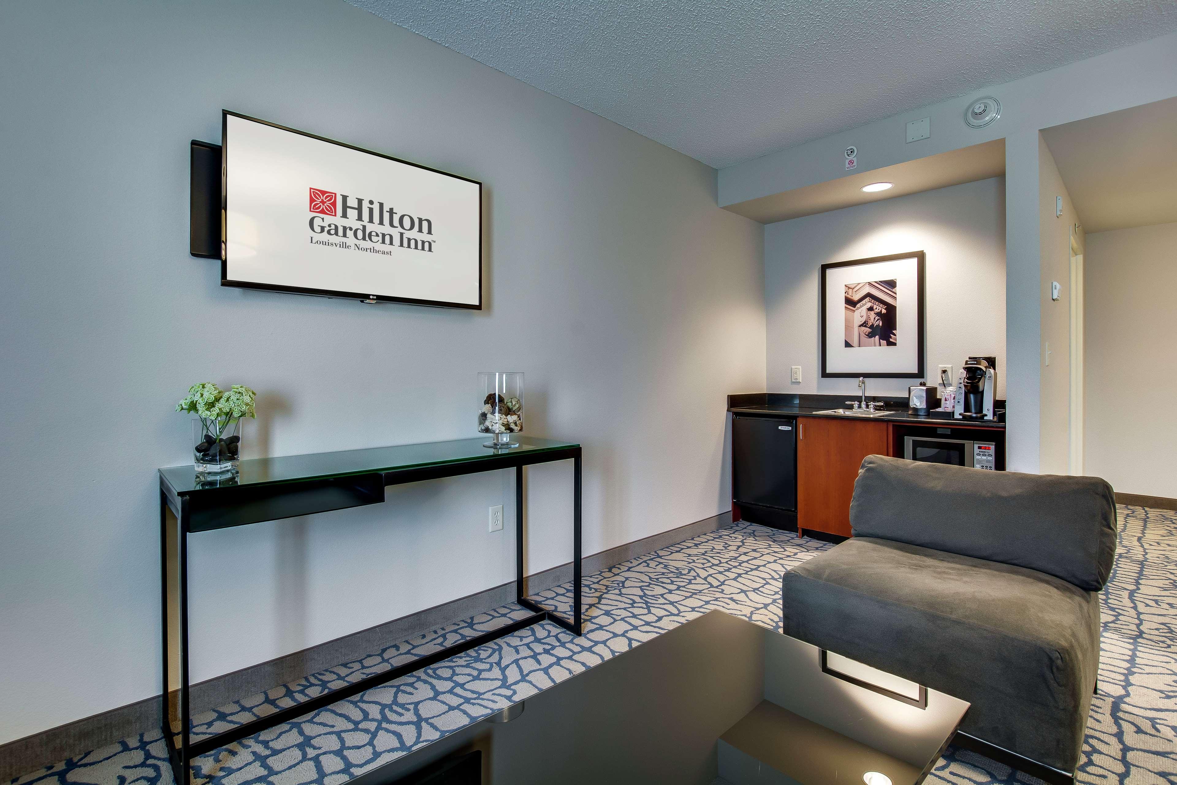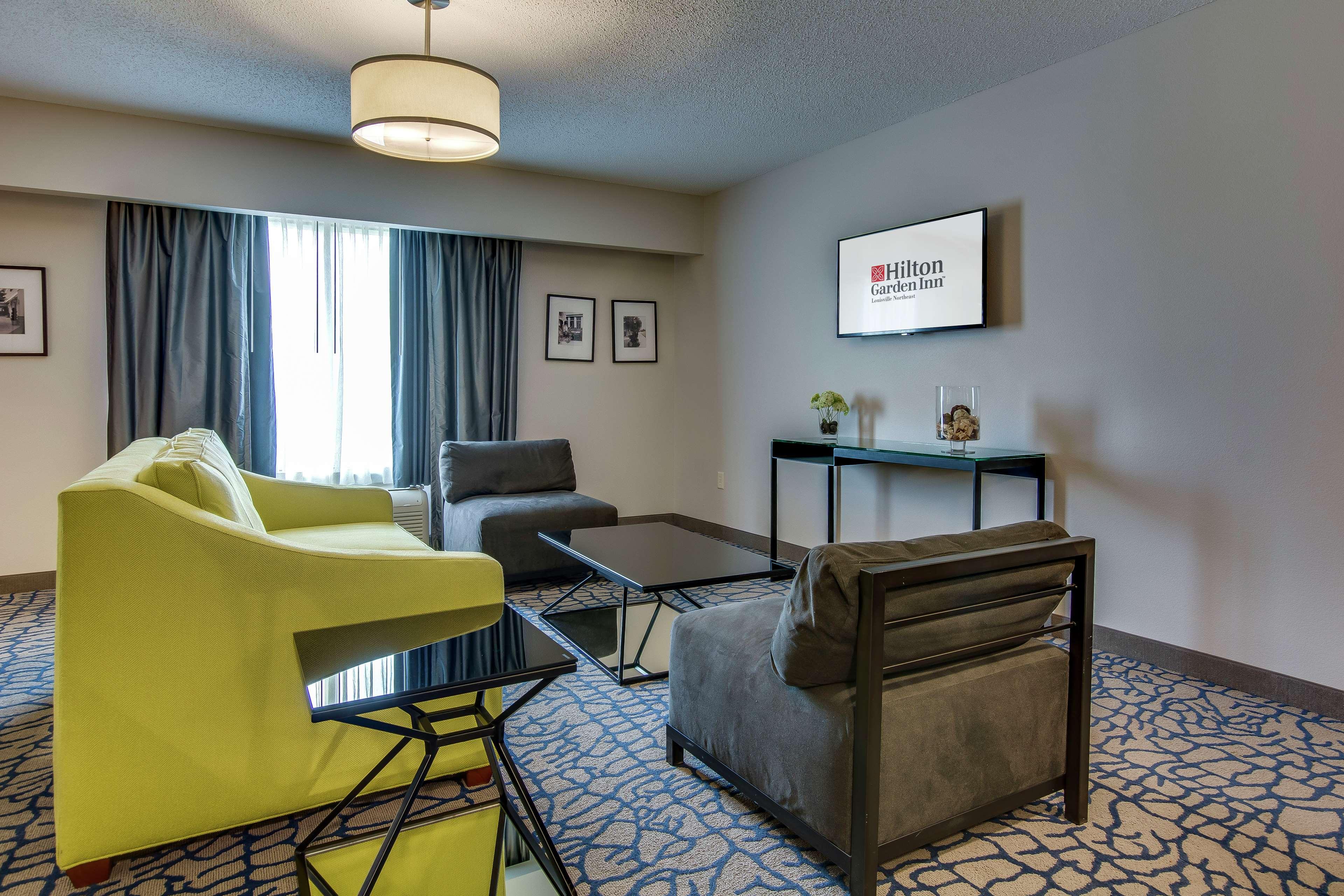 The following services and amenities are available, but with reduced service: Breakfast, Pool.The following services and amenities are currently not available: Airport Shuttle.Situated in northeastern Louisville, Kentucky, and adjacent to The Paddock Shops (formerly known as The Summit)- the Hilton Garden Inn Louisville Northeast hotel offers a luxurious accommodation ideally suited to both business and leisure travelers. Our stylish hotel is conveniently placed for guests to enjoy easy access to East End business districts and sporting activities, as well as numerous tourist attractions and entertainment. Dip into the best Kentucky has to offer when staying at our hotel in Louisville, and find the following attractions within easy driving distance: E. P. Tom Sawyer Park, Louisville Zoo, Louisville Science Center, The Paddock Shops, Waterfront Park, Louisville Slugger Museum. Business concerns are also easily taken care of when staying at our hotel. Discover local businesses and corporations such as: ADP, Anthem, Ford Truck Plant, Norton Brownsboro Hospital, UBS. For guests planning a business meeting or celebration, our Louisville hotel is also wonderfully equipped with ample meeting and event space, and provides a comprehensive range of amenities, such as: In-hotel business center, Audio/visual equipment rental, Hotel meeting space, High-speed Internet access in all hotel rooms, Express mail service. Retiring to our palatial guest rooms is a treat any traveler will enjoy. Discover our hotel's plush and practical furnishings and state-of-the-art amenities, such as: LCD Flat Panel TV with in-room movie channel and HBO, Microwave, mini refrigerator and coffee maker, Work desk with ergonomic Mirra chair, Hairdryer, iron and ironing board. Dining is a dream come true at our Louisville hotel, where guests will enjoy true Southern hospitality.