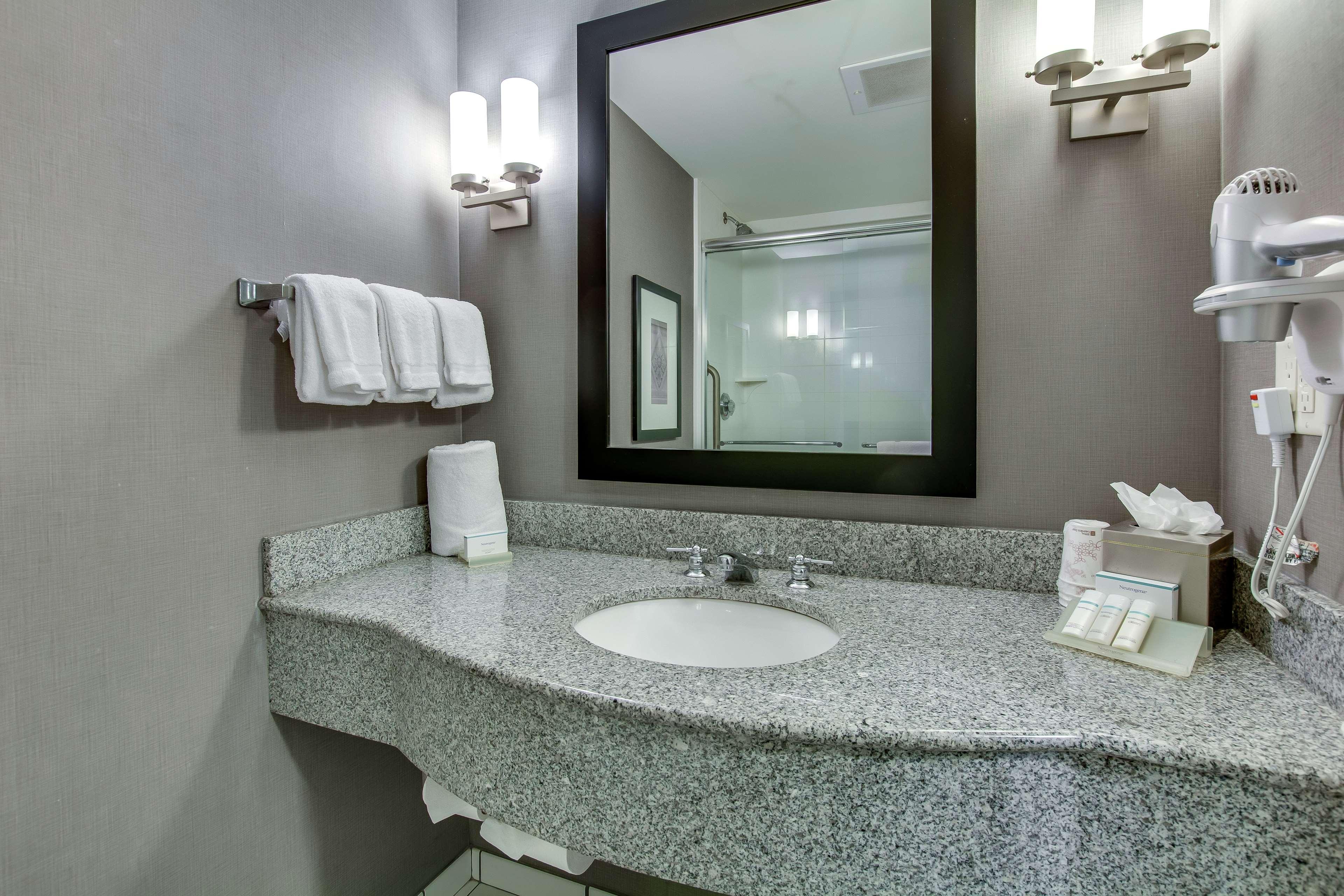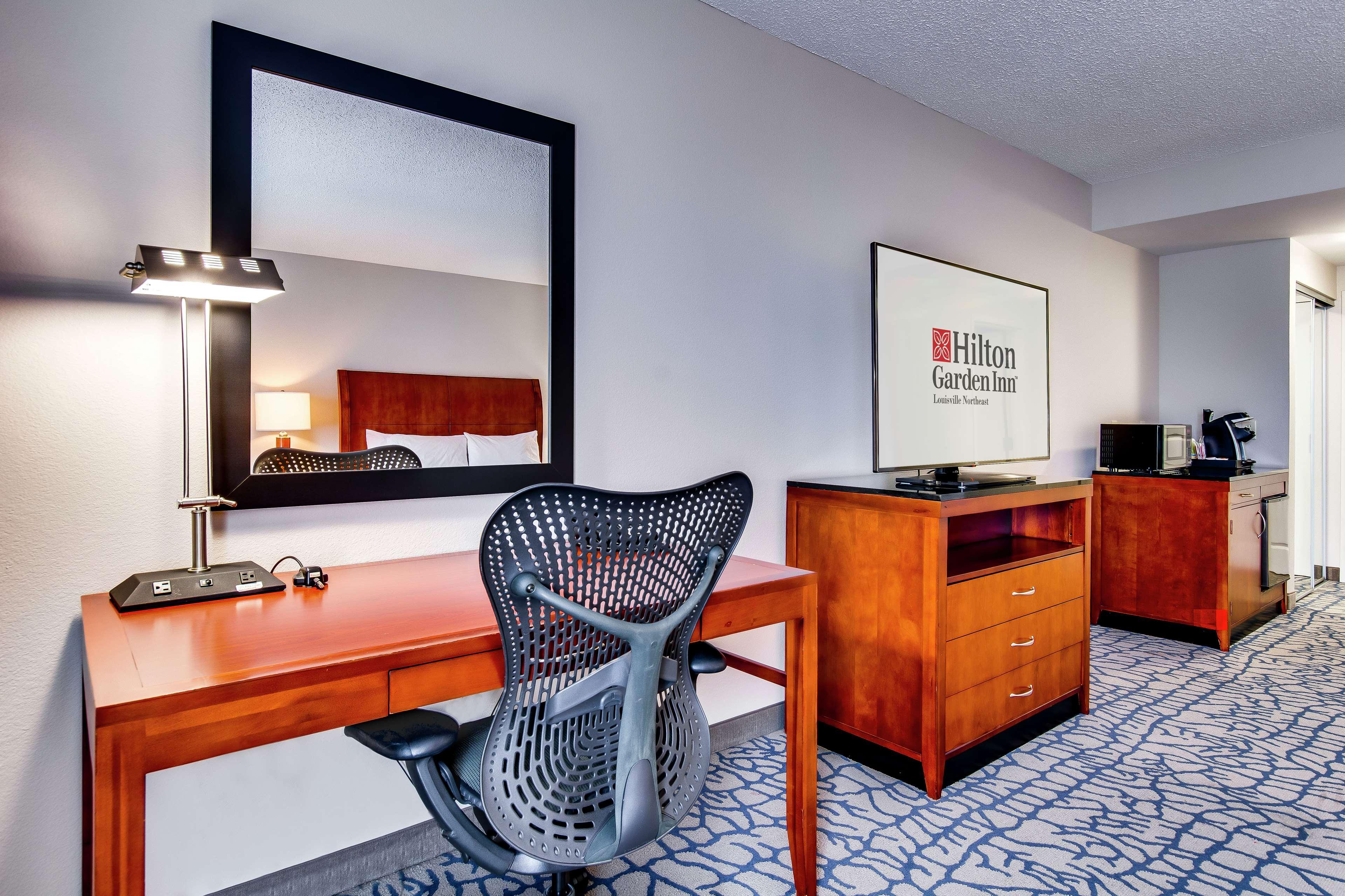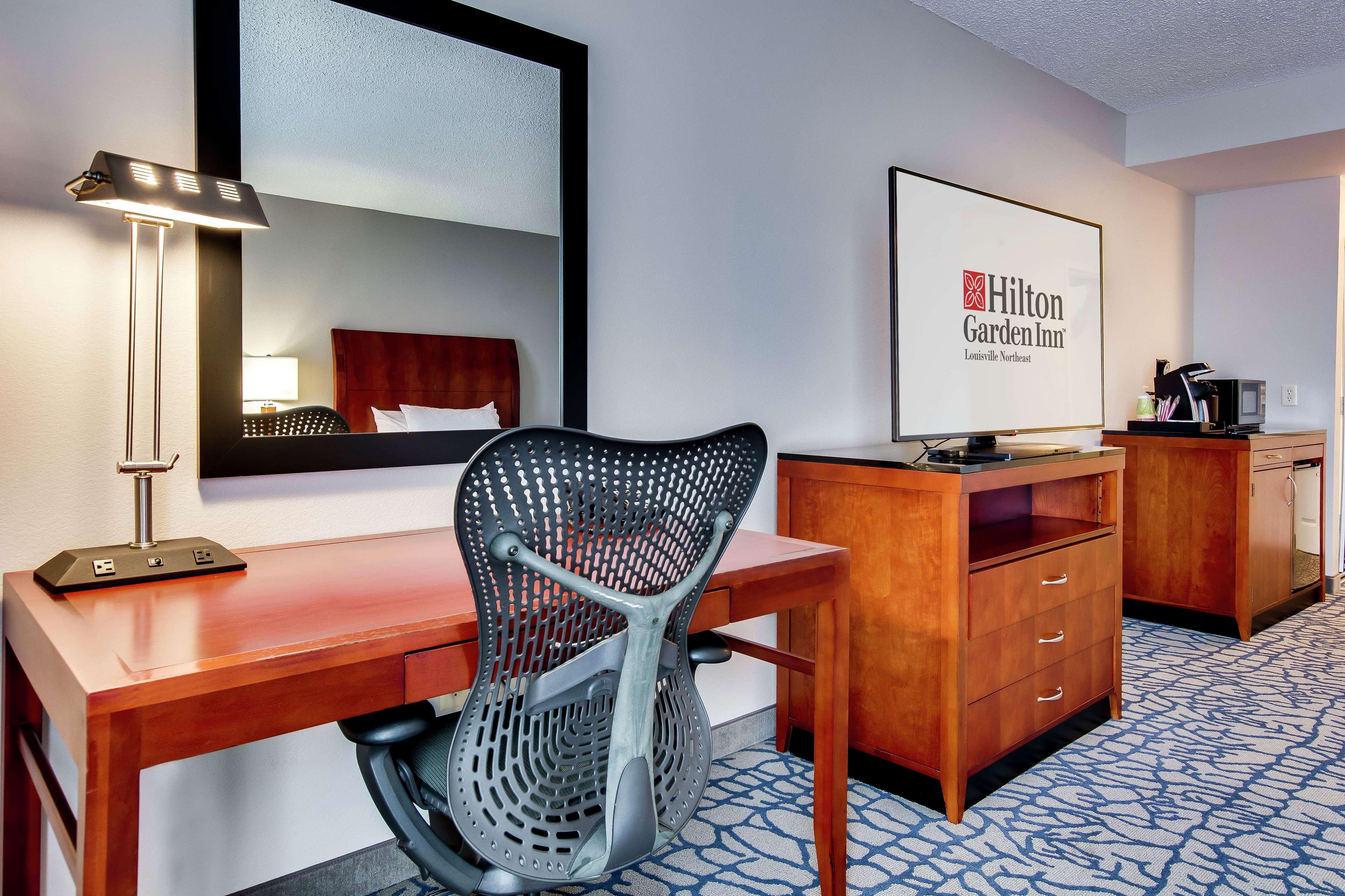 The following services and amenities are available, but with reduced service: Breakfast, Pool.The following services and amenities are currently not available: Airport Shuttle.Situated in northeastern Louisville, Kentucky, and adjacent to The Paddock Shops (formerly known as The Summit)- the Hilton Garden Inn Louisville Northeast hotel offers a luxurious accommodation ideally suited to both business and leisure travelers. Our stylish hotel is conveniently placed for guests to enjoy easy access to East End business districts and sporting activities, as well as numerous tourist attractions and entertainment. Dip into the best Kentucky has to offer when staying at our hotel in Louisville, and find the following attractions within easy driving distance: E. P. Tom Sawyer Park, Louisville Zoo, Louisville Science Center, The Paddock Shops, Waterfront Park, Louisville Slugger Museum. Business concerns are also easily taken care of when staying at our hotel. Discover local businesses and corporations such as: ADP, Anthem, Ford Truck Plant, Norton Brownsboro Hospital, UBS. For guests planning a business meeting or celebration, our Louisville hotel is also wonderfully equipped with ample meeting and event space, and provides a comprehensive range of amenities, such as: In-hotel business center, Audio/visual equipment rental, Hotel meeting space, High-speed Internet access in all hotel rooms, Express mail service. Retiring to our palatial guest rooms is a treat any traveler will enjoy. Discover our hotel's plush and practical furnishings and state-of-the-art amenities, such as: LCD Flat Panel TV with in-room movie channel and HBO, Microwave, mini refrigerator and coffee maker, Work desk with ergonomic Mirra chair, Hairdryer, iron and ironing board. Dining is a dream come true at our Louisville hotel, where guests will enjoy true Southern hospitality.