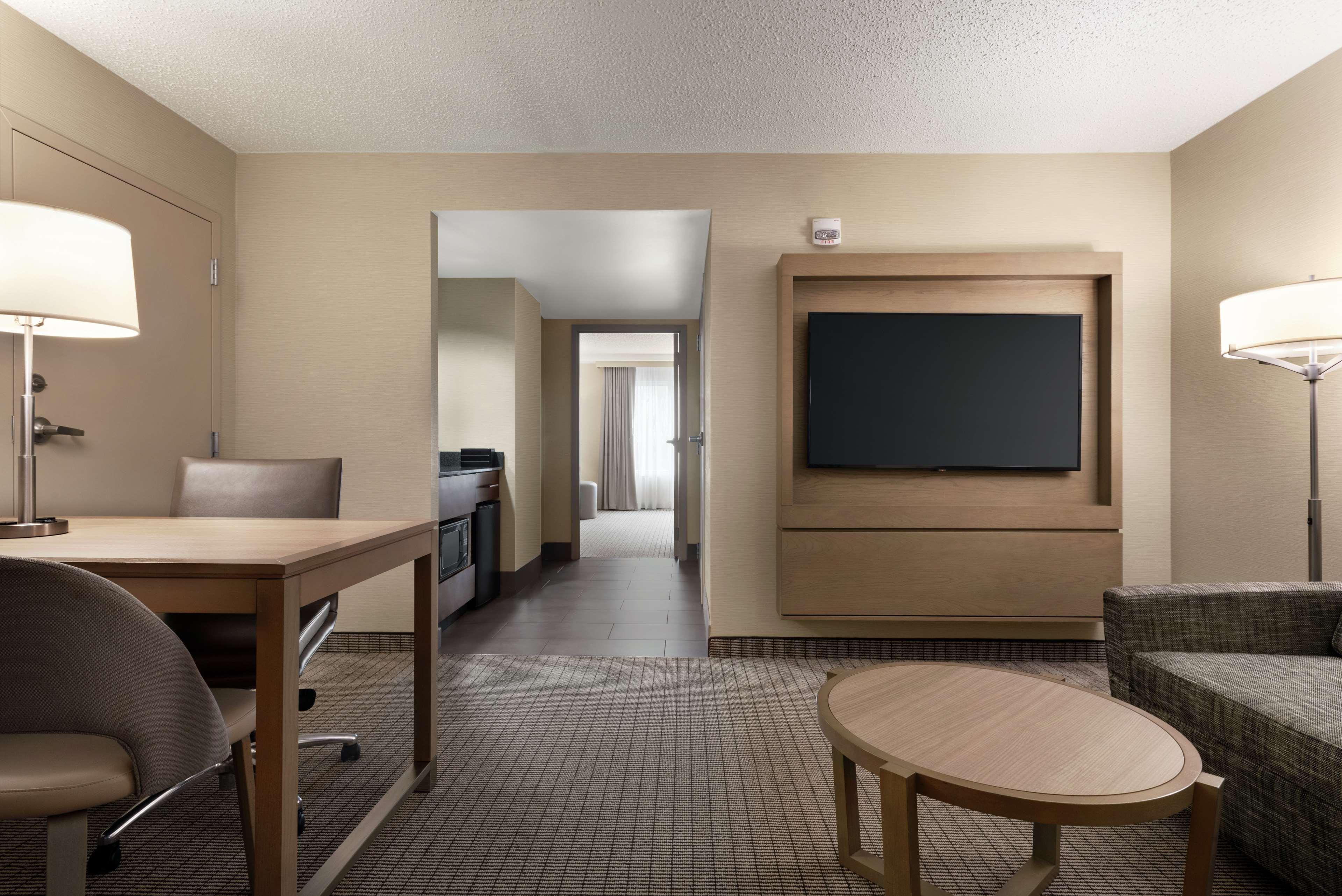 The following services and amenities are available, but with **reduced service**: Business Center, Complimentary Evening Social, Fitness Center, Breakfast.The following services and amenities are currently **not available**: Airport Shuttle, On-site Restaurant(s), Pool, Room Service.In addition to an impressive array of popular destinations in Cleveland, our Independence, Ohio Embassy Suites hotel is also a short drive to northeast Ohio's renowned tourist attractions such as: Amish Country, Aurora Farm Outlets, Blossom Music Center, Cuyahoga Valley National Park, Geauga Lake Amusement & Water Park, Lake Farm Parks, Northfield and Thistledown Racetracks, Pro Football Hall of Fame, and JACK Cincinnati Casino. After a long day of meetings or sightseeing during your Ohio travels, our southern Cleveland Embassy Suites hotel welcomes you with spacious, thoughtfully decorated accommodations and warm Midwestern hospitality. Get a great night's rest in your comfortable suite, featuring extra touches to make you feel at home. In the morning, start the day with a complimentary made-to-order breakfast in our atrium. In the evening, head to the reception for complimentary drinks and snacks, then sit down to a meal at the Embassy Grille, one of the top Cleveland restaurants. When searching for the best meeting hotels in Cleveland, Ohio, reserve your stay at the Embassy Suites Cleveland - Rockside hotel and discover ample accommodations and extensive on-site facilities, including more than 12,000 square feet of function space, complemented by exquisite service. Book your room online for our Lowest Internet Rate Guarantee. For superb savings, be sure to check our spectacular Cleveland hotel deals and vacation packages.
