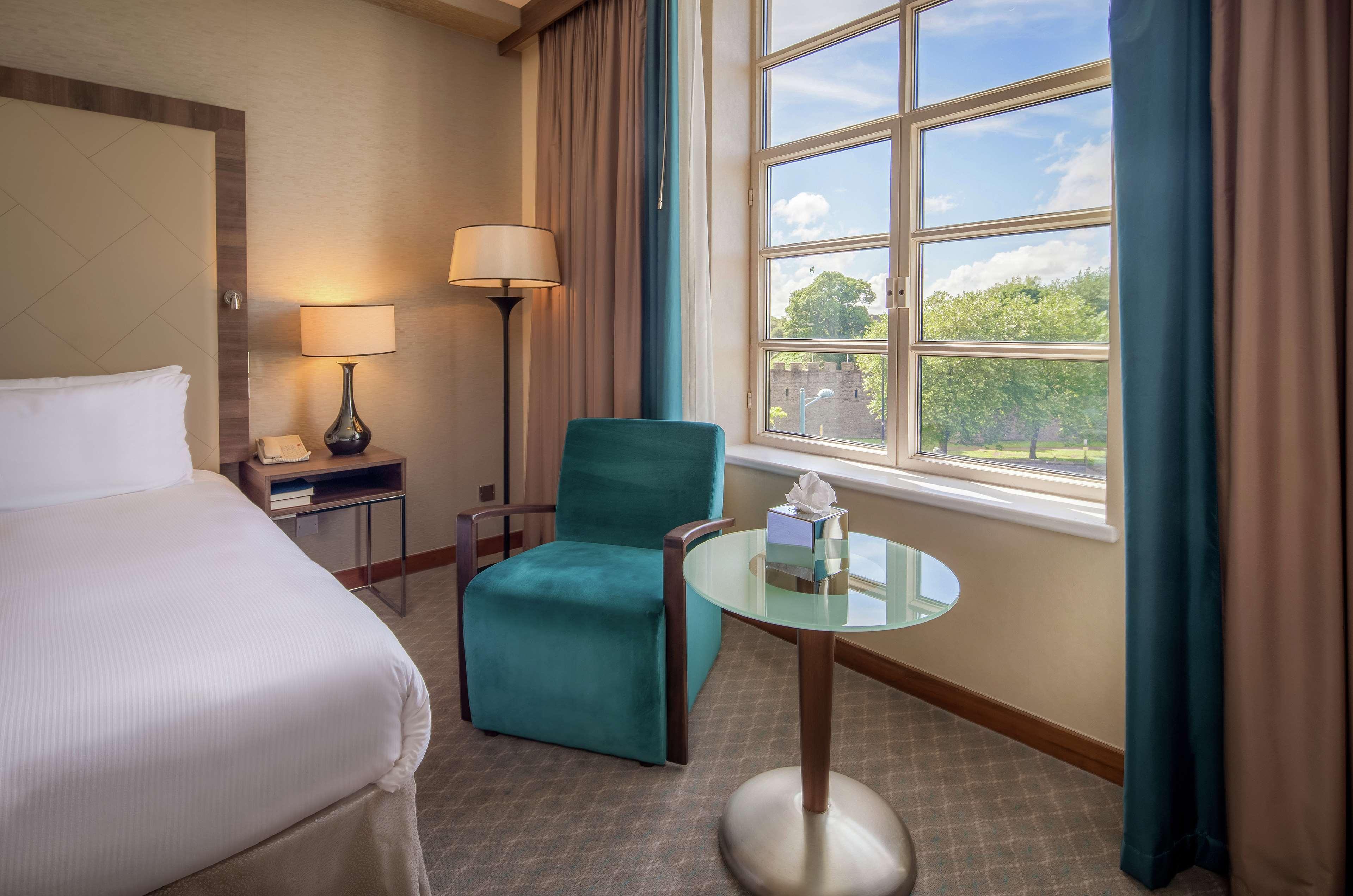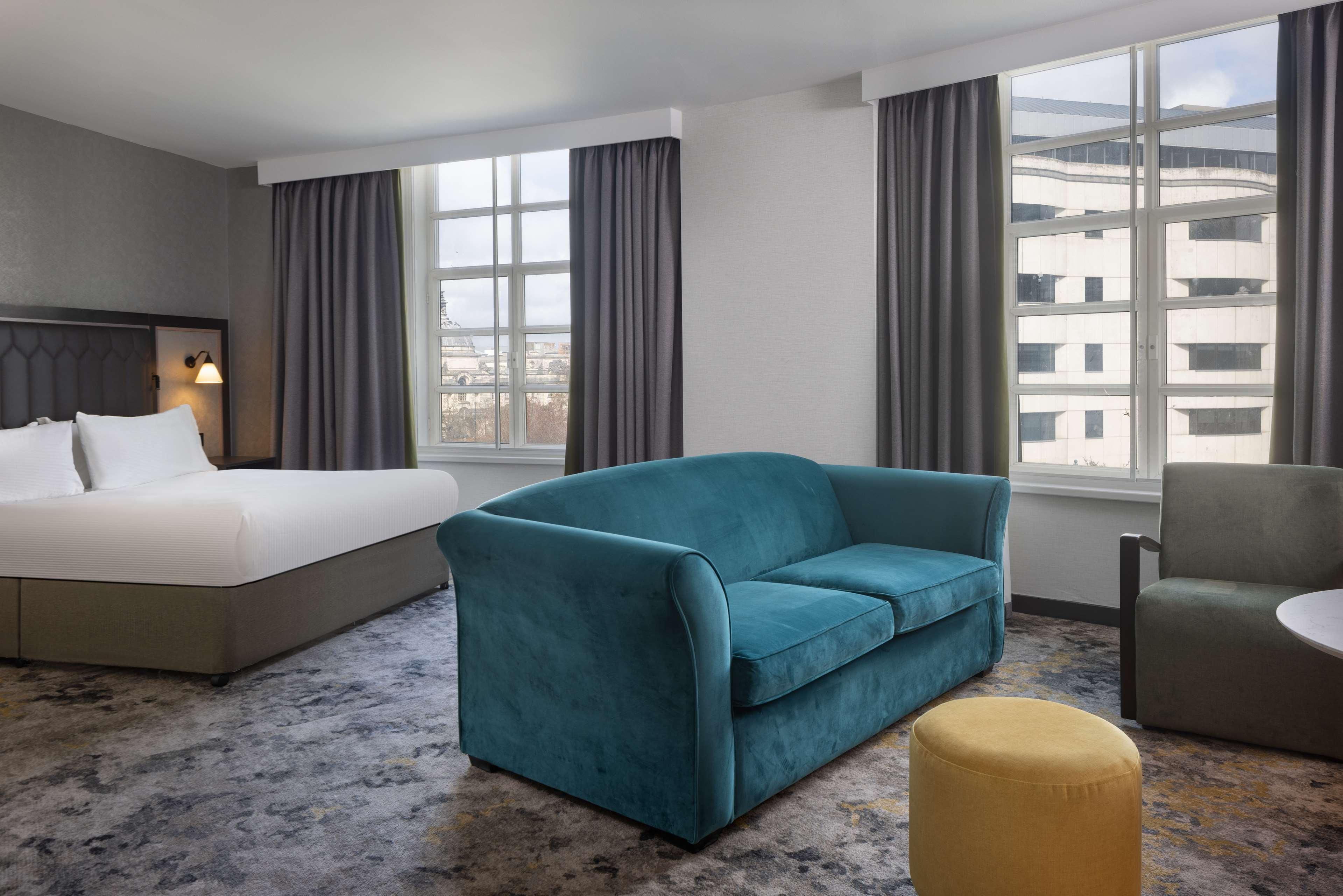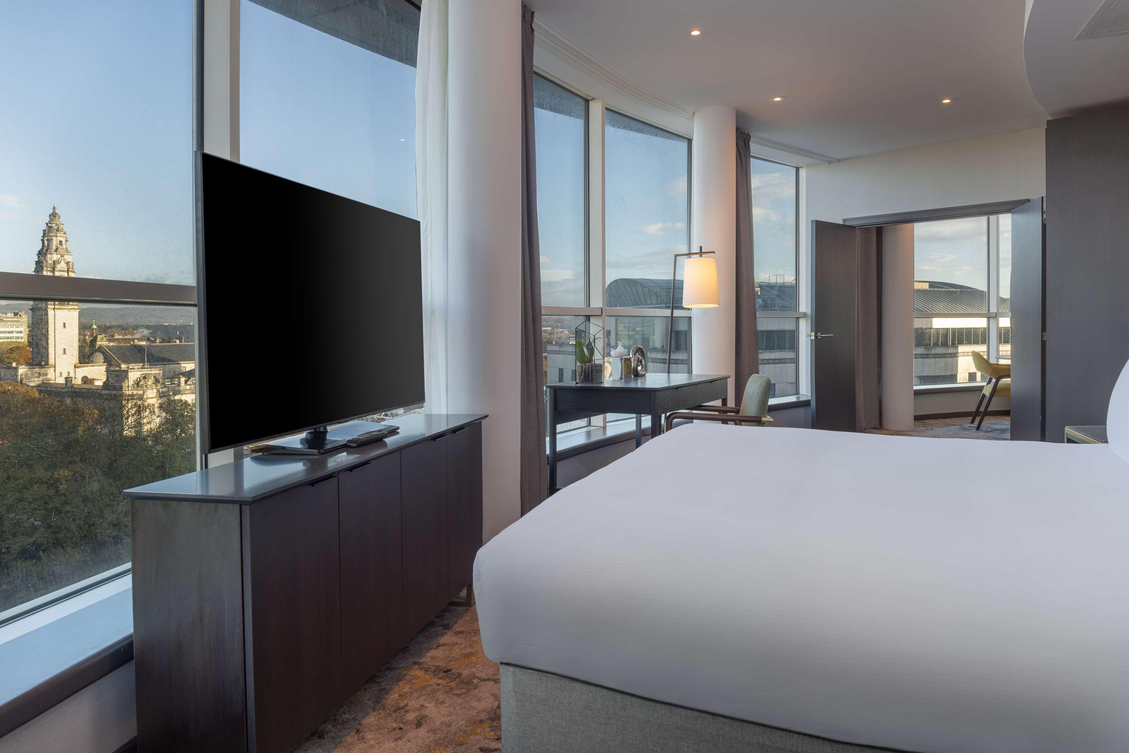 On school or national holidays, this hotel offers a bespoke Family Experience for travellers below the age of 12. Children enjoy a Kids Welcome and a dedicated Kids Breakfast experience. Enjoy your family meals by selecting dishes from the Kids Menu. The hotel has kids amenities available on requestHilton Cardiff is located in the heart of the city, directly opposite Cardiff Castle. We’re minutes from St David's shopping centre, a 10 minute walk from the Principality Stadium and a short drive away from Cardiff Bay. Step inside the hotel and you’ll find beautifully styled guest rooms, fantastic dining options and a host of amenities for work, rest and recreation — everything you need for a fantastic stay in the Welsh capital.
