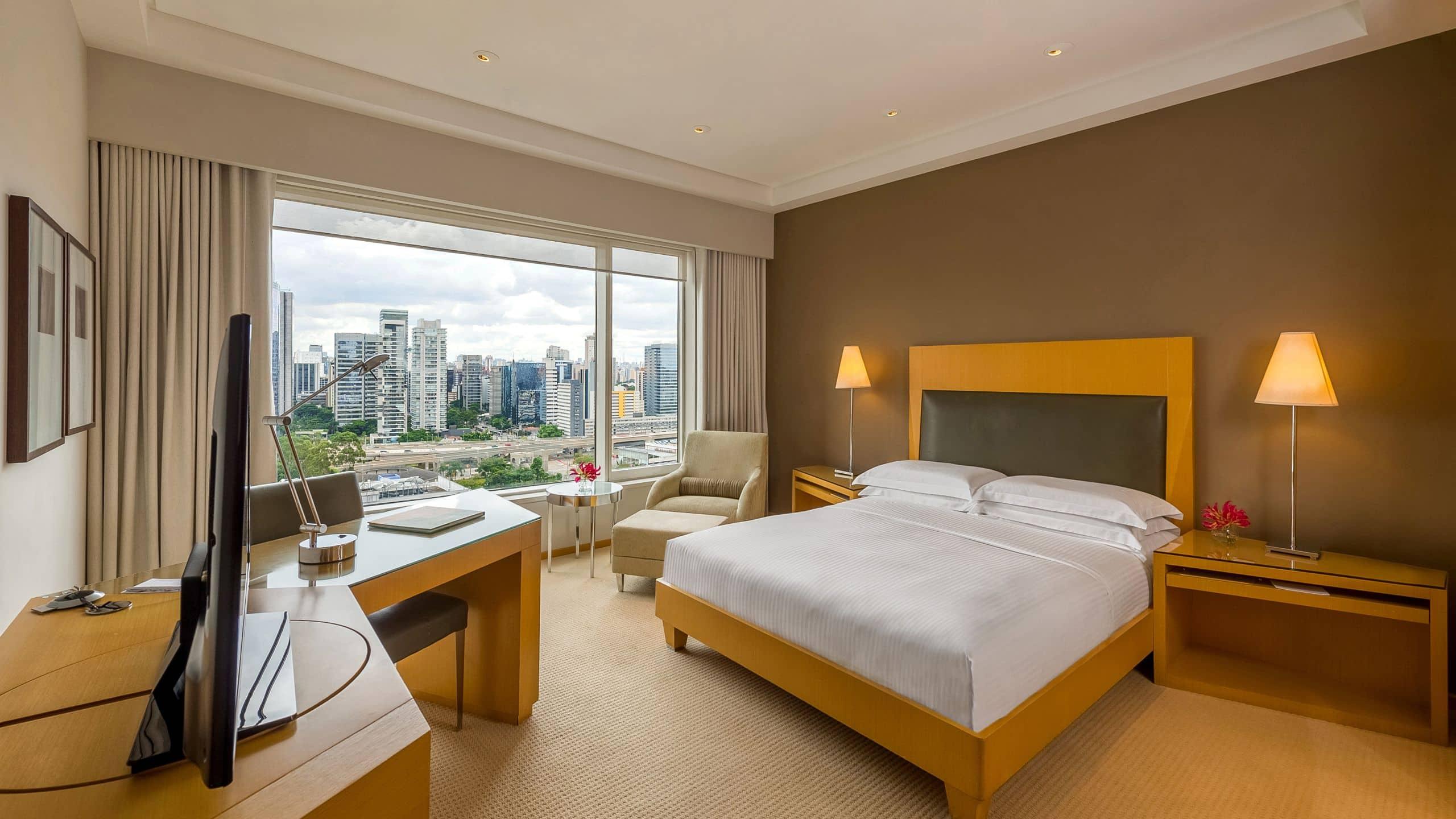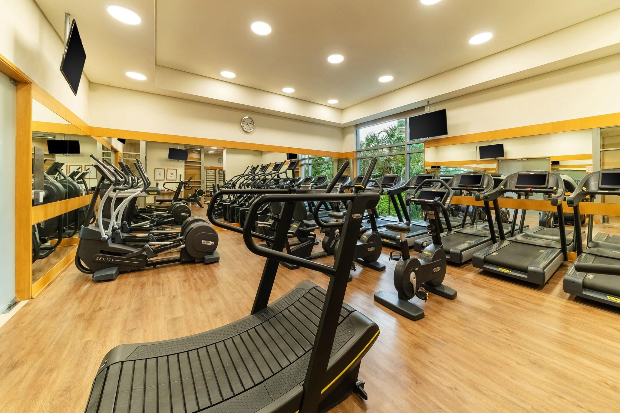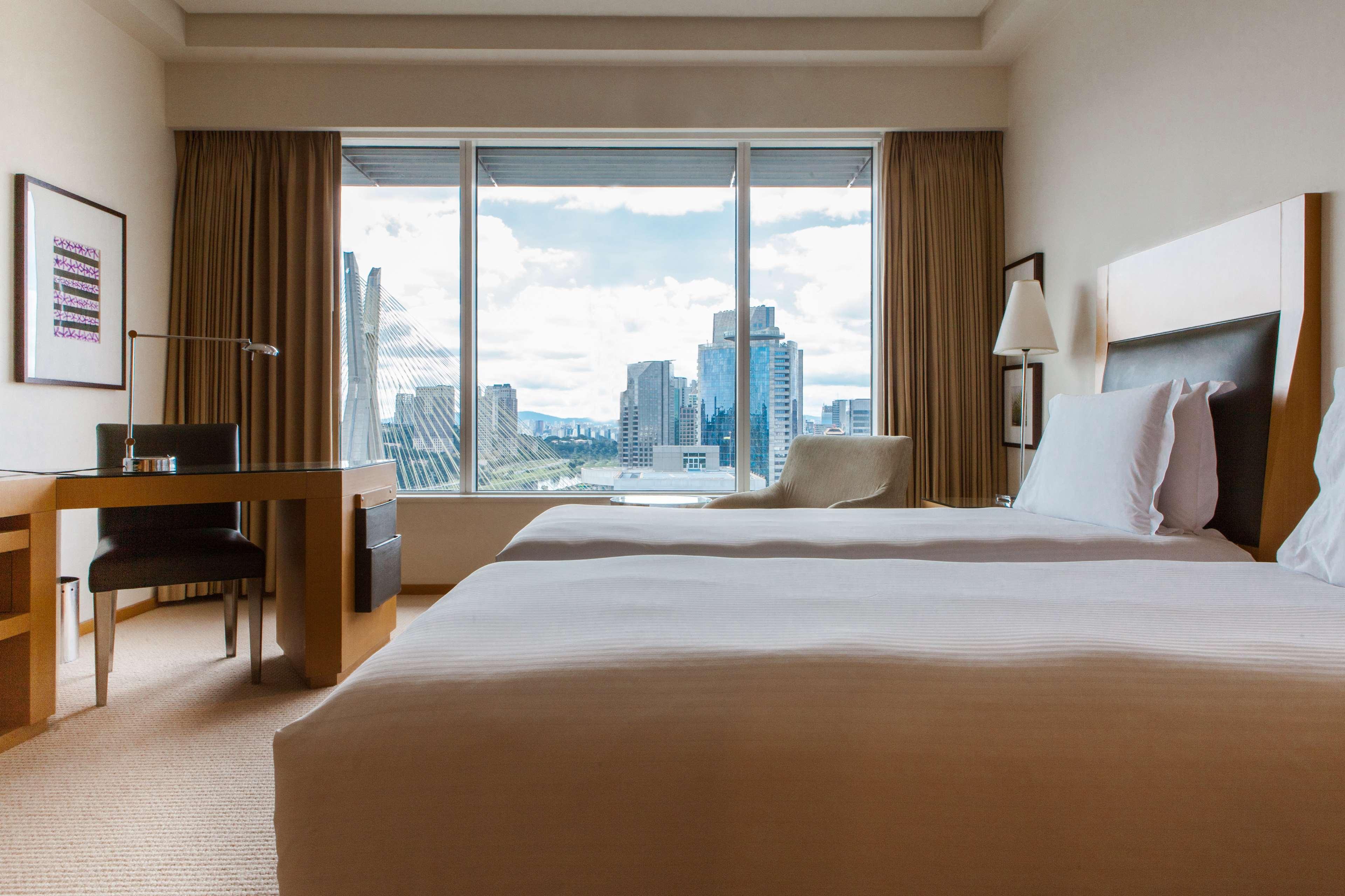 The Grand Hyatt Sao Paulo offers a luxurious stay in the Itaim Bibi district, just a short drive from Shopping Eldorado and Ibirapuera Park. Indulge in the on-site spa with massages, body treatments, and facials, or enjoy the health club, outdoor and indoor pools. This Art Deco hotel provides complimentary Wi-Fi, concierge and wedding services, and an area shuttle (surcharge). Each of the 467 guestrooms features a minibar, LED TV, and private bathroom with designer toiletries. Savor a meal at the restaurant, order room service, or unwind with a drink at the bar/lounge or poolside bar. Cooked-to-order breakfasts are available for a fee. The hotel also boasts extensive meeting and event space, as well as limo service and a 24-hour airport shuttle (surcharge).