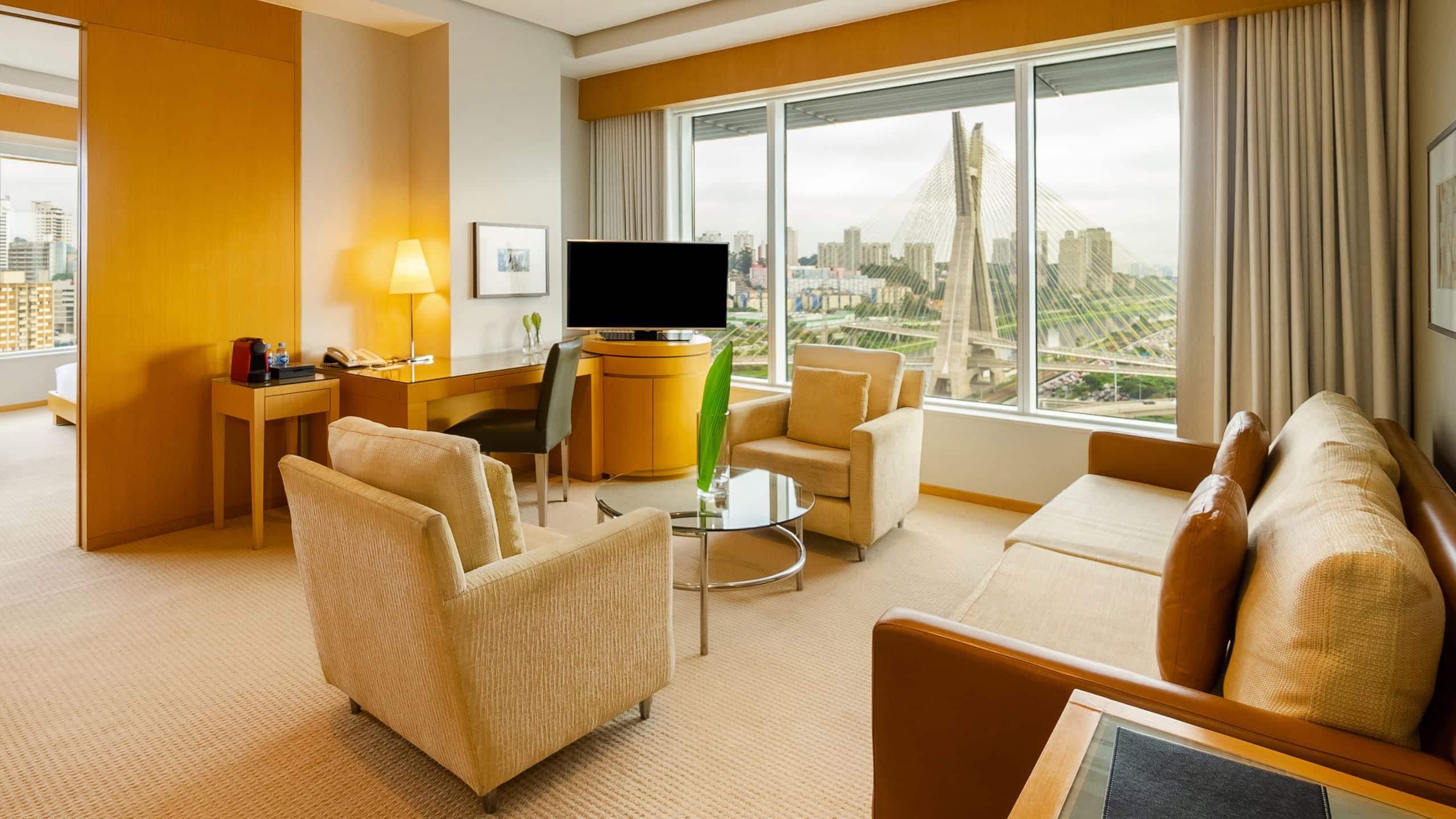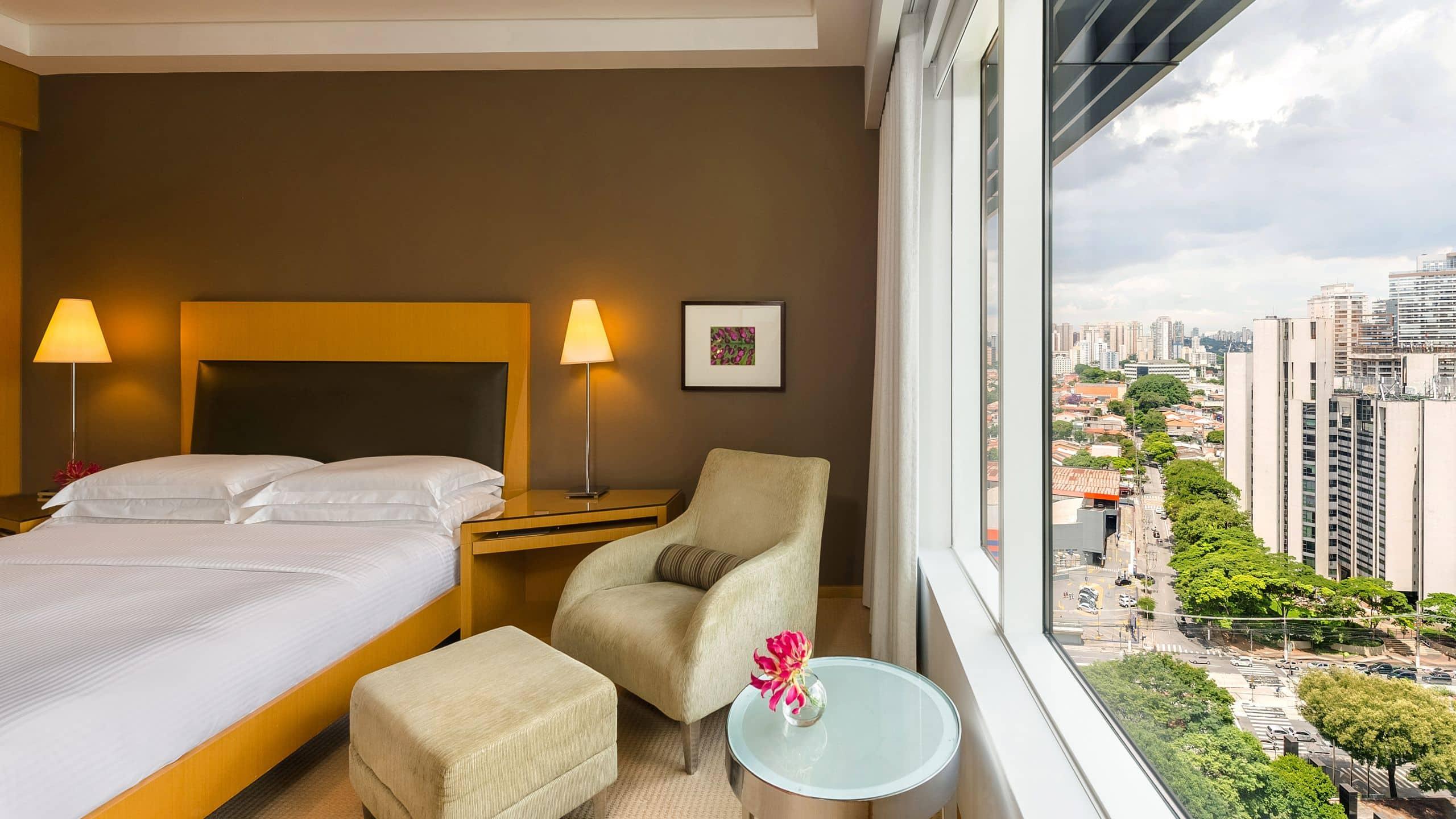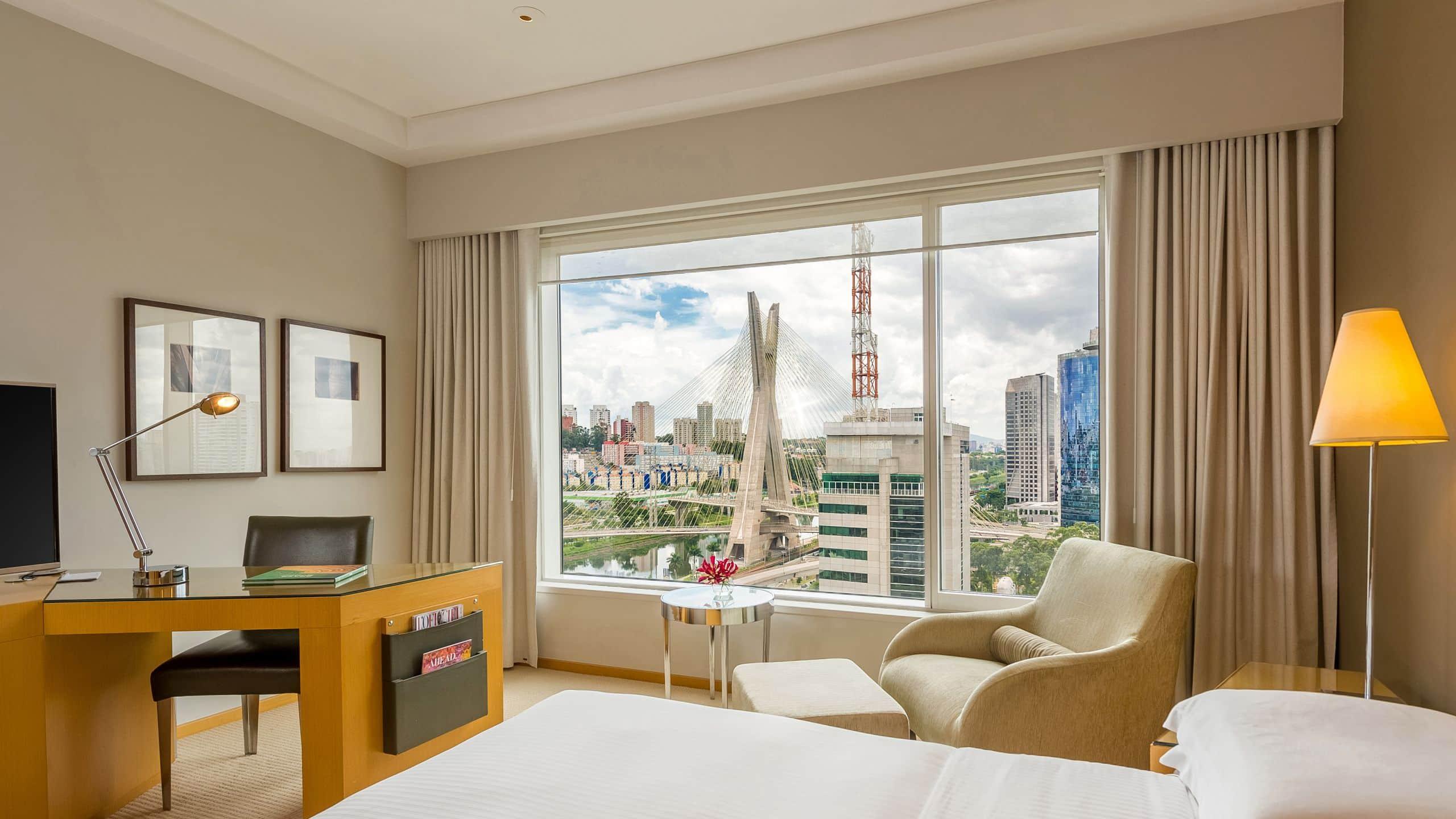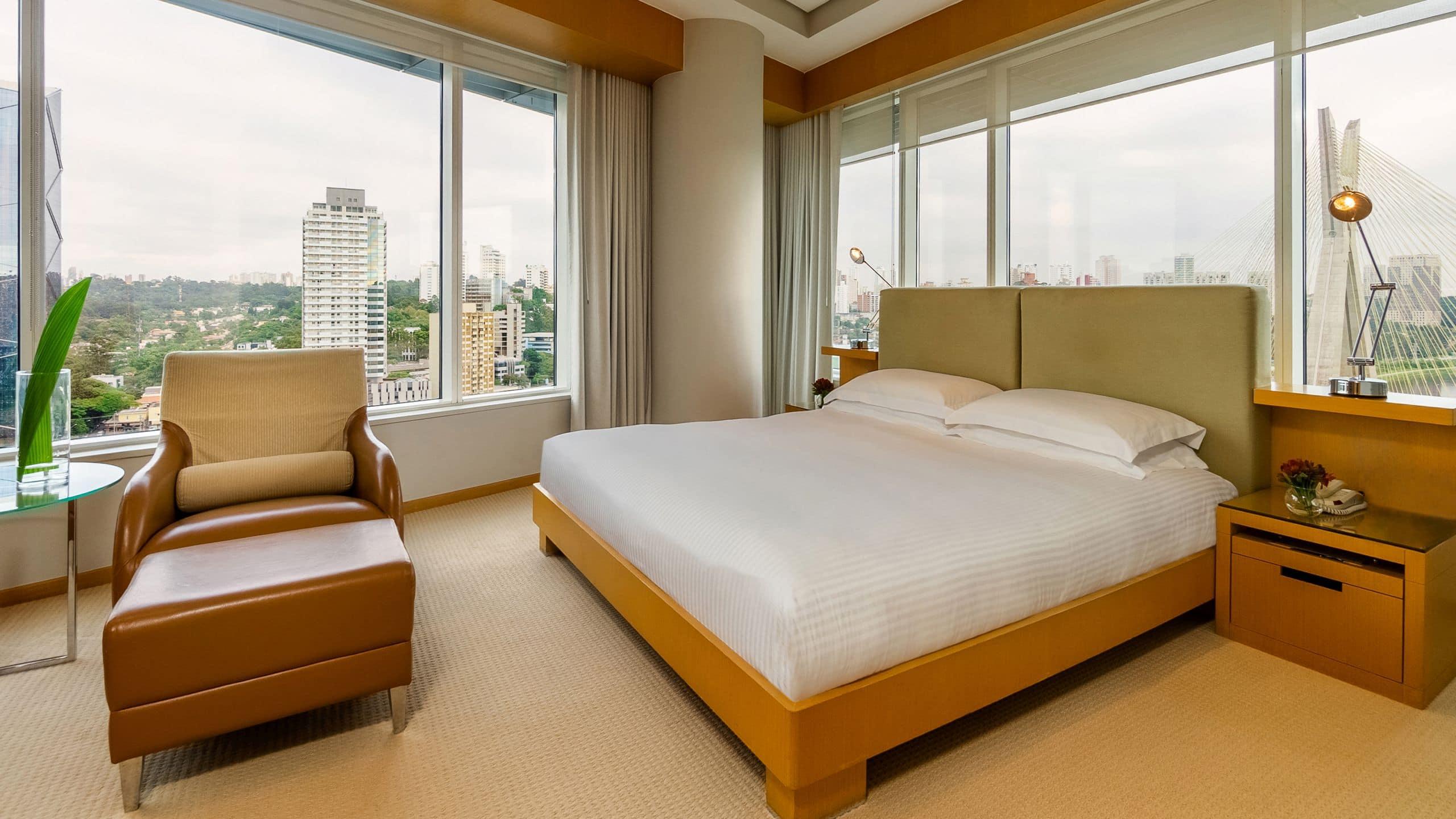 The Grand Hyatt Sao Paulo offers a luxurious stay in the Itaim Bibi district, just a short drive from Shopping Eldorado and Ibirapuera Park. Indulge in the on-site spa with massages, body treatments, and facials, or enjoy the health club, outdoor and indoor pools. This Art Deco hotel provides complimentary Wi-Fi, concierge and wedding services, and an area shuttle (surcharge). Each of the 467 guestrooms features a minibar, LED TV, and private bathroom with designer toiletries. Savor a meal at the restaurant, order room service, or unwind with a drink at the bar/lounge or poolside bar. Cooked-to-order breakfasts are available for a fee. The hotel also boasts extensive meeting and event space, as well as limo service and a 24-hour airport shuttle (surcharge).