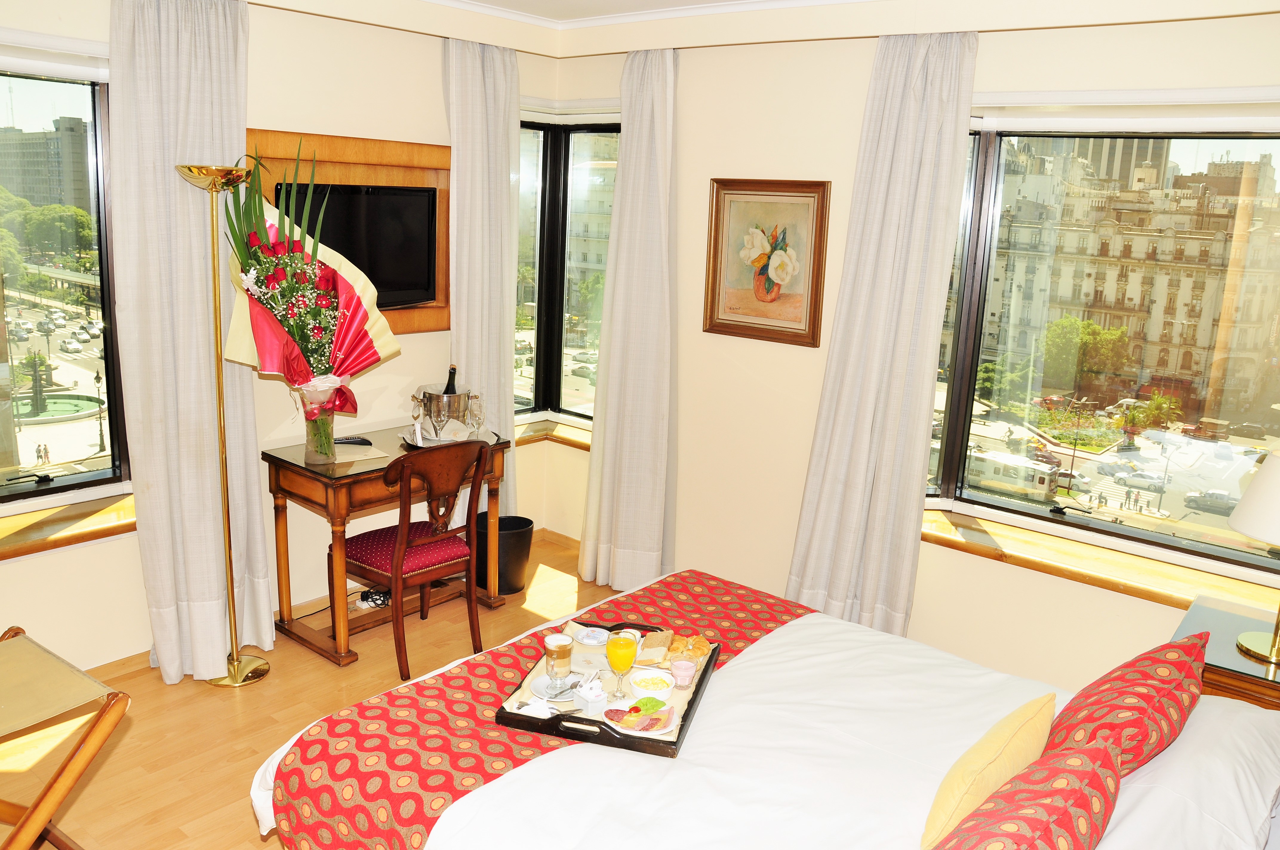 The hotel is located in the city centre, on 9 de Julio Av., only a few metres away from the Obelisco and Avenida de Mayo. Of easy access to Barrio de San Telmo and Puerto Madero ideal places for a stroll.Metro, Bus and Train stations just a short walk from our doors.. We are right in the center of the city's cultural, gastronomic, recreational, sports and shopping circuits. We have single, double, triple, quadruple and communicating rooms. The hotel is being remodeled, all rooms have a safe, large windows with double glazing, air conditioning and heating (centralized) and all have wooden floors. We offer room service. Check In Timetable 14hs and check out 10am. We have space for luggage storage. Please notice reservations of 5 or more rooms will be considered group and may apply different conditions.