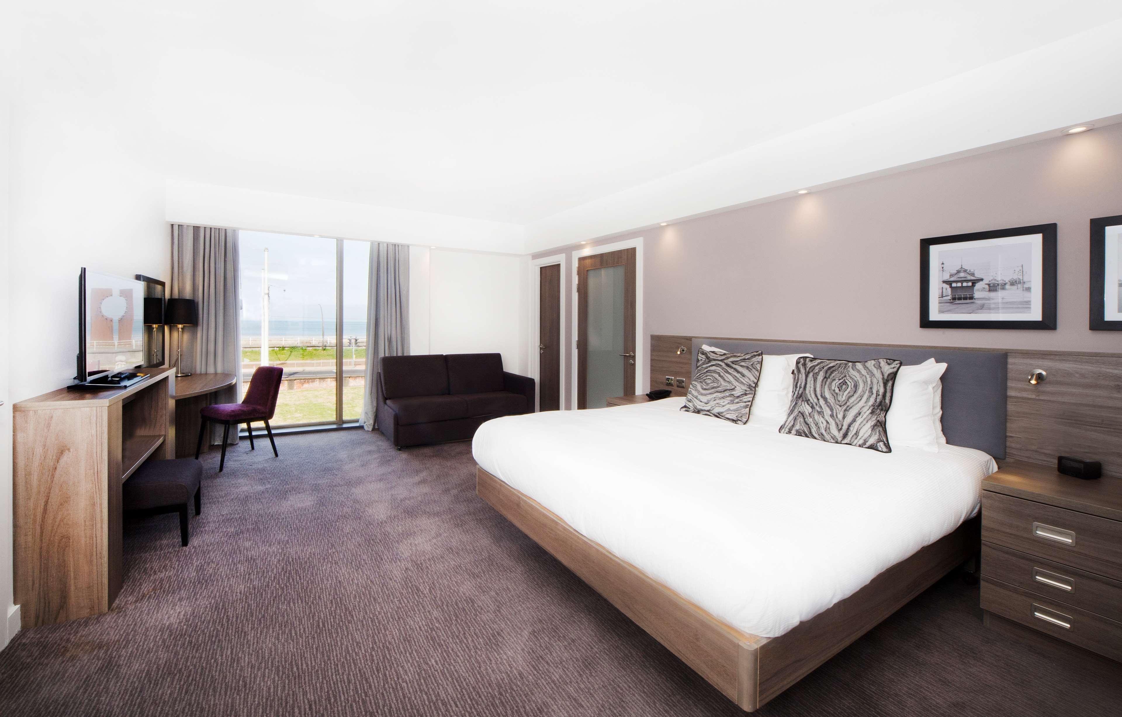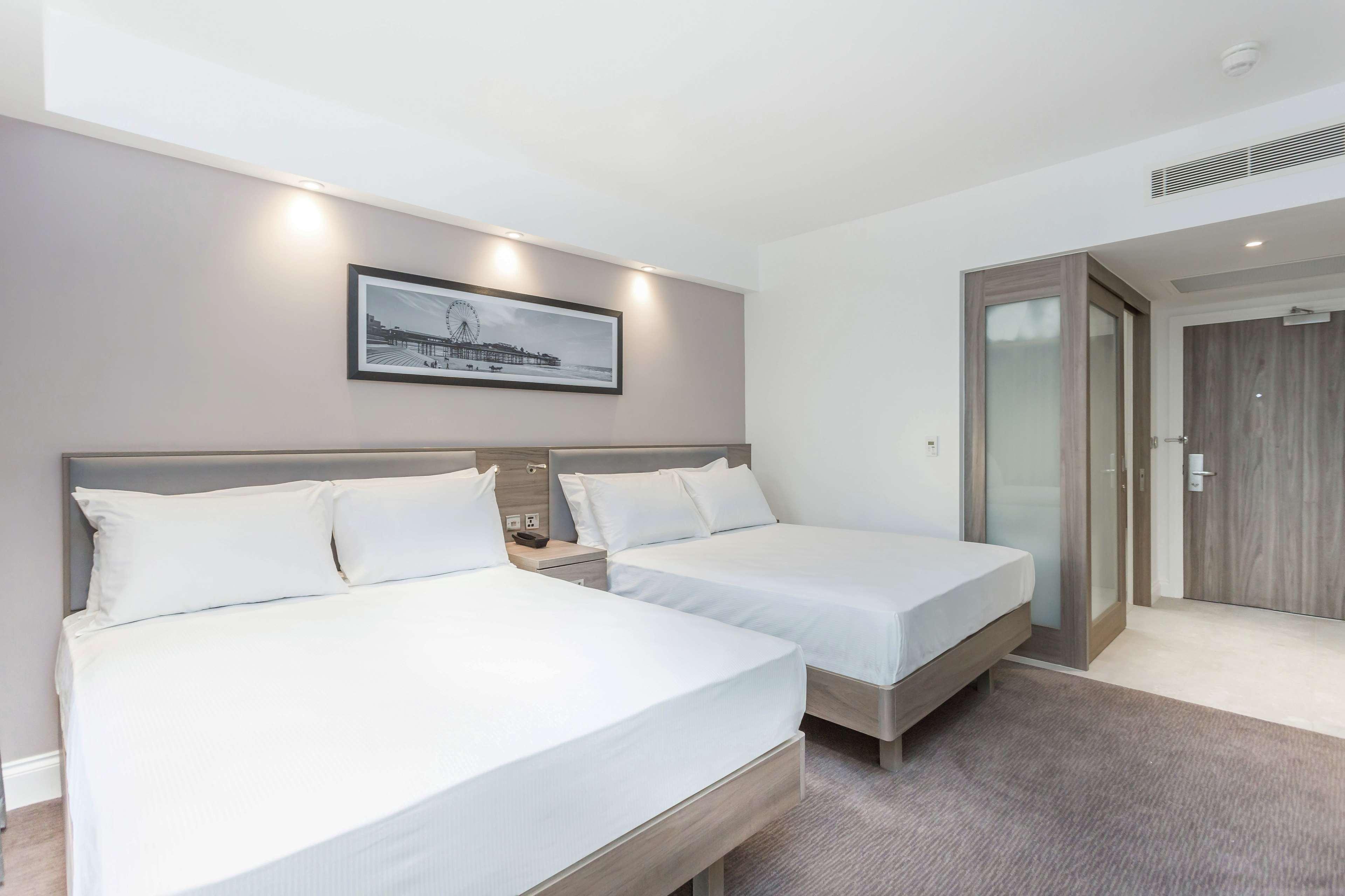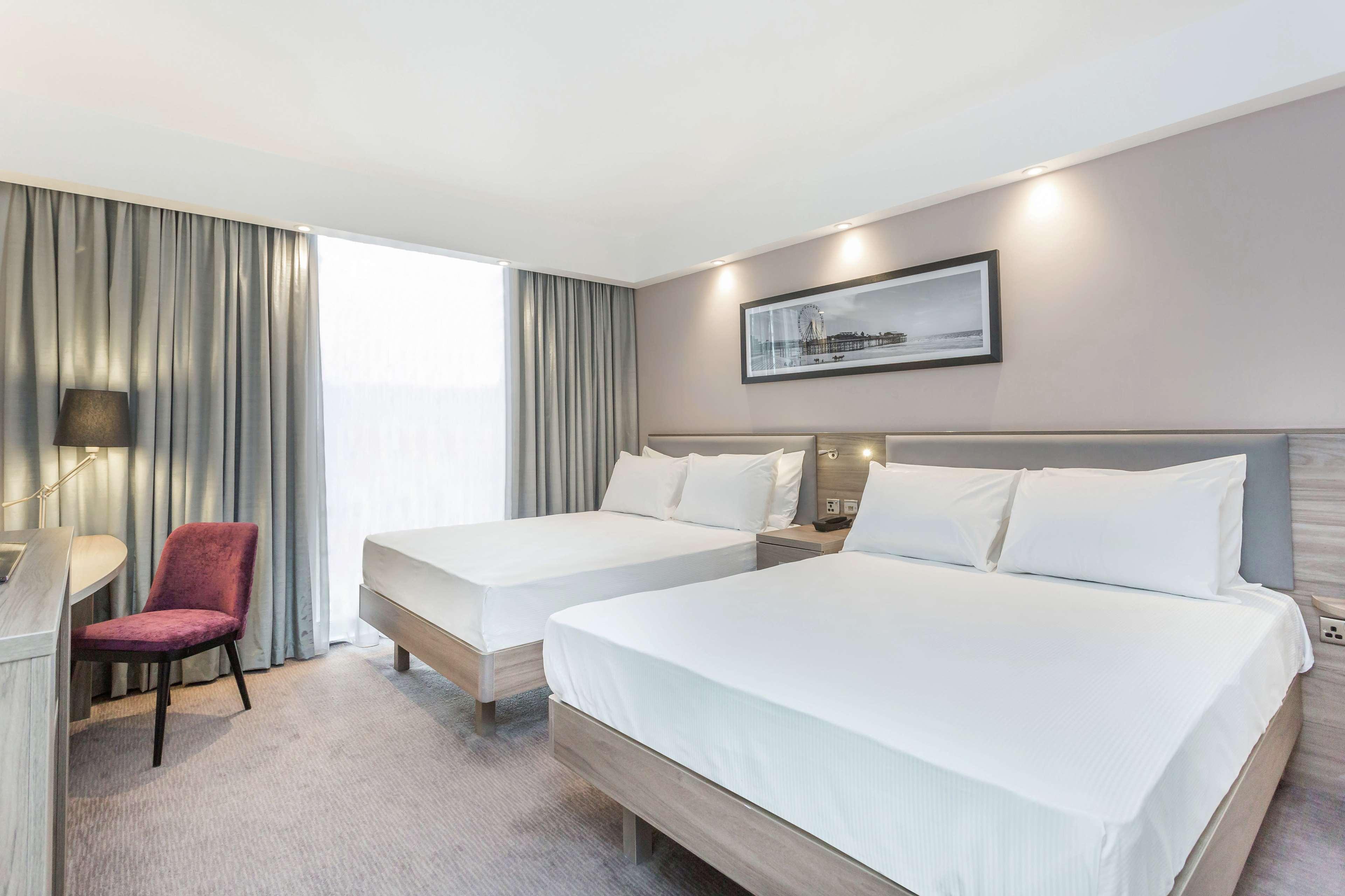 Settle in for a relaxing stay at our Hampton by Hilton Blackpool hotel. Located on the new South Promenade, we offer a prime seafront location with stunning views of the Irish Sea. Our Blackpool hotel is also within walking distance of the city’s most popular attractions such as Blackpool Pleasure Beach, Sandcastles Water Park, Blackpool Zoo and Blackpool Tower. A hot breakfast is included in your stay to help you start your day right. Our bar and lounge is open 24 hours and offers a selection of food and beverages including Starbucks. At the end of a busy day your comfortable guest room awaits. Catch up on your favorite shows on the 40-inch HDTV or stay connected to work and family with free WiFi. Unwind in the spacious bathroom before slipping into the comfy bed for a great night’s sleep.