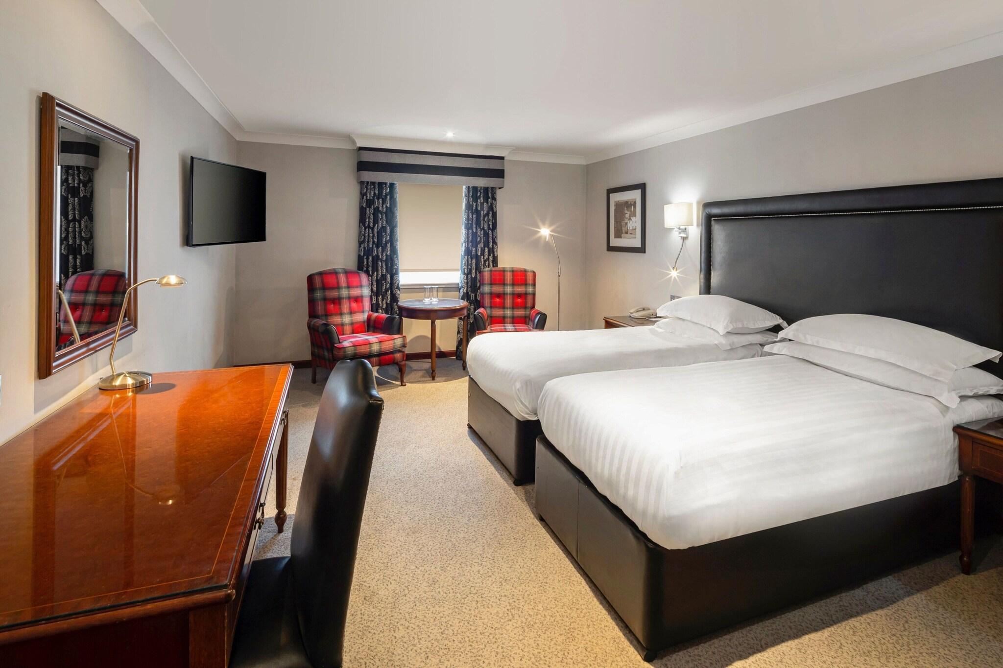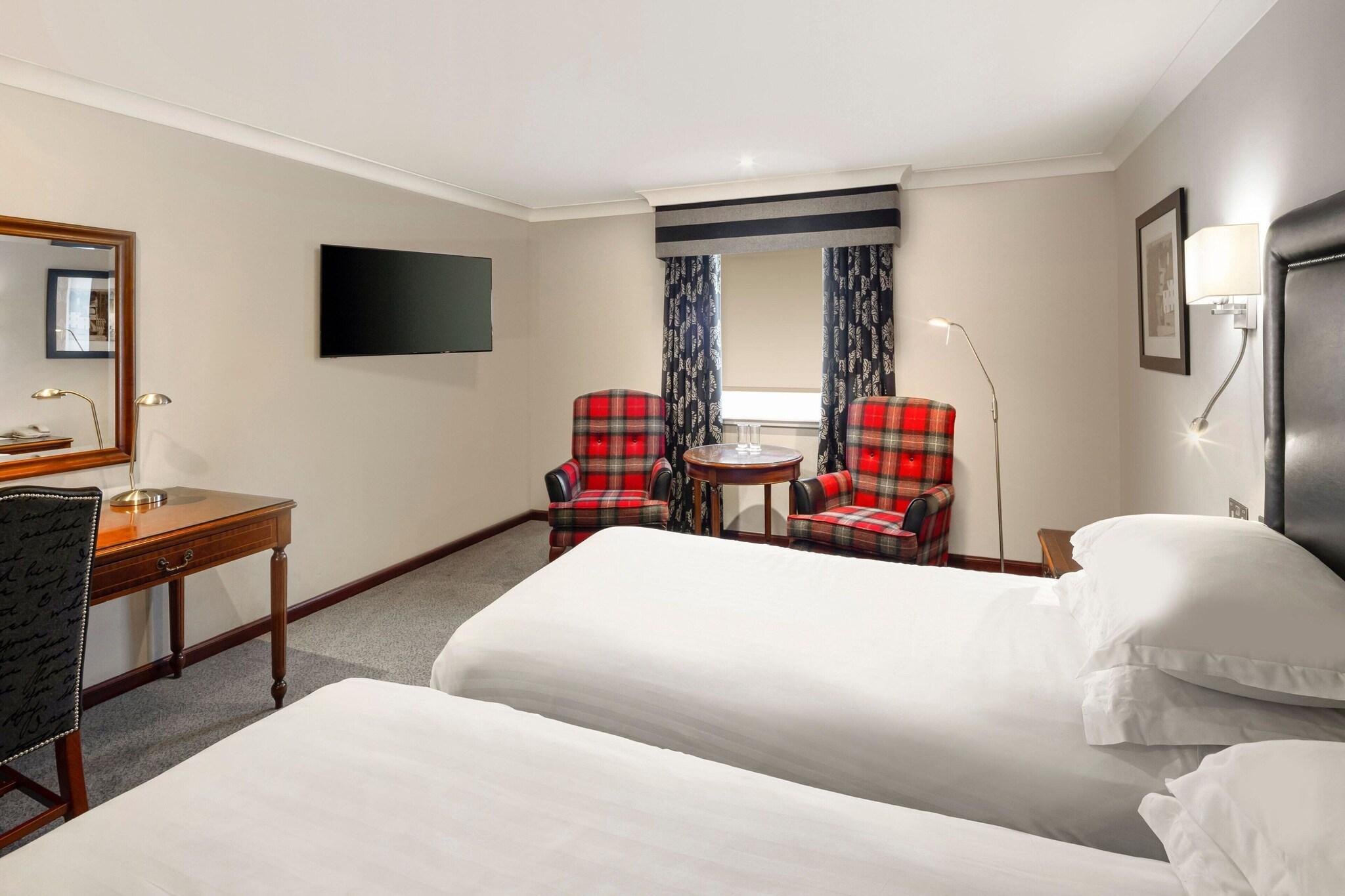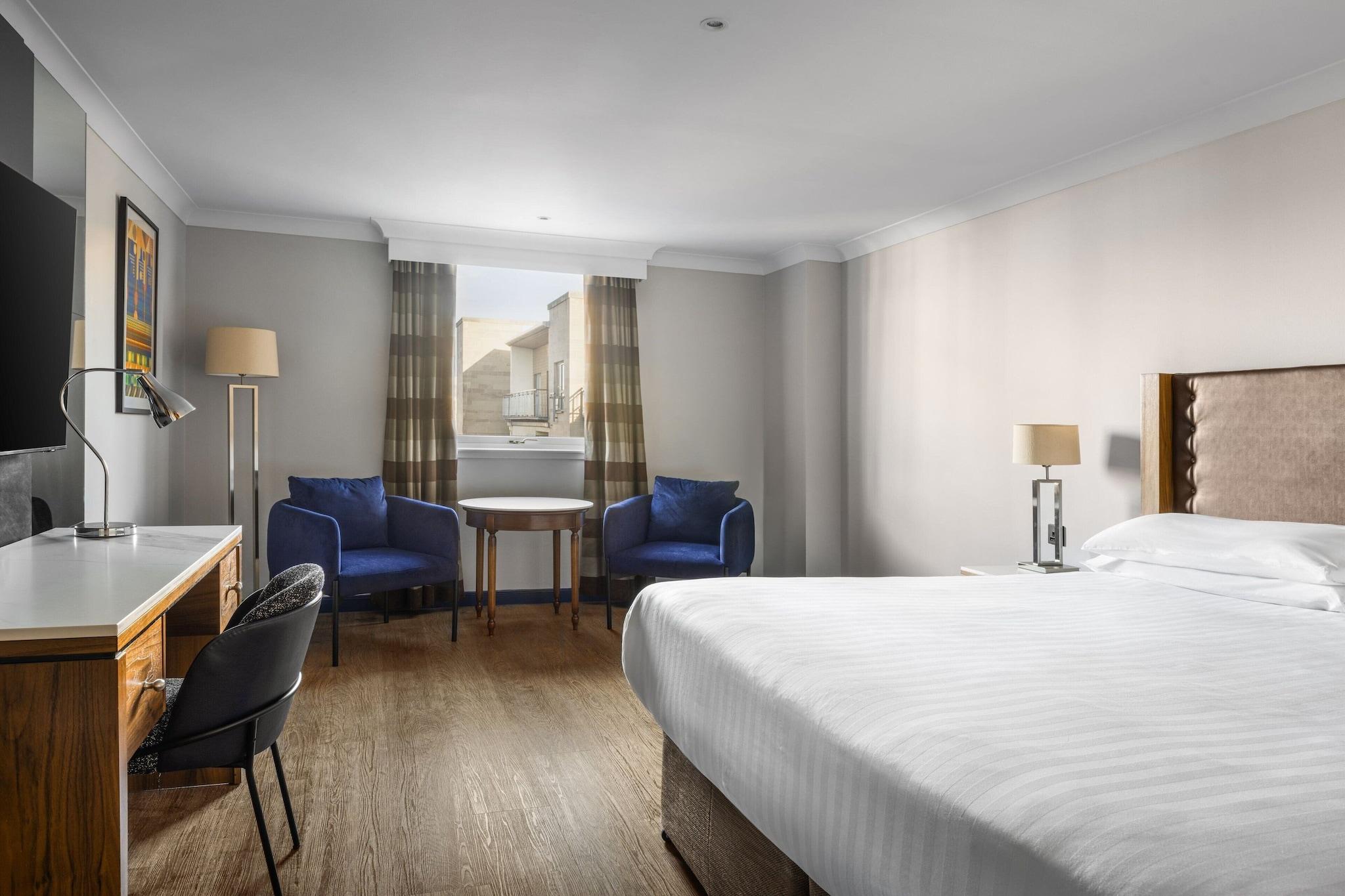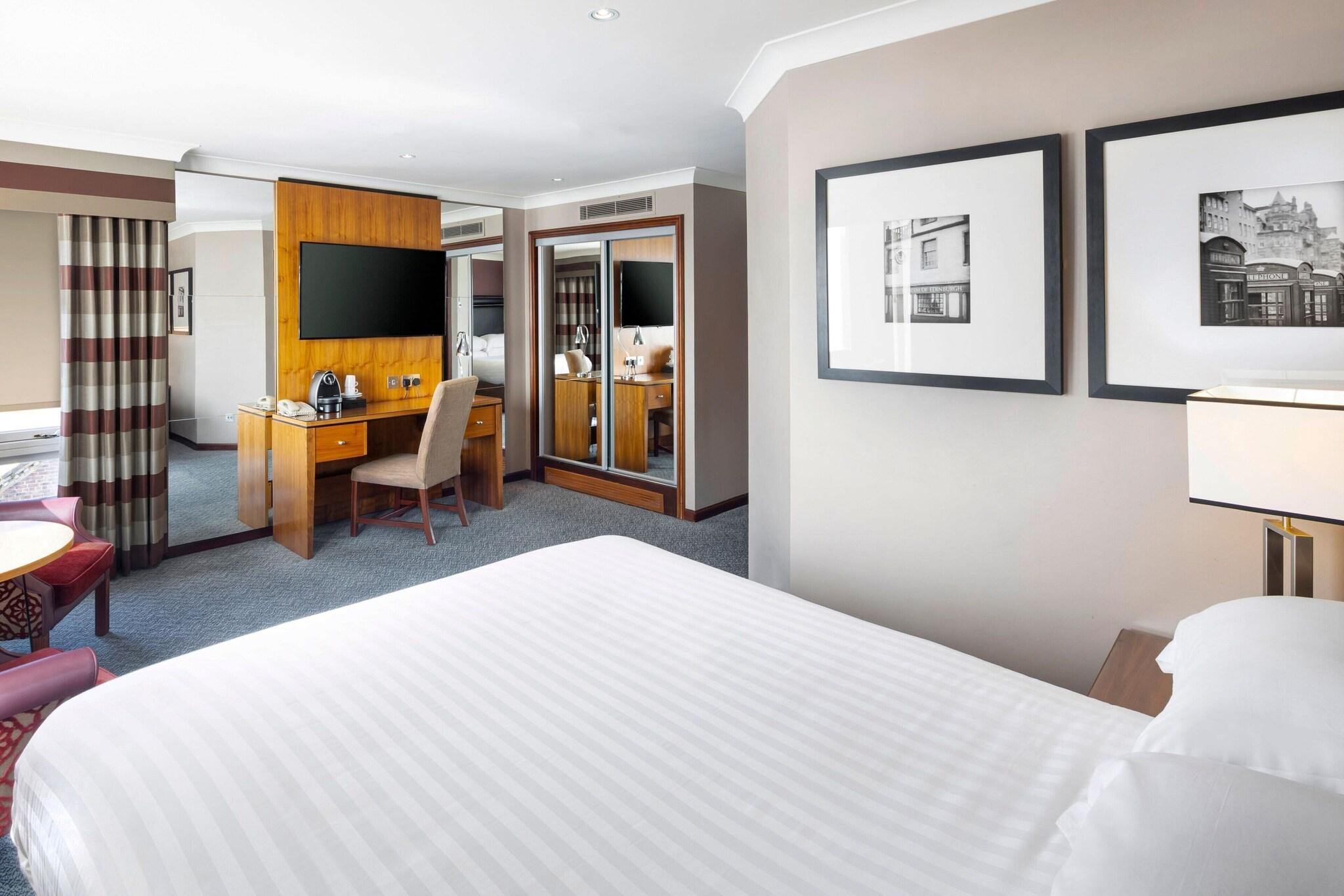 'Indulge in a spa treatment at our Edinburgh hotel, featuring massages, body treatments, and facials. Maintain your routine at our health club, indoor pool, and sauna. Enjoy complimentary Wi-Fi, concierge services, and event planning in our conference and meeting spaces. Savor local cuisine at Surf & Turf or 24-hour room service. Unwind at our bar/lounge. The 157 air-conditioned guestrooms offer cable TV, private bathrooms with complimentary toiletries, and conveniences such as safes and coffee/tea makers. Nearby attractions include Dynamic Earth, the Museum of Edinburgh, and the Scottish Parliament. '