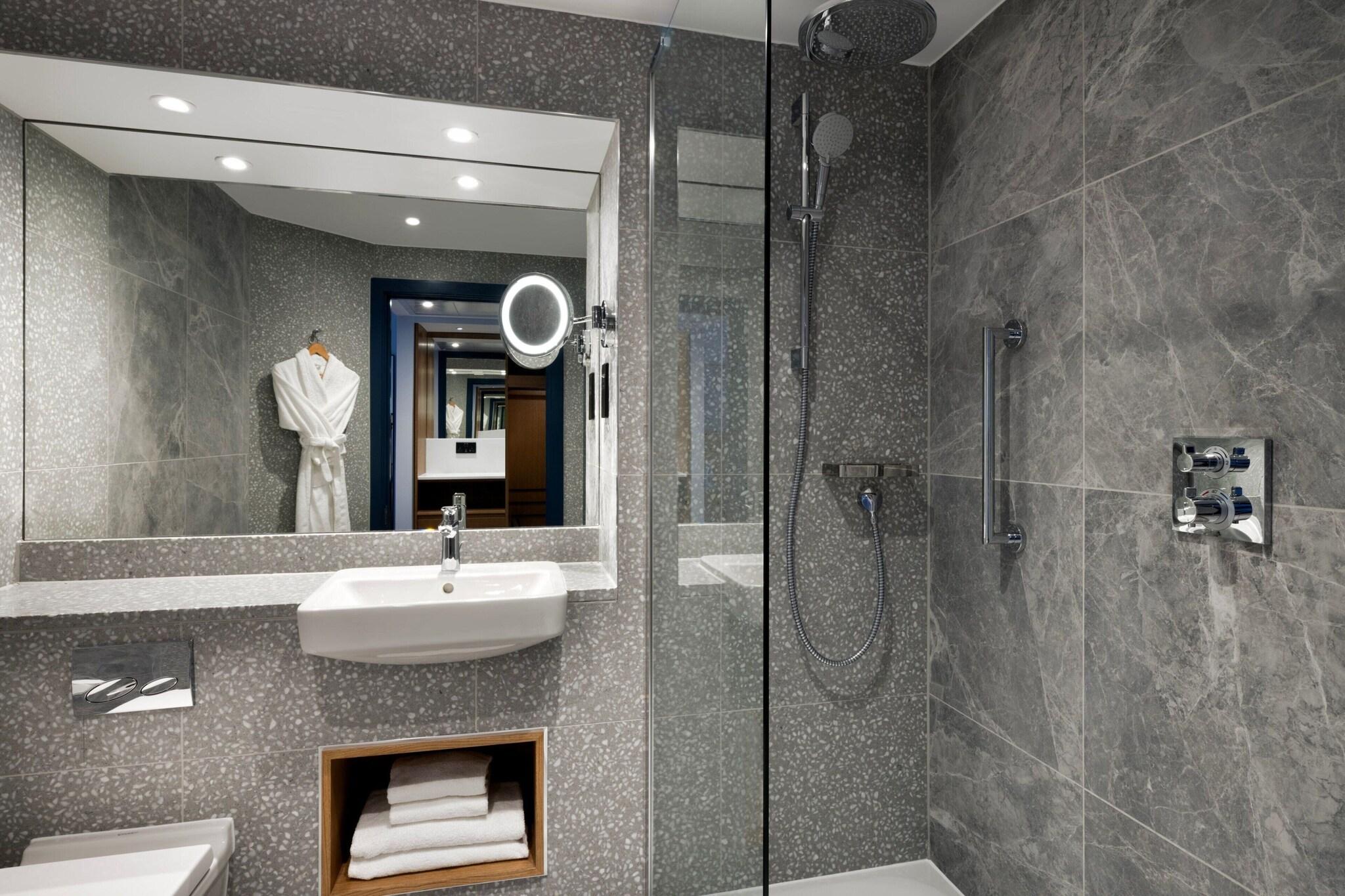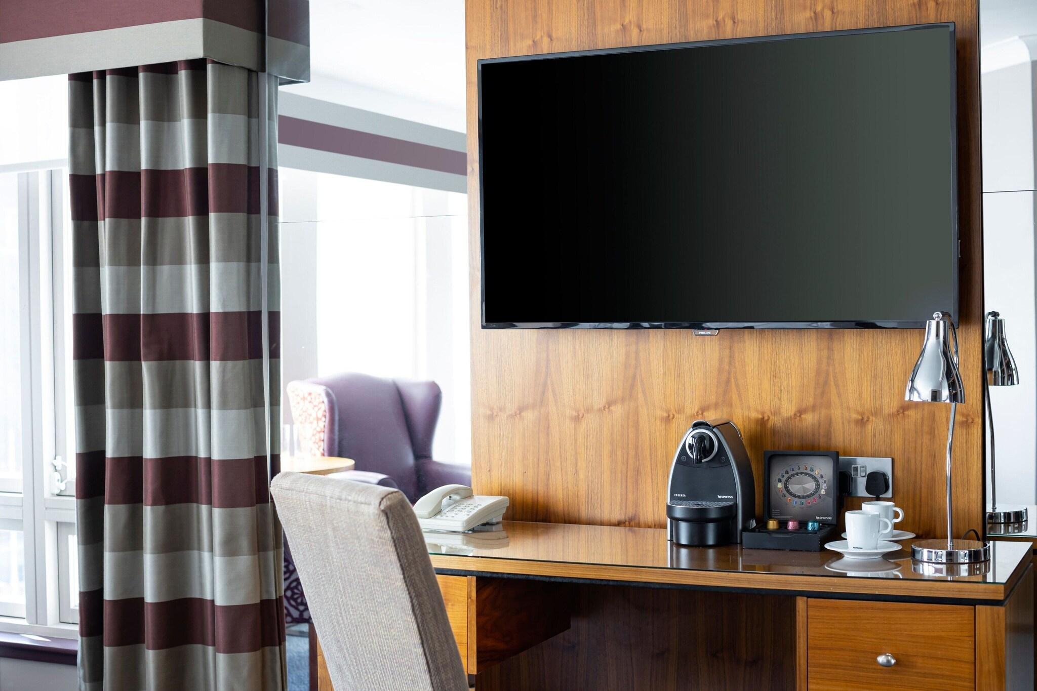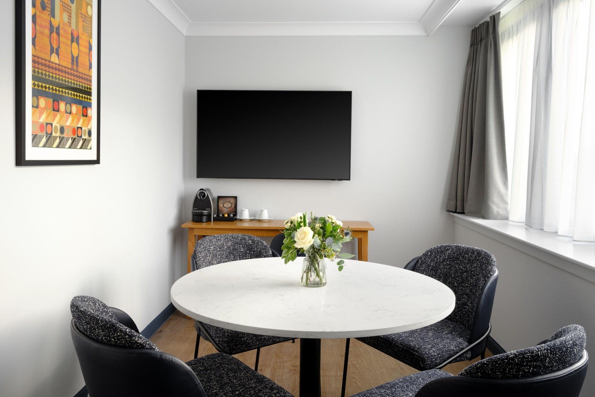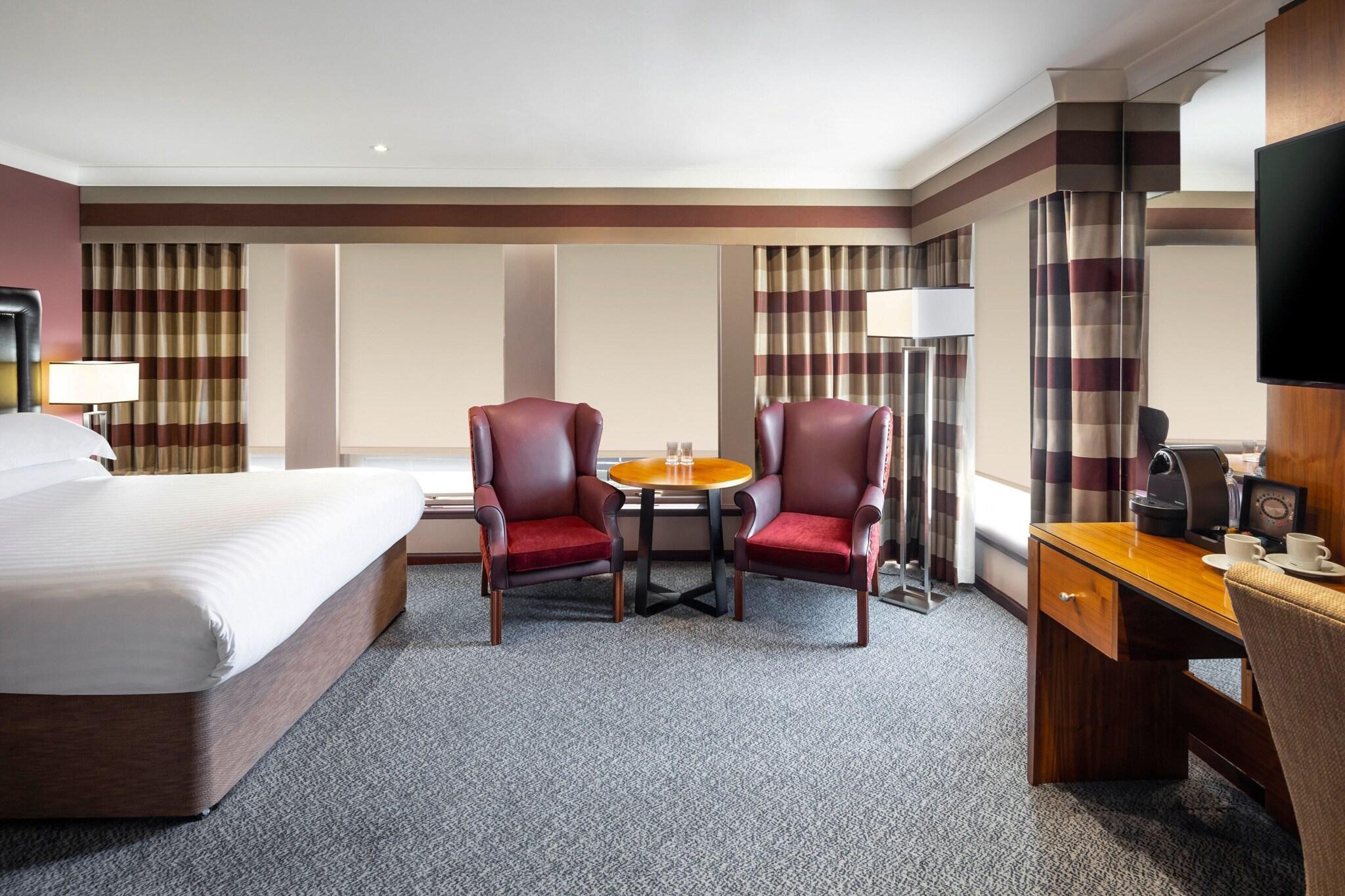 'Indulge in a spa treatment at our Edinburgh hotel, featuring massages, body treatments, and facials. Maintain your routine at our health club, indoor pool, and sauna. Enjoy complimentary Wi-Fi, concierge services, and event planning in our conference and meeting spaces. Savor local cuisine at Surf & Turf or 24-hour room service. Unwind at our bar/lounge. The 157 air-conditioned guestrooms offer cable TV, private bathrooms with complimentary toiletries, and conveniences such as safes and coffee/tea makers. Nearby attractions include Dynamic Earth, the Museum of Edinburgh, and the Scottish Parliament. '